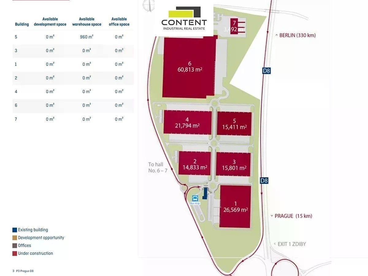 Pronájem skladu, výrobních prostor Zdiby, Praha - východ. V zastoupení majitele a bez provize nabízíme skladové nebo výrobní prostory, umístěné v moderním logistickém parku ve Zdibech, přímo u dálnice D8. - k dispozici ihned 960 m² - skladové nebo výrobní prostory - kanceláře dohodou - přímo u sjezdu č. 1 z D8 - nákladní vstupy z hydraulické rampy - bezprašná vysoko-zátěžová podlaha 5t/m² - denní světlo, světlá výška 10 m - sprinklery (ESFR), fotovoltaika na střeše - příjezd a parkování TIR bezproblémové - dostatečné manipulační a parkovací plochy - stravování, lékař v areálu, MHD u areálu na metro Cena k jednání, dle dalších podmínek smlouvy + služby. Pro více informací nás kontaktujte. Fotografie jsou ilustrační