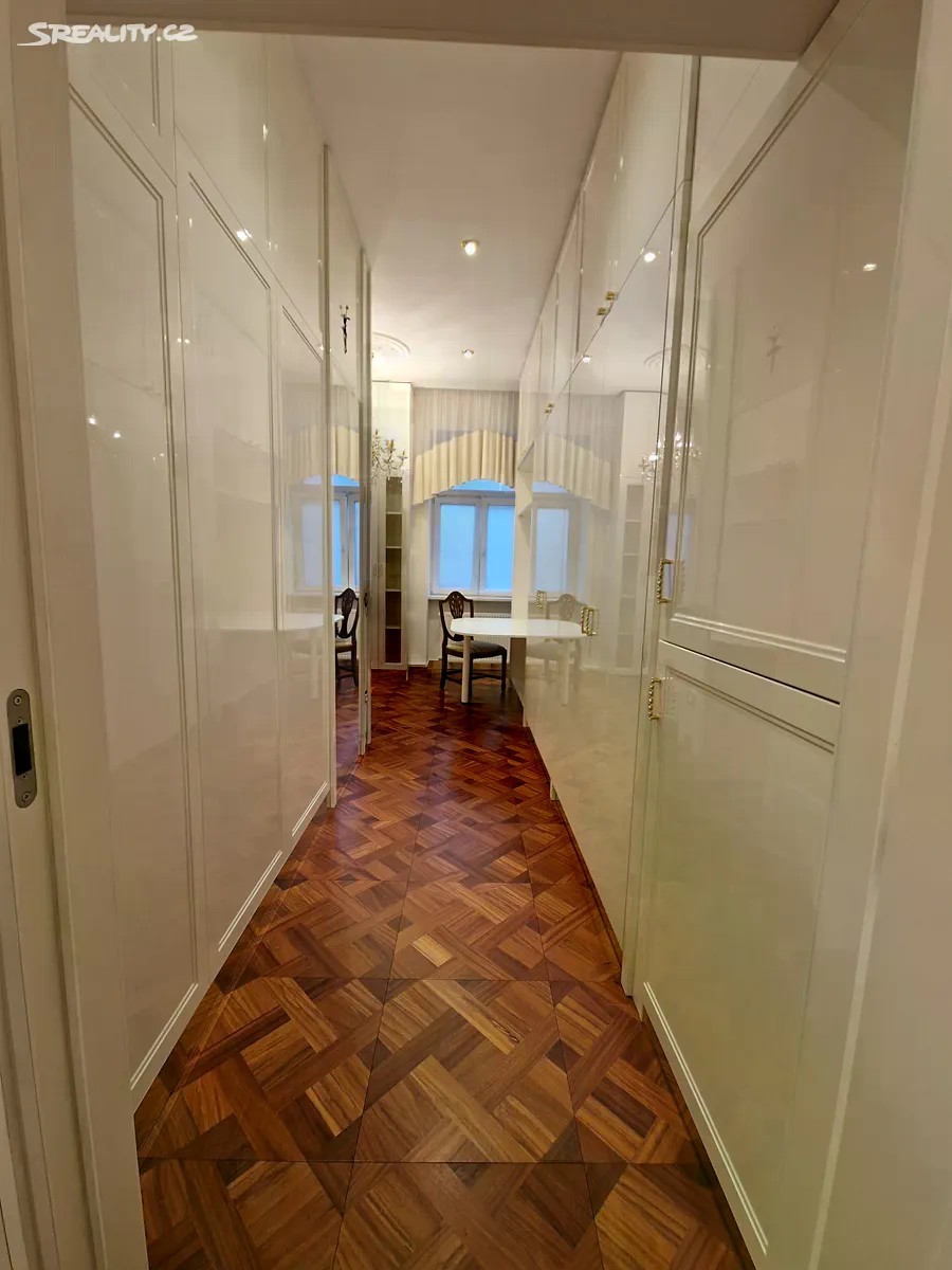 Jedinečný Apartmán 71 m²u Kolonády, Karlovy Vary. TOP LOKALITA: Rezidence s nejprestižnější adresou v Karlových Varech! Byt v 1. patře majestátního cihlového domu. Poloha je bezkonkurenční: jen pár kroků od historické kolonády, přesto v tiché a klidné zóně s nádherným výhledem do parku. Každé ráno vás probudí klid a zeleň. Exkluzivní Luxus : Tento apartmán není jen zrenovován; byl kompletně přepracován pod taktovkou designéra. Opulentní styl, kde každý detail svědčí o nejvyšší kvalitě (od obrazů, vestavěné šatny, závěsů až po designové stropní osvětlení) a tvoří mistrovské dílo. Detaily, které Hladí Smysly: • Dussie Parkety: V celém bytě vás uchvátí vzácné a odolné parkety z exotického dřeva Dussie, položené v elegantním šachovnicovém vzoru. • Kuchyňská linka ve světlých tónech je dotažena k dokonalosti. Všimněte si originálních úchytek s krystaly Swarovski, které se třpytí při každém doteku. • Reprezentační Vstup: Hala s kazetovým stropem a křišťálovým lustrem, osvětlujícím dřevěné obložení. • Královská Ložnice: Romantický design s luxusními tapetami, zlatými akcenty a kvalitním čalouněním. • Koupelna: Extravagance v kombinaci černých obkladů a zlatých doplňků s elektrickým podlahovým topením pro absolutní komfort. Technické Zabezpečení a Komfort: • Celková plocha: 71 m² obytné plochy. • Sklep XXL: K bytu náleží obrovský, suchý sklep o ploše 13 m², který poskytuje neocenitelný úložný prostor. • Centrální Vytápění: Spolehlivé a komfortní. • Parking: Unikátní možnost parkování ve dvoře - vzácnost v lázeňské zóně! Příležitost pro: Náročného klienta, který hledá klid, luxus a reprezentativní bydlení s unikátní atmosférou lázeňského města. Vhodné i jako prestižní investice k pronájmu. Tento apartmán se kupuje srdcem. Přijďte se přesvědčit o jeho jedinečnosti! Cena, plánek a osobní prohlídka na vyžádání. Náklady spojeny s užíváním tohoto bytu je 3.765,-Kč/osoba. Pokud Vás byt zaujal, neváhejte nám napsat nebo zavolat a rádi Vám vše ukážeme osobně.