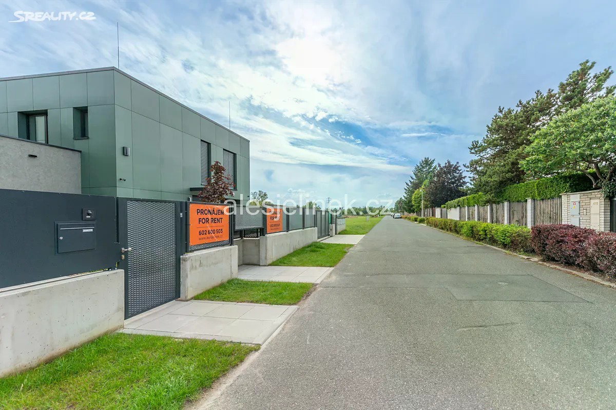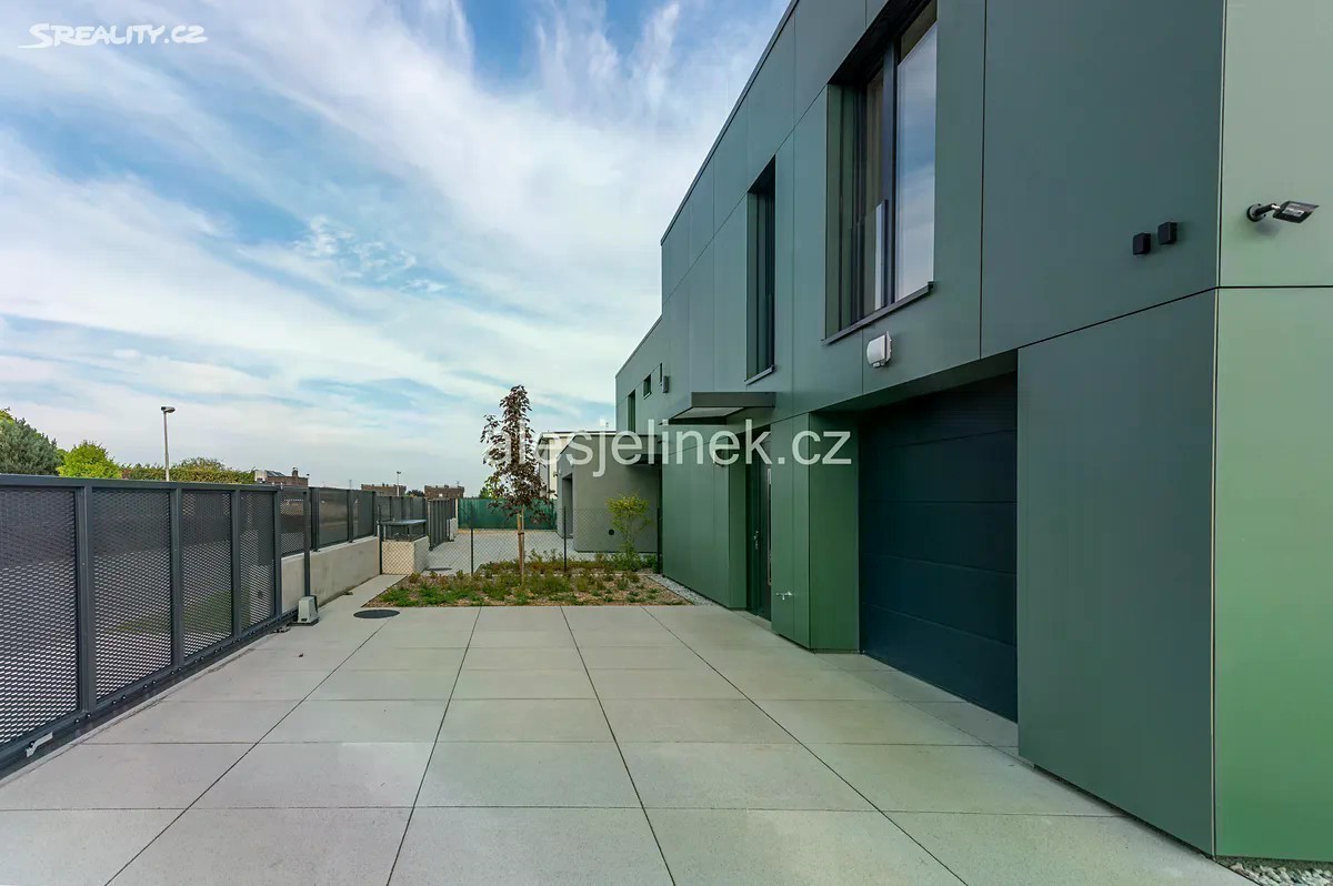 Dům B Exkluzivně nabízím pronájem novostavby poloviny dvojdomu o dispozici 4+kk ve vyhledávané a klidné lokalitě Kunratic. Dům se nachází v blízkosti lesoparku Bažantnice, v docházkové vzdálenosti rybníka Šeberák a Kunratického lesa - ideální poloha pro relaxaci i aktivní odpočinek. Vysoký standard bydlení - úplná novostavba, vysoká kvalita materiálů i provedení, užitná plocha 169 m², zahrada, terasa. Tři parkovací stání na pozemku, další místa před domem. Moderní a energeticky úsporný dům - solární panely, tepelné čerpadlo, podlahové topení, světlovody. Mezinárodní a bilingvní školy a školky - v dosahu například PORG, Prague British International School/Nord Anglia, Sunny Canadian International School, International Montessori Preschool a Montessori Vrbičky. Místní kvalitní ZŠ Kunratice 15 min pěšky. Výborná dopravní dostupnost - autobusová zastávka MHD 10 min pěšky, stanice metra C (Opatov/Chodov) do 10 minut. Dobře dostupná jsou také business centra The Park Chodov, Roztyly Plaza a BB Centrum Brumlovka. Autem snadný přístup na D1 a vnější pražský okruh. Široká nabídka nákupních možností - v okolí například OC Westfield Chodov, OC Kunratice, Billa, Tesco, Lidl. Preference dlouhodobého pronájmu. Ideálně současně s pronájmem domu A o dispozici 5+kk a užitné ploše 248 m². Unikátní příležitost vybrat si souseda, přestěhovat širší rodinu, kolegu. Oba domy jsou k nastěhování od 1.10. kdy bude dokončen interiér a zahrada. 3D prohlídka domu je mezi fotografiemi. Kontaktujte mě s dotazy, nebo pro sjednání osobní prohlídky. Nájemné 75 000 Kč měsíčně + energie (energeticky úsporný dům).