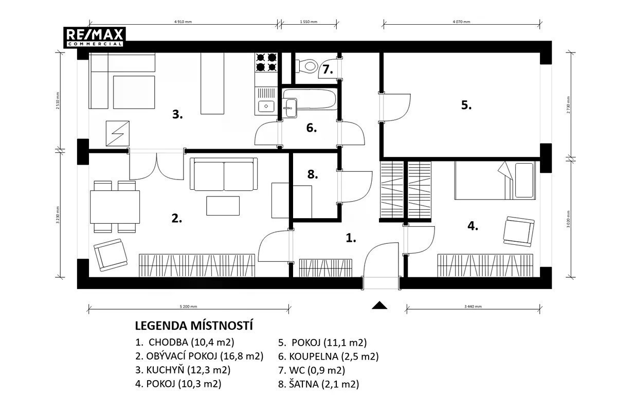 Byt 3+1 v osobním vlastnictví o užitné ploše 66,4 m² se nachází v 1. nadzemním podlaží panelového domu v ulici Třebenická. Pro svou dispozici a velikost je vhodný jak pro rodinné bydlení, tak jako investiční příležitost. Hlavní přednosti bytu: • Dispozice 3+1 - dostatečně velký prostor vhodný pro rodinu. • Možnost úprav - byt je v původním stavu a nabízí budoucímu majiteli volnost pro rekonstrukci podle svých představ. • Sídliště Ďáblice - kompletní občanská vybavenost, školy, školky, obchody a parky v docházkové vzdálenosti. Umístění mezi stanicemi metra Ládví (700 m) a Střížkov (1 km). Dispozice: Vstup do bytu je přes prostornou chodbu s vestavnou skříní. Z chodby je dále vstup do všech obytných místností. Obývací pokoj (16,8 m²) společně s kuchyní (12,3 m²) jsou orientovány na jihovýchod do zeleně a do ulice Střelničná. Oba pokoje (11,1 m² a 10,3 m²) jsou orientovány na severozápad do ulice Třebenická. Koupelna s vanou a umyvadlem je průchozí z kuchyně a chodby. WC je samostatné. K bytu náleží komora přímo naproti bytu, dále sklep v suterénu. Konstrukce a technické parametry: Byt je kompletně před rekonstrukcí a tomu odpovídají původní materiály a koncepce. Bytové jádro je umakartové. Stejně tak většina příček v bytě je z desek na bázi dřeva. Na podlaze je položen koberec, nebo vinyl. Rozvody elektřiny jsou původní v hliníku. V každé obytné místnosti jsou litinové radiátory. Do bytu je zaveden plyn pro sporák. Samotný dům je zateplený a s vyměněnými plastovými okny. Vytápění je pomocí dálkového teplovodu. Lokalita: Dům se nachází v části Prahy 8 - Kobylisy, přímo na sídlišti Ďáblice. V místě je kompletní občanská vybavenost: • Doprava - metro C (Ládví, Střížkov), tramvaje a autobusy u domu, byt je minutu jízdy od městského okruhu navazující na dálnici D8. • Obchody a služby - Norma, Kaufland, menší obchody, restaurace a pivnice. • Školy a školky - školka naproti domu, základní škola a gymnázium do 10 minut chůze. • Volný čas a příroda - lesopark Ďáblický háj, okolní parky a dětská hřiště přímo na sídlišti. Závěr: Další informace Vám makléř rád sdělí na vyžádání telefonicky, formou samostatné prezentace bytu nebo při osobní prohlídce. Celková plocha bytu vychází z původní Smlouvy o nájmu družstevního bytu (byt je nově převeden do osobního vlastnictví), rozměry jednotlivých místností jsou změřeny laserovým metrem.