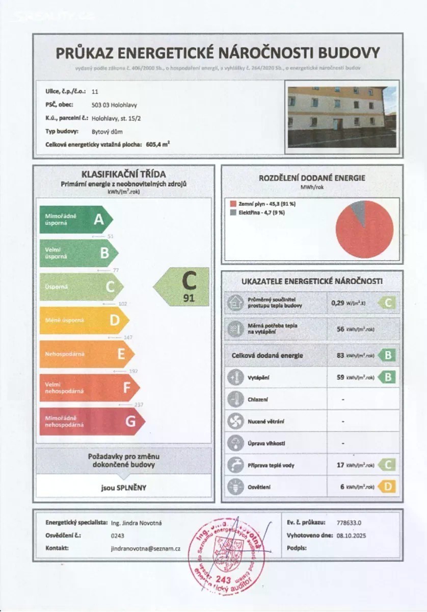 Nabízíme k prodeji útulný byt 2kk o celkové ploše 38 m² v obci Holohlavy, okres Hradec Králové. Tento byt je ideální pro jednotlivce nebo pár hledající pohodlné bydlení v klidné lokalitě s dobrou dostupností do města. Jednotka 11/33 se nachází v třetím nadzemním podlaží menšího cihlového bytového domu. Tento třípodlažní dům má velký potenciál. Po technické a vizuální stránce je ve výborném stavu, s pravidelnou údržbou a každoročními revizemi. Nabízený byt je součástí nové nástavby z roku 2010, kdy bylo 2. a 3. patro domu kompletně nově vystavěno. Díky tomu je byt řešen jako novostavba s moderními standardy. Budova je včetně střechy (Bramac) plně zateplena a osazena plastovými okny s izolačním dvojsklem, díky čemuž nabízí úsporné vytápění a tiché bydlení v soukromí, s nízkými provozními náklady. Bytový dům disponuje energetickým štítkem kategorie C. Dům je vybavený společnými odkládacími prostory, kolárnou a sklepním prostorem. Bytový dům obsahuje celkem 9 bytových jednotek. Dispozičně byt sestává z pokoje (12,1 m²), kuchyně (16 m²), koupelny s WC (4 m²), předsíně (4,8 m²) a komory (1,3 m²). Byt je ve výborném stavu, čerstvě vymalovaný. Je vybaven podlahou z PVC a keramické dlažby. Anhydritová podlaha pod PVC je krásně rovná. Koupelna je opatřena keramickým obkladem. Vytápění je řešeno centrálním plynovým kotlem. Byt disponuje Modusat jednotkou s vlastním měřením. Díky vlastním měřícím přístrojům vody a plynu odpadá starost s rozpočítáváním energií s ostatními bytovými jednotkami. Elektřina bude při prodeji převedena na kupujícího. Přímo na střeše domu je umístěn vysílač internetového poskytovatele, což zajišťuje snadný a rychlý přístup k internetu. V domě je rovněž k dispozici satelitní příjem. Výhodou je krásný výhled na vesnici a okolní zástavbu. Lokalita disponuje kompletní občanskou vybaveností. Přímo v obci Holohlavy se nachází školka, obchod, místní jídelna i nové multifunkční dětské hřiště. V 1 km vzdálených Smiřicích naleznete základní školu, poštu, lékárnu, zdravotní středisko a řadu obchodů, restaurací i kaváren. Výhodou je skvělá dopravní dostupnost. Autem se do Hradce Králové dostanete za pouhých 15 minut. Jaroměř je vzdálená necelých 10 minut jízdy. Přímo u Holohlav můžete najet na dálnici D11, představující hlavní dopravní spojení východních Čech a Prahy. Vlakové nádraží Smiřice se nachází necelý 1 km od bytu, autobusová zastávka Holohlavy je vzdálena pouze 300 m. Byt je v osobním vlastnictví a není zatížen žádným úvěrem / hypotékou. Prodávajícím je Mgr. Jitka Kočišová. Byt naleznete v katastru obce Holohlavy, ulice Dlouhá 11. V případě zájmu Vám pomůžeme s financováním koupě bytu - o financování hypotéky se Vám postará Michal Dvořáček z eDO Finance a.s. Neváhejte a domluvte si prohlídku ještě dnes. Tento byt čeká na svého nového majitele!