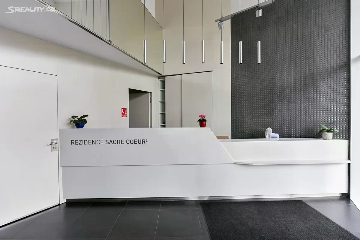 Luxusní apartmán v projektu Sacre Coeur 2, ulice Holečkova Bydlete v nadstandardním apartmánu v Rezidenci Sacre Coeur 2: Projektu bezstarostného bydlení s nepřetržitou recepcí, ostrahou objektu a privátním parkováním zasazeného do prostředí mezi parkem Sacré Coeur či zahradou Kinských! Lokalita tak umožňuje nejen dlouhé procházky v přírodě, ale i velmi rychlé spojení s jakoukoliv částí Prahy včetně letiště. Pečlivě navržený byt ve 3. nadzemním podlaží je proveden ve vysokém standardu s důrazem na použitý materiál, funkčnost a nároky moderní doby. Do bytu nás uvede prostorná chodba, která je rozcestníkem do všech samostatných místností: obývací pokoj s kuchyní, balkónem a výhledem na Vyšehrad či VTower, koupelna s WC, umyvadlem a sprchovým koutem a místnost na spaní pro jednu až dvě osoby. Shrnutí prostorového řešení, vybavení a zařízení apartmánu: obývací pokoj s kuchyní, chodba, koupelna s WC, umyvadlem a sprchovým koutem, místnost na spaní, balkón. Kuchyňská linka s vestavěnými spotřebiči: lednice, mraznička, trouba, mw trouba, myčka atd., jídelní sestava pro čtyři osoby, sofa, TV úložná sestava, vestavěné skříně ve vstupní části apartmánu, botník, pračka. Podlahy obývacího pokoje, místnosti na spaní a chodby jsou dubové, v koupelně je velkoformátová dlažba. Celková užitná plocha bytu je 54 m2. K nastěhování ihned, bez domácích mazlíčku, nekuřáci. V ceně nájmu je parkovací stání v garážích a samostatně uzamykatelný sklep. Měsíční poplatky se pohybují přibližně okolo 4.000, Kč detailní výčet měsíčních poplatků na vyžádání. Pro více informací nás, prosím, neváhejte kontaktovat. Vřele doporučujeme prohlídku.