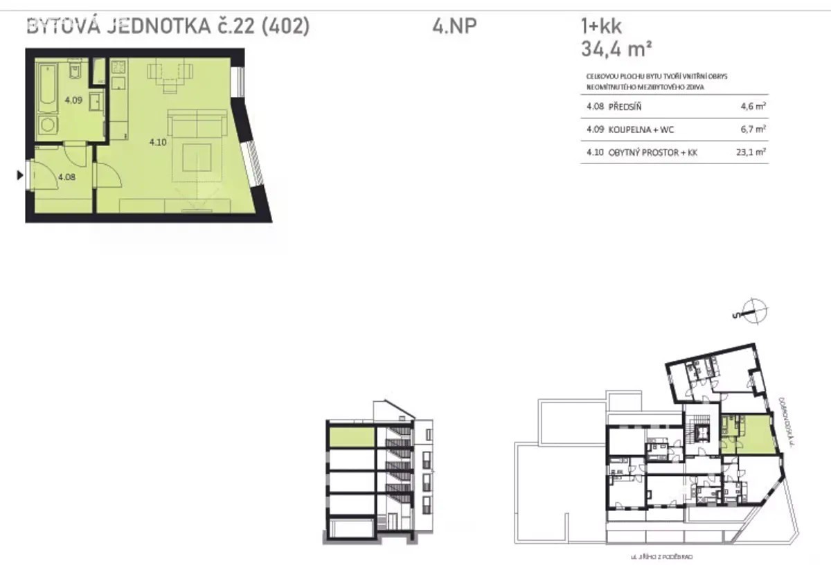 Nabízím bytovou jednotku o dispozici 1+kk v novém projektu bytového domu Hortenzia. Jednotka se nachází ve 4.NP s výhledem na jižní stranu a její dispozice se skládá z: obývacího pokoje s kuchyňským koutem (23,1m2), předsíně (4,6m2) a koupelny s vanou (6,7m2). Podlahové topení. Kolaudace bytového domu je naplánována na konec listopadu. K bytové jednotce je potřeba pořízení garážového parkovacího stání v hodnotě 260 000,- Kč. V případě zájmu a dalších dotazů mě neváhejte kontaktovat. Fotografie jsou ilustrační.