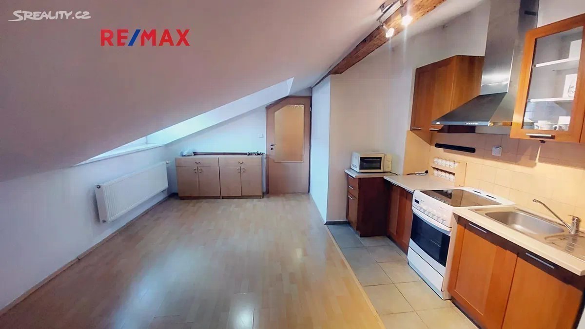 Nabízíme k pronájmu cihlový byt 2+kk o evidované vel. 54 m² v podkroví (4.NP) bytového domu v historickém centru města Olomouc. Dům i byt jsou po kompletní rekonstrukci. Majitelé byt nabízejí včetně kuchyňské linky, el. sporáku (el. sklokeramická varná deska). V bytě jsou plovoucí podlahy a dlažba. Cena 14.500,- Kč (+ služby 3.000,- Kč/1 os. nebo 3.200,- Kč/2 os.). Vhodné pro pracující i studující, především dlouhodobý pronájem. Možnost připojení internetu ve výši 550,-Kč/měsíc. Jistota (kauce) 15.000,- Kč. Provize RK ve výši jednoho nájmu + DPH. Možnost využití společné kolárny. Byt je volný ihned. Bližší informace u makléře nabídky.