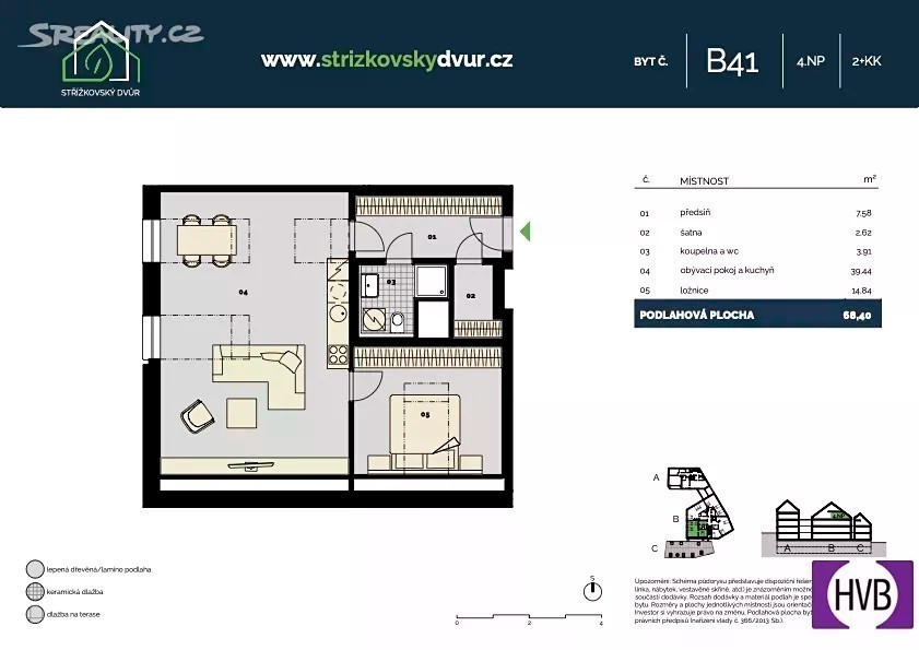 Nabízíme k prodeji byt v osobním vlastnictví o dispozici 2+kk, o výměře 66 m², ve 4. NP novostavby v projektu Střížkovský dvůr, Praha 8 - Střížkov. Dispozice zahrnuje vstupní chodbu, prostorný obývací pokoj, ložnici, koupelnu se sprchovým koutem a WC. Součástí projektu je možnost dokoupení parkovacího stání a sklepa. Projekt Střížkovský dvůr nabízí moderní bydlení ve vysokém standardu - dřevěné podlahy, velkoformátové obklady v koupelnách a kvalitní dřevěná okna. V bytě je instalována klimatizace a připravené rozvody pro venkovní žaluzie. Dokončení je plánováno na listopad 2025. Lokalita poskytuje veškerou občanskou vybavenost - školy, školky, gymnázia, zdravotnická zařízení, restaurace i obchody. Metro C Střížkov je vzdáleno jen 5 minut chůze. V okolí se nachází park Přátelství, Prosecké skály, vinice Máchalka či lesopark Ládví. Nemovitost lze financovat hypotečním úvěrem s nejvýhodnější úrokovou sazbou, kterou vám rádi pomůžeme zajistit. Ohledně dotazů či zájmu o prohlídku mě neváhejte kontaktovat.