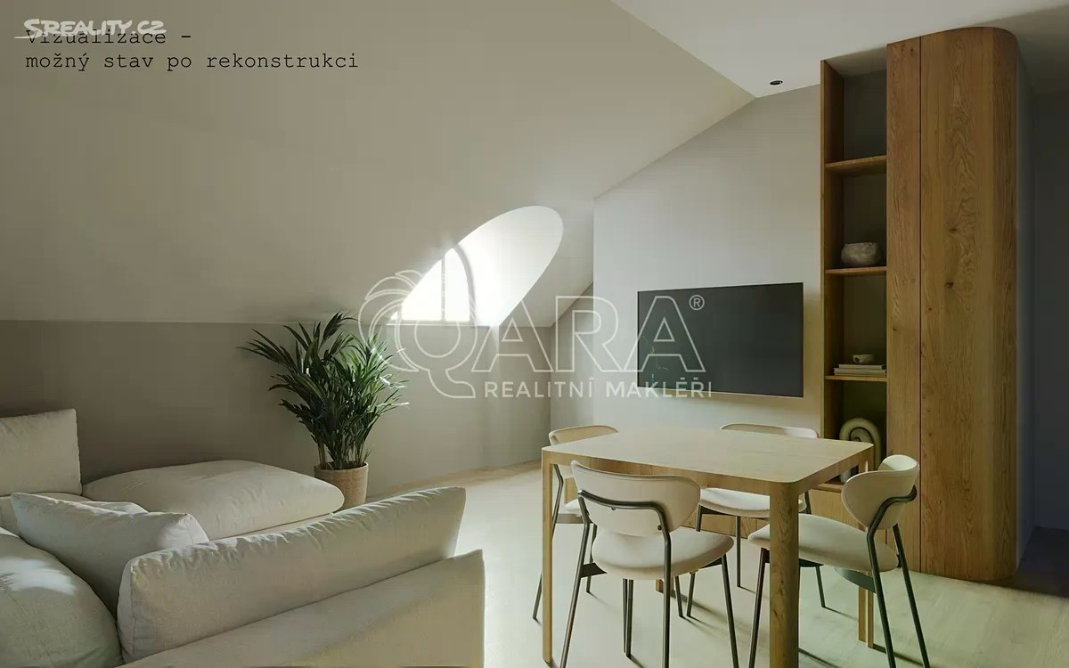 Hledáte bydlení, které v sobě spojuje klid, zeleň a atmosféru jedné z nejkrásnějších pražských čtvrtí? Nabízíme Vám unikátní příležitost získat mezonetový byt 3+1, který se nachází v srdci Prahy 7 - Bubenče, v bezprostřední blízkosti Letenských sadů a Královské obory Stromovka. Dům se nachází v lokalitě, kde se potkává elegantní architektura s množstvím prvorepublikových vil. Zdejší ulice a příjemné prostředí v blízkosti Stromovky a Letenských sadů Vás okamžitě okouzlí. Bydlení zde není jen o metrech čtverečních, ale o životním stylu. Mezonet v podkroví, vybudovaný před cca 25 lety, je ideální volbou pro ty, kteří si chtějí vytvořit domov přesně podle svých představ. Byt je vhodný k menší či větší renovaci s možností vybudování terasy do vnitrobloku. Máme pro Vás nabídku od zkušené stavební firmy na celkovou rekonstrukci za velmi přijatelných podmínek, realizace během 3 měsíců. Byt je dispozičně řešen jako 3+1 a lze ho využít i jako 4+kk (viz vizualizace po rekonstrukci). Ve spodním patře se nachází předsíň, kuchyně, koupelna, samostatná toaleta s oknem, ložnice a obývací pokoj. Schodiště z obýváku Vás zavede do místnosti s šatnou, která může sloužit jako druhá ložnice, pracovna nebo dětský pokoj. Většina oken směřuje do klidného vnitrobloku, což zajišťuje soukromí a ticho. Vytápění a ohřev vody zajišťuje plynový kotel. Tato lokalita má výbornou dopravní dostupnost. Zastávky tramvaje Sparta/Korunovační jsou jen 2 minuty chůze od domu, metro Hradčanská je vzdáleno jednu zastávku tramvají. Měsíční náklady na jednotku jsou 3 372,-Kč + zálohy na el. a plyn, navíc k bytu náleží sklep a v domě je k dispozici také výtah. Nenechte si ujít tuto jedinečnou šanci a přijďte se přesvědčit o kvalitách tohoto místa i bytu, který má velký potenciál.