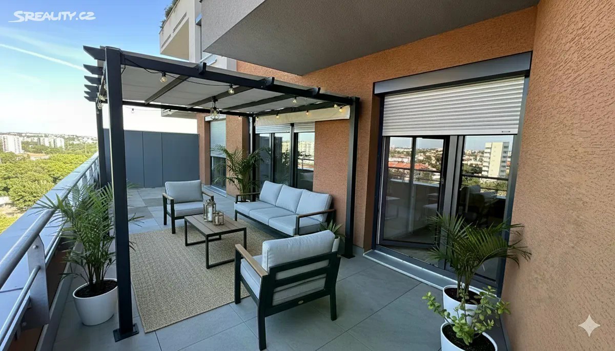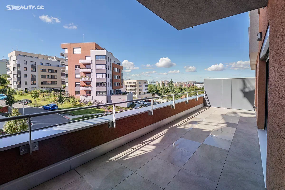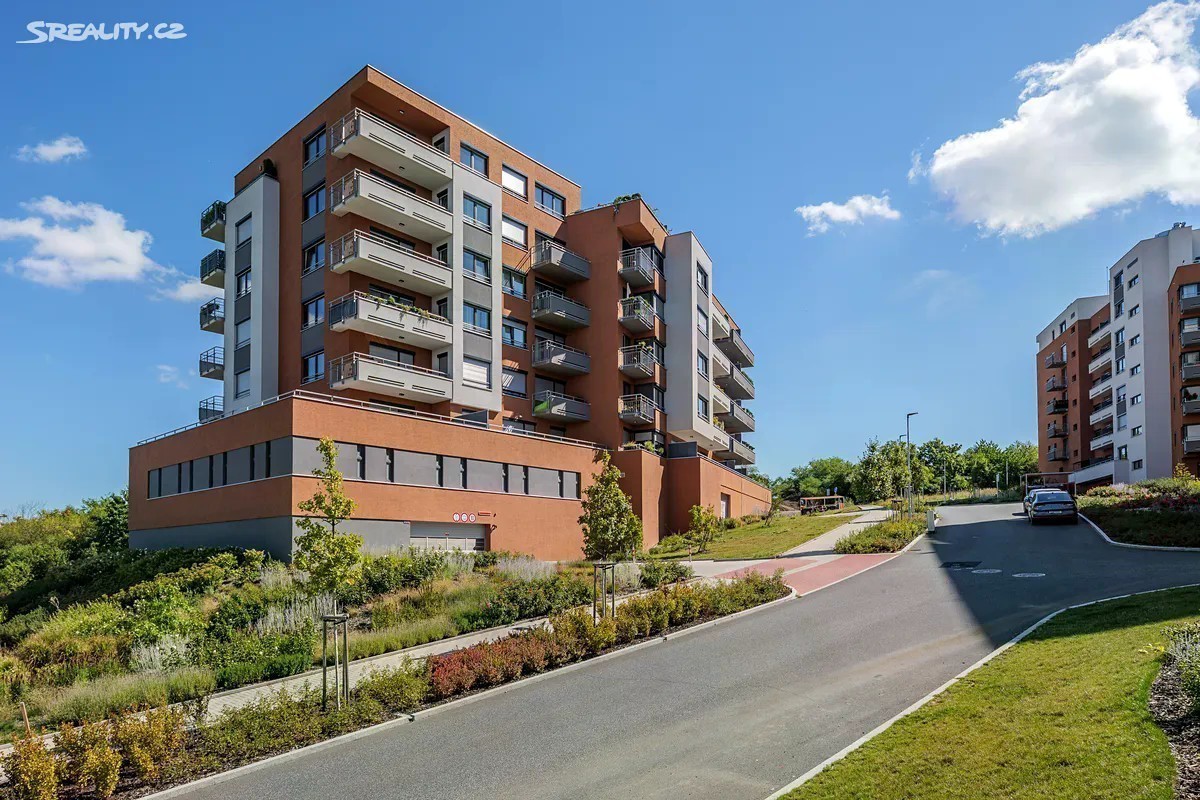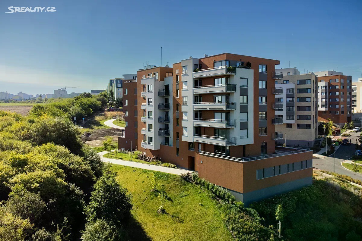 Prodej bytu 3+kk 74 m2 s terasou 28 m2, sklepem a garážovým stáním Nabízíme k prodeji byt 3+kk v novostavbě komplexu obydlených budov, postavených v dosahu přírody (rozhraní Záběhlic a Chodova lokalita Kulatý Chodovec). Prostředí přímo nabádá k dlouhým procházkám a ozdravnému běhu mezi stromy a kvetoucími keři. Byt je dispozičně řešen jako 3+kk o výměře cca 74 m2 s terasou 28 m2 v 1NP, které odpovídá 3 NP jelikož dům je ve postaven ve svahu. K bytu patří podíly na přilehlých pozemcích. V bytě jsou použity kvalitní materiály. V předsíni, koupelně, komoře a samostatné toaletě je světlá lesklá dlažba. V obývacím pokoji s kk a dvou pokojích je položena praktická vinylová podlaha v dřevěném dekoru. Všechny místnosti mají vstup na terasu. Vytápění je řešeno dálkově s ovládáním v každém pokoji. V koupelně je i el. podlahové vytápění. V bytě je elektronický zabezpečovací systém a centrální ovládání venkovních rolet, které jsou ve všech místnostech. Do bytu se vstupuje přes společnou jen pro 3 byty uzavřenou chodbu. Byt je nezařízený, nový nikdy neobývaný otevřený k realizaci interiéru dle nového majitele. K bytu náleží rovněž garážové stání 13 m2 na které navazuje uzamykatelný sklep o výměře 3,5 m2. Dům je výborně udržován a v blízkosti najdete veškerou občanskou vybavenost. Potraviny, smíšené zboží přímo u domu. V bezprostřední blízkosti naleznete hned několik restaurací a kaváren, rodiče ocení dostupnost několika základních a mateřských škol, dětských hřišť a sportovišť. Na nákup můžete vyrazit do 5 minut vzdáleného nákupního centra Westfield Chodov s mnoha obchody, restauracemi, službami a multikinem. Lokalita nabízí bydlení v blízkosti přírody, ale současně má výborné dopravní spojení jak MHD, tak automobilem, a to díky blízkosti stanice metra C Chodov a snadnému napojení na D1 a Městský okruh.