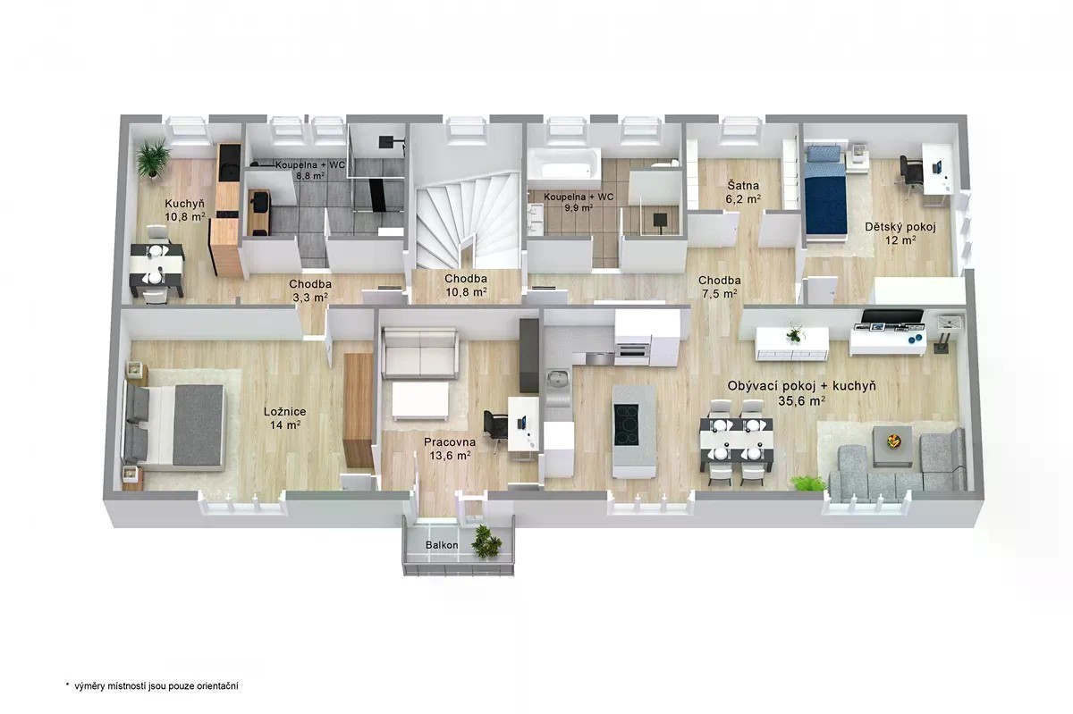 Nabízím jedinečnou příležitost stát se majitelem nadstandardně zrekonstruované bytové jednotky v klidné lokalitě, ale přesto v blízkosti centrální části města Ostrova. Tento prostorný byt s moderní, kompletně vybavenou kuchyňskou linkou a dvěma koupelnami se nachází v oblíbené části města, na Hlavní třídě, ve 2. patře cihlového domu. Nadstandardně prostorný byt s balkonem o užitné ploše 130m2 má dispozici 5+2, případně, po drobné úpravě, 6+1. Dispoziční řešení bytu, které je půdorysně uvedeno v galerii fotografií, je prostorově velmi variabilní a účel, pro který budete pokoje využívat si zvolíte dle svého uvážení a potřeb. Dvě kuchyně, které jsou nyní součástí bytu, jsou příkladem řešení aktuálních potřeb původních majitelů. Hlavní kuchyně se všemi spotřebiči, je propojena s obývacím pokojem a tvoří nadstandardně velký prostor o výměře 36m2. Obývací prostor je částečně zařízen nábytkem, který je součástí prodeje. Samostatná prostorná šatna, ve které je připravené místo na umístění pračky, je dalším benefitem této bytové jednotky. Velká ložnice nabízí dostatek místa pro velkou manželskou postel. Součástí ložnice je na zakázku zhotovená šatní skříň, která prostorově zaujímá plochu jedné stěny. Vzniklo tak další, nadstandardně velké, úložné místo pro vaše oděvy. Vizualizací jsme upravili některé z pokojů nábytkem, abyste si mohli udělat skutečnou představu o jejich velkosti a možném rozmístění bytového zařízení. Obě koupelny jsou moderně zařízené designovým sanitárním zařízením. Jejich dominantou jsou velké sprchové kouty. V jedné z koupelen je navíc umístěna vana. Dobře a vkusně provedenou rekonstrukci bytu podtrhují celoprosklené dveře, které oddělují jednotlivé místností. Pokud hledáte moderní, designově upravený a pohodlný byt v klidné lokalitě Ostrova, pak je tato bytová jednotka určena právě pro Vás. Nečekejte, kontaktujte nás pro více informací a domluvte si prohlídku. Tato bytová jednotka může být již dnes Vaším novým domovem.