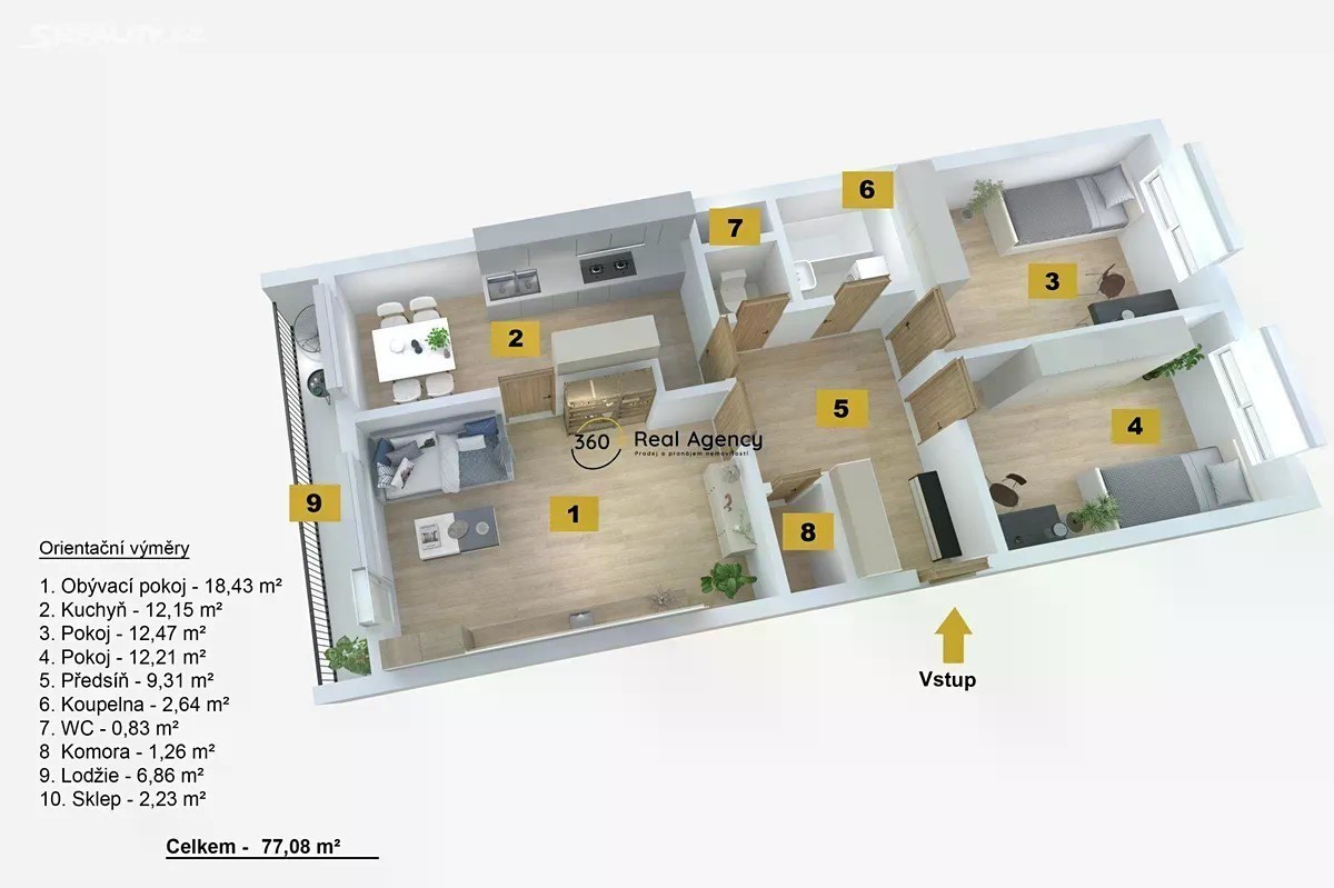 Hledáte domov, který spojuje komfort města a klid přírody? Tento světlý byt o dispozici 3+1 s lodžií a celkové výměře 77 m² (z toho lodžie 6,86 m²) nabízí ideální zázemí pro rodinu i pár, kteří chtějí bydlet v příjemné a bezpečné lokalitě. Byt prošel postupnými úpravami - od bezpečnostních dveří NEXT, přes plastová okna Vekra, až po nově vyzděné bytové jádro s koupelnou a WC. Dispozice bytu: • tři neprůchozí pokoje (18,4 m² | 12,2 m² | 12,5 m²) • samostatná kuchyně (12,1 m²) • prostorná předsíň (9,3 m²) • koupelna a samostatné WC • komora a sklepní kóje • lodžie s výhledem do zeleně Bytový dům je ve výborném stavu - proběhlo kompletní zateplení, výměna oken, modernizace výtahu, výměna stoupaček i úpravy společných prostor. Energetická náročnost: C - úsporná. Lokalita: Rezidenční část Hostivaře nabízí unikátní spojení městského života s přírodou - v bezprostřední blízkosti se nachází park, Hostivařská přehrada i sportovní areál, v okolí jsou školy, školky, obchody i pohodlné parkování. Výborná dopravní dostupnost umožňuje snadné spojení do centra Prahy. Tento byt vyniká prostorností, světlostí a atmosférou klidného bydlení obklopeného zelení, aniž byste se museli vzdát komfortu velkoměsta.