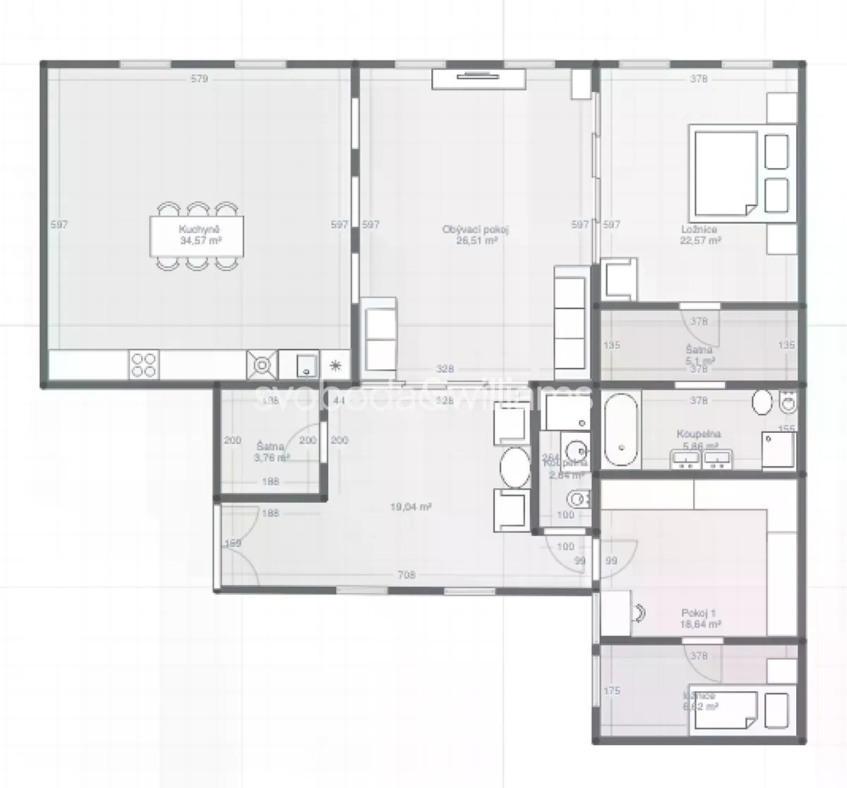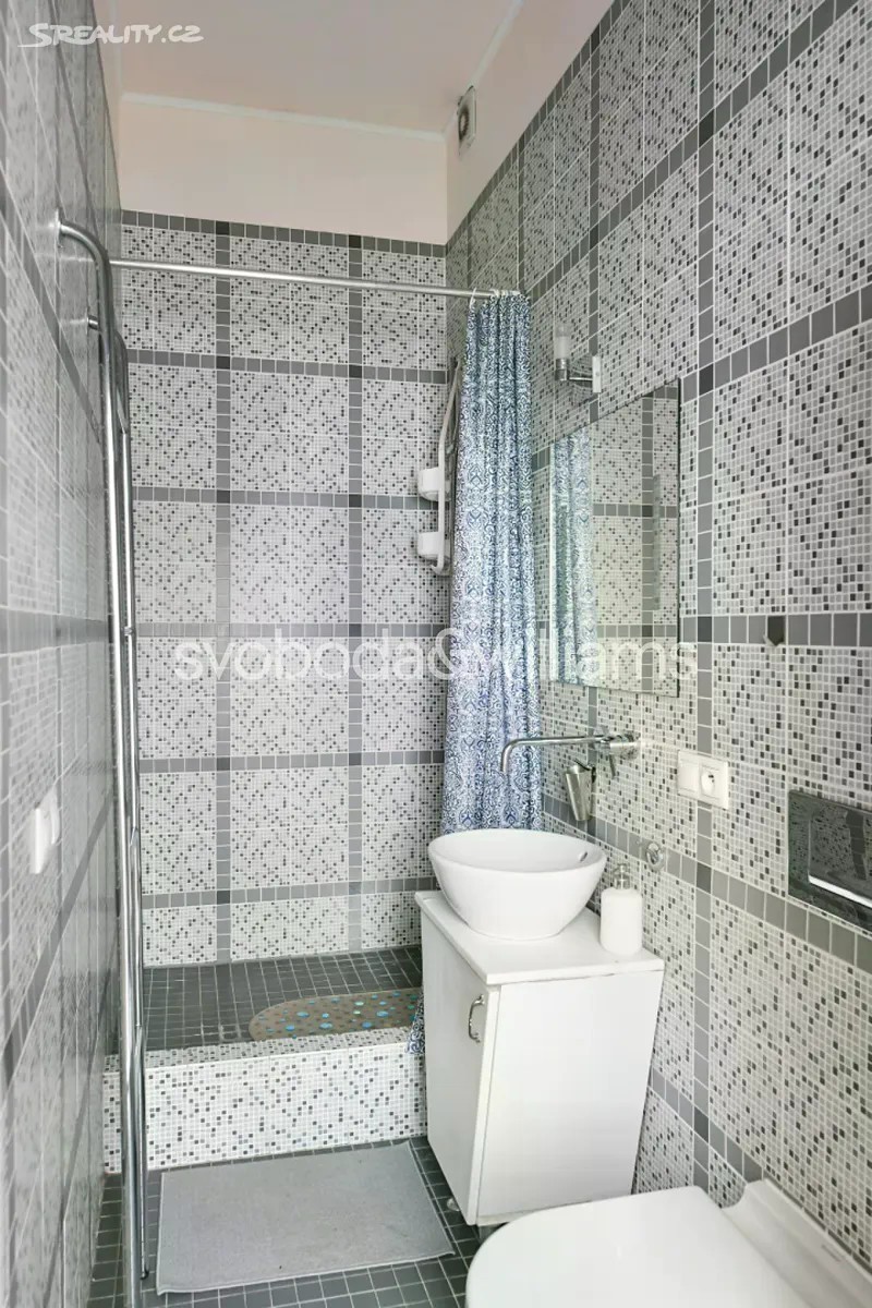 Světlý částečně zařízený byt s podlahovou plochou 134 m2 a okny orientovanými na západ do tichého vnitrobloku je situovaný ve 4. nadzemním podlaží upraveného secesního domu s výtahem, jen pár kroků od Václavského náměstí. Dispozice bytové jednotky nabízí obývací pokoj propojený s velkou kuchyní a jídelnou, který lze plně otevřít do vstupní haly, dále hlavní ložnici s walk-in šatnou a prostornou koupelnou (vana, masážní sprcha, 2 umyvadla, wc a bidet), další 2 pokoje, 2. koupelnu, šatnu a vstupní halu. Byt je možné rozdělit na 2 samostatné jednotky 2+1 a 2+kk se sdílenou vstupní halou a šatnou. Součástí nemovitosti je sklep situovaný přímo na patře vedle bytu, kde je umístěný kotel a bojler. K vybavení bytu patří dřevěné kazetové parketové podlahy v obytných místnostech, keramická dlažba v koupelnách, špaletová okna, plynový kotel Junkers a videotelefon. V kupní ceně je zahrnuta také zařízená kuchyňská linka s dostatkem úložného prostoru a starožitný nábytek. Dům se nachází v atraktivní lokalitě přímo v centru Prahy, jen několik kroků od Václavského náměstí, přitom však v klidné ulici bez rušných barů a klubů. Díky své poloze je ideálním výchozím bodem pro poznávání historického jádra města. V bezprostředním okolí je k dispozici kompletní občanská vybavenost - restaurace, kavárny, obchody, divadla, ale také úřady a lékařské ordinace. Skvělou dopravní dostupnost zajišťují nedaleké přestupní stanice metra Muzeum a Můstek i několik tramvajových linek. Podlahová plocha 133,9 m2, sklep 3 m2.