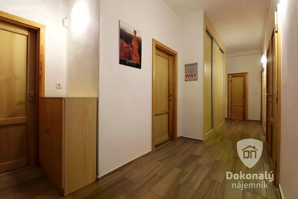 Vzhledem k velmi vysokému zájmu o námi nabízené nemovitosti žádáme všechny vážné zájemce o prohlídky, aby nás pro rychlý a efektivní postup kontaktovali výhradně skrze formulář níže. Následně Vám emailem zašleme krátký osobní dotazník, ve kterém bude třeba uvést několik základních informací. Po vyplnění tohoto dotazníku obdržíte informaci o dalším postupu. Nabízíme k podnájmu částečně zařízený byt 4+1 s balkónem, o celkové výměře 105 m², v 1. nadzemním podlaží cihlového domu v oblíbené lokalitě na Praze 7 - Holešovice, u parku Stromovka. Prostorná kuchyňská linka s vestavěnými spotřebiči (lednice, trouba, varná deska, digestoř, myčka, mikrovlnná trouba) je umístěna v samostatné místnosti s oknem, které do prostoru přivádí nejenom více denního světla, ale i více čerstvého vzduchu. Nechybí zde ani klasický jídelní stůl se židlemi. Ve vedlejší místnosti se nachází obývací pokoj s rohovou pohovkou, křeslem, taburetem a konferenčním stolkem. Zajímavostí tohoto pokoje je projektor včetně sady reproduktorů, který Vám poskytne nevšední zážitek. Hlavní ložnice je kromě manželské postele vybavena dalšími křesly a skříněmi. Druhý pokoj je nevybavený a vy si ho můžete zařídit podle vlastního vkusu. Koupelna, které dominuje hnědá barva, disponuje sprchovým koutem a navíc i pračkou se sušičkou. Toaleta s vlastním umyvadlem je samostatná. Dostatek úložného prostoru nabízí vestavěná šatní skříň na chodbě. Nemovitost je určena výhradně k dlouhodobému podnájmu a je k nastěhování od 20.11.2025. Holešovice jsou velmi oblíbenou lokalitou k bydlení. Je zde vynikající občanská vybavenost i dopravní dostupnost kamkoliv po Praze. Lokalita je také bohatá na nabídku kulturního i sportovního vyžití. Během 5 minut dojdete do parku Stromovky. Park je upraven ve stylu anglické zahrady, s rozlohou 95 ha a je největší pražskou zahradou. Slouží ke sportovním, rekreačním i kulturně vzdělávacím účelům. Je zde množství cest určených na procházky či projížďky na kole. Oproti zvyklostem anglických parků zde neplatí pravidlo zákazu vstupu na trávník, je tedy vhodný například na pikniky. Z terasy Místodržitelského letohrádku je krásný výhled na panorama severních částí Prahy. Poznámka k ceně: Poplatky za služby vč. pojištění domácnosti a odpovědnosti činí 2.129 Kč/měsíc /2 os. (každá další osoba za příplatek) + elektřina a plyn, které budou převedeny na nájemníka. Při podpisu smlouvy nájemník hradí první nájemné, dále rezervaci pro agenturu a vratnou kauci ve výši jedné měsíční platby. Pokud se nemůžete na prohlídku bytu dostavit osobně, je možné domluvit prohlídku formou videohovoru. V reakci na tento inzerát o sobě prosím uvádějte alespoň základní informace (počet osob, zaměstnání, od kdy hledáte bydlení, zda máte domácího mazlíčka). Děkujeme.