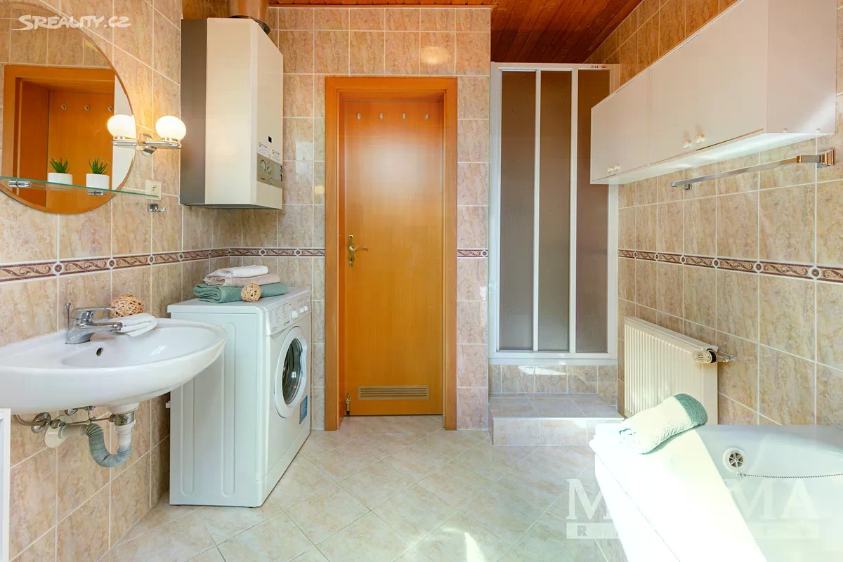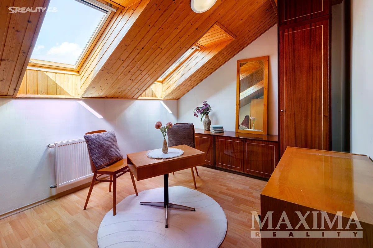 Exkluzivní prodej - Pěkný rodinný dům 5+1 s garáží a zahradou, Újezd nad Lesy. Nabízíme k prodeji pečlivě udržovaný rodinný dům - levou část dvojdomu s dispozicí 5+1 na atraktivní adrese Bromova ul. v Újezdu nad Lesy. Tento patrový dům o užitné ploše 142 m2 na pozemku 354 m2 představuje ideální kombinaci komfortního bydlení, praktičnosti a vynikající lokality. Promyšlená dispozice pro pohodlný život: Přízemí vás přivítá prostornou vstupní chodbou 3,60 m2, která plynule navazuje na funkčně řešené prostory. K dispozici máte samostatné WC, koupelnu se sprchovým koutem a srdce domu - otevřený obývací pokoj spojený 27,10 m2 + kuchyní a jídelnou + spíž 16,40 m2, samostatné WC, koupelna se sprchovým koutem. Největší výhodou je přímý vstup z obývací části do zahrady, kde si můžete užívat klidné chvíle. Dřevěné schodiště vás zavede do patra, kde na vás čeká hlavní ložnice 15,80 m2, obývací pokoj pro hosty 16,50 m2, dětský pokoj 10,80 m2, pracovna, šatna, velká koupelna s vanou, bidetem, WC 7,40 m2, praktická pracovna umožní efektivní home office a šatna vyřeší úložné potřeby. V patře naleznete také druhou, plně vybavenou koupelnu s vanou, bidetem a WC. Díky střešním oknům je celé patro prosvětlené přírodním světlem. Vlastní garáž - žádné starosti s parkováním, parkování před garáží, udržovaná vzrostlá zahrada 265 m2. Kompletní infrastruktura - vodovod, plynovod s plynovým kotlem, veřejná kanalizace. Lokalita: Újezd nad Lesy patří mezi nejžádanější oblasti Prahy východ. Tato lokalita dokonale kombinuje výhody klidného bydlení v přírodě s vynikající dostupností do centra metropole. Žijete zde v harmonickém prostředí obklopeni zelení, přitom máte veškerou občanskou vybavenost na dosah ruky. V okolí najdete: Kvalitní mateřské a základní školy Obchody pro každodenní potřeby Zdravotnická zařízení Sportovní a rekreační možnosti Výborné dopravní spojení do centra Prahy Újezd nad Lesy patří mezi oblasti s trvalým zájmem kupujících, což zaručuje dlouhodobou hodnotovou stabilitu vaší nemovitosti. Dům je okamžitě obyvatelný - můžete se nastěhovat a začít si užívat všech výhod rodinného bydlení a upravit si vše podle svých představ a potřeb. Představte si ranní kávu na terase s výhledem do vlastní zahrady, večery strávené s rodinou v prostorném obývacím pokoji nebo klidné chvíle v pracovně s dostatkem světla ze střešních oken. Tento dům vám nabízí prostor pro všechny životní situace. Kontaktujte nás ještě dnes a domluvte si prohlídku! Těšíme se na setkání s vámi a ukázání všech předností této nemovitosti. Váš nový domov na vás čeká! Hypotéka možná, rádi pomůžeme s vybavením. PENB: G* (údaj je ve zpracování)