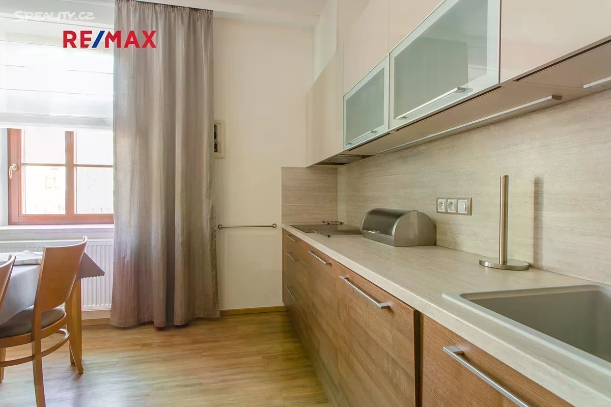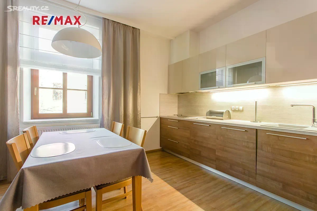 K pronájmu nabízím nadstandardní, úplně vybavený byt 3+kk o výměře 102 m2 po kompletní rekonstrukci, nedaleko centra města Brna v městské části Veveří. Byt se nachází ve 2.patře cihlového domu po kompletní rekonstrukci. Do bytu se vchází bezpečnostními dveřmi. V bytě je nová kuchyňská linka zn. Hanák a je vybavena veškerými spotřebiči (lednice s mrazákem zn. Liebherr, horkovzdušná trouba, varná deska, myčka, mikrovlnná trouba - vše zn. Electrolux, rychlovarná konvice Bosch, nové hrnce, sklenice i příbory, dále pak vysavač i žehlící prkno). V obývacím pokoji je kožená pohovka, TV stěna, televize. V dalším pokoji je rozkládací dvoulůžková pohovka. Byt má vlastní plynový kondenzační kotel. V technické místnosti jsou pračka i sušička. Koupelna je vybavena vanou i sprchovým koutem. Toaleta je samostatná. V ložnici jsou na okně žaluzie a dále zatemňovací závěs. Vedle ložnice je šatna a další úložné prostory (dvě vestavěné skříně) v předsíni. Další skříň je v ložnici a na chodbě u pokoje. Možnost využití společné, suché, uzamykatelné kolárny. Možnost připojení k internetu i digitální televizi. Půdorys bytu na vyžádání. Orientace bytu je V-Z. Byt je vhodný pro bezdětný, pracující pár, bez zvířat, nekuřáky. Nevhodný pro více než dvě osoby, studenty a rodiny s dětmi. Okolí tichého, klidného domu je kompletní občanská vybavenost. Vážným zájemcům doporučuji prohlídku bytu, která je po možná domluvě. K nastěhování je byt ihned. V případě zájmu kontraktujte prosím makléře nabídky, ideálně emailem.