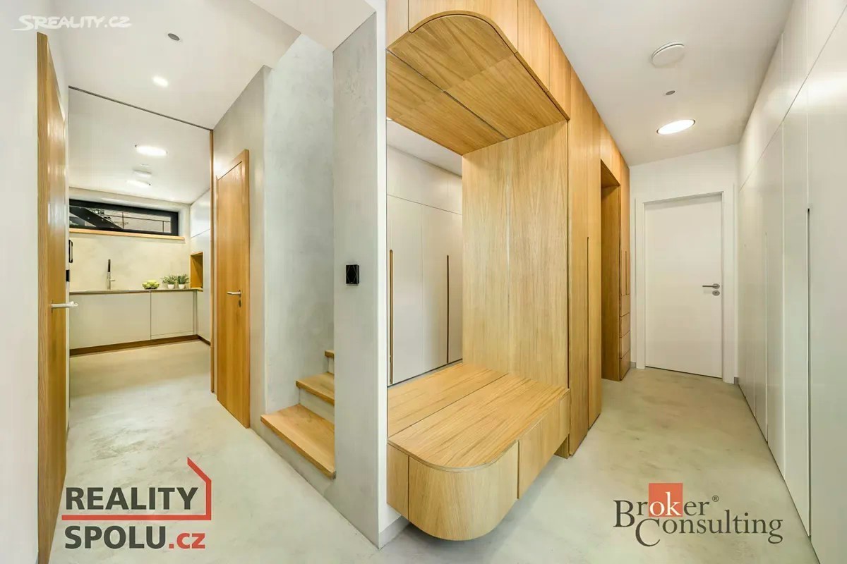 Jsou domy, které nejsou jen nemovitostí, ale životním stylem. Tato moderní vila 5+kk v klidné Zátišské ulici v Modřanech byla navržena do posledního detailu - s respektem k designu, technologiím i komfortu. Nábytek a zařízení vyrobené na míru, chytrý systém řízení a luxusní materiály vytvářejí prostředí, kde se každý den stává zážitkem. Hlavní přednosti: Dvoupodlažní rodinná vila 5+kk, užitná plocha 224 m² Moderní dispozice, otevřený prostor s důrazem na světlo a funkčnost. Interiér v nejvyšší kvalitě Nábytek a zařízení na míru, dvě vrstvy dřevěné podlahy Admonter, dokonalý komfort v každém detailu. Relaxace na dosah ruky Terasa s vyhřívaným bazénem, privátní sauna a soukromá oáza klidu. Pozemek 372 m² Elegantní a přitom praktické uspořádání s dostatkem soukromí. Dvougaráž Pohodlné parkování pro dvě osobní vozidla. Technické parametry a materiály špičkové úrovně: - hrubá stavba - HELUZ Family 30 - fasádní obklad - keramické pálené pásky WIENERBERGER TERCA OLM ORME - krytina - keramické pálené tašky Engoba - ploché střechy - vegetační extenzivní střecha - terasová prkna - garapa - okna - hliníková Schüco, žaluzie HELLA Moderní technologie: - tepelné čerpadlo vzduch-voda Vaillant - rekuperace Brink Flair 325 - podlahové vytápění - vše napojené na chytrý systém Loxone Vila, která spojuje moderní architekturu, chytré technologie a komfortní životní styl. Může být vaším rodinným domovem, který nabídne luxus, soukromí i maximální pohodlí každý den. Těším se na Vás na prohlídce této jedinečné nemovitosti!