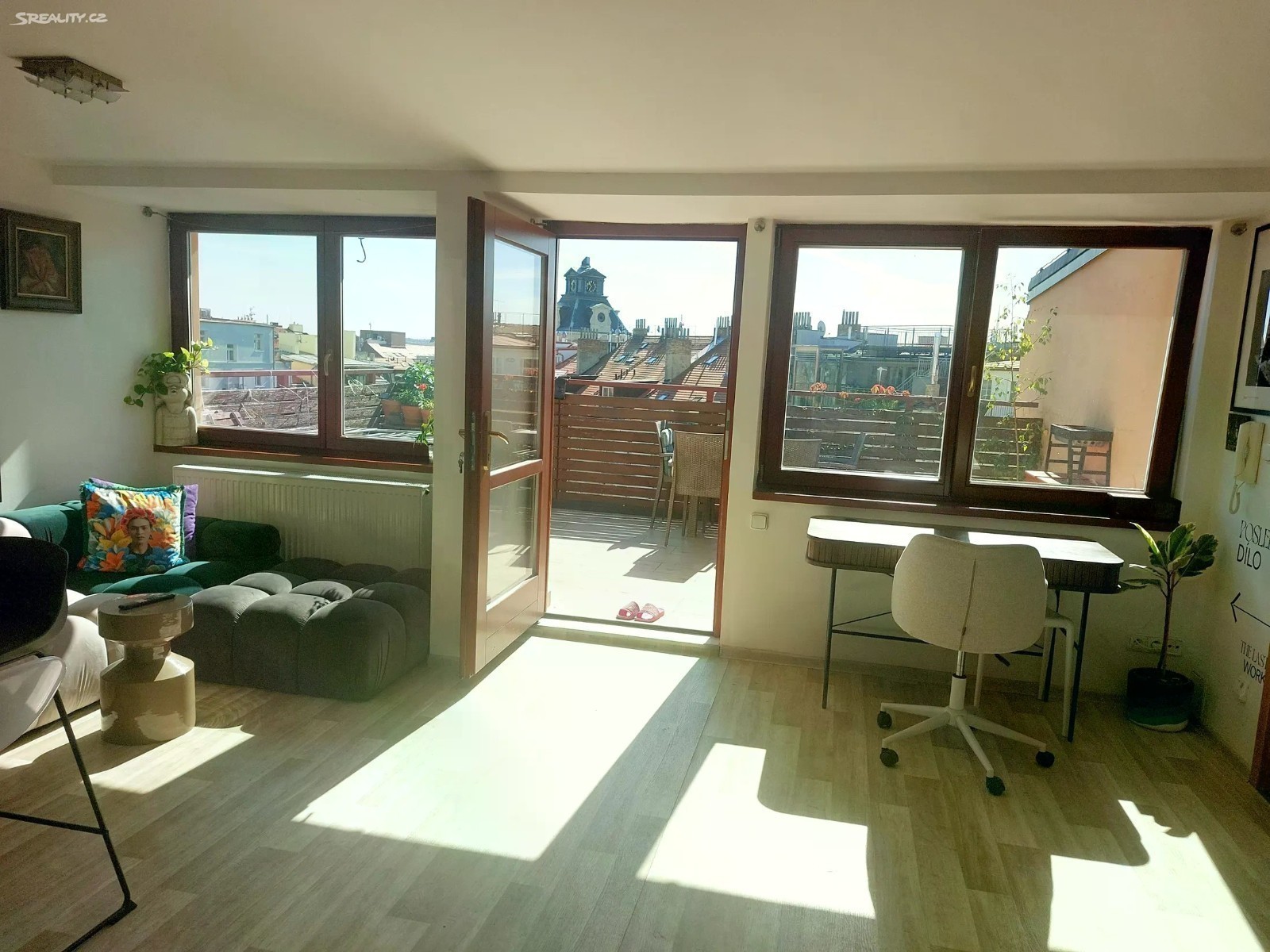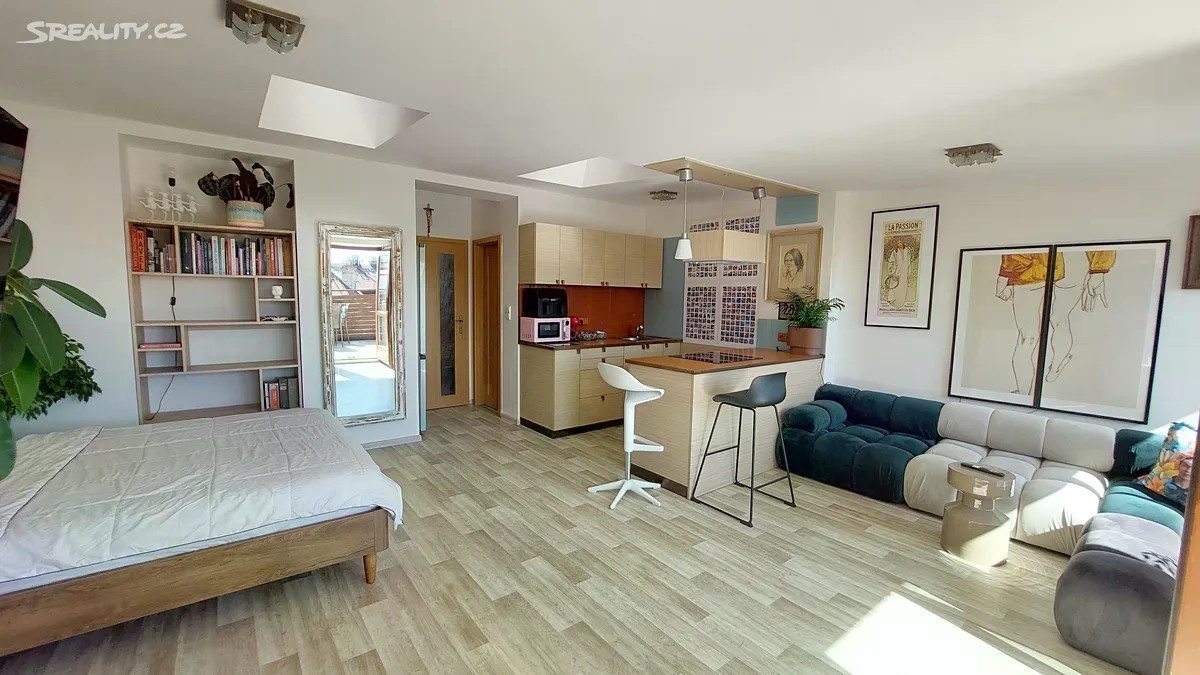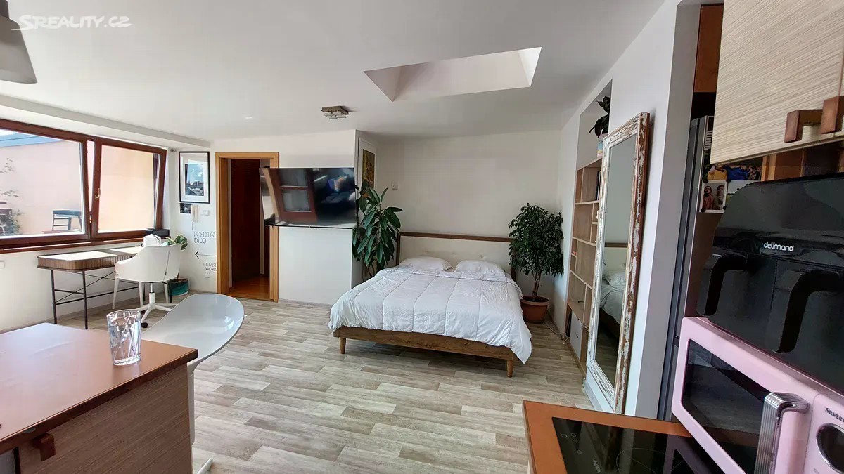 Nabízíme k prodeji světlý a slunný byt o dispozici 2+kk a podlahové ploše 64,7 m², který je součástí půdní vestavby cihlového domu v lokalitě Prahy 7 - Bubeneč jedné z nejžádanějších lokalit v Praze. K bytu náleží terasa o velikosti 16,5 m² s krásným výhledem. Byt je vybaven velkými okny na terasu, v ložnici střešními okny a dále světlíky, které zajišťují dostatek denního světla po celý den. V koupelně se nachází vana, v ložnici i předsíni jsou vestavěné skříně poskytující dostatek úložného prostoru. V předsíni ve vestavěné skříni je prostor pro pračku a kotel Vaillant. Podlahovou krytinu tvoří kvalitní dlažba. K bytu patří komora cca 3 m2 V domě je moderní prosklený výtah K bytu je možné přikoupit samostatný ateliér o výměře 14,5 m2 s vlastním příslušenstvím. Bezproblémové parkování v parkovacím domě cca 300 m od domu. Lokalita se vyznačuje skvělou dopravní dostupností i občanskou vybaveností. Ideální pro bydlení i jako investice.