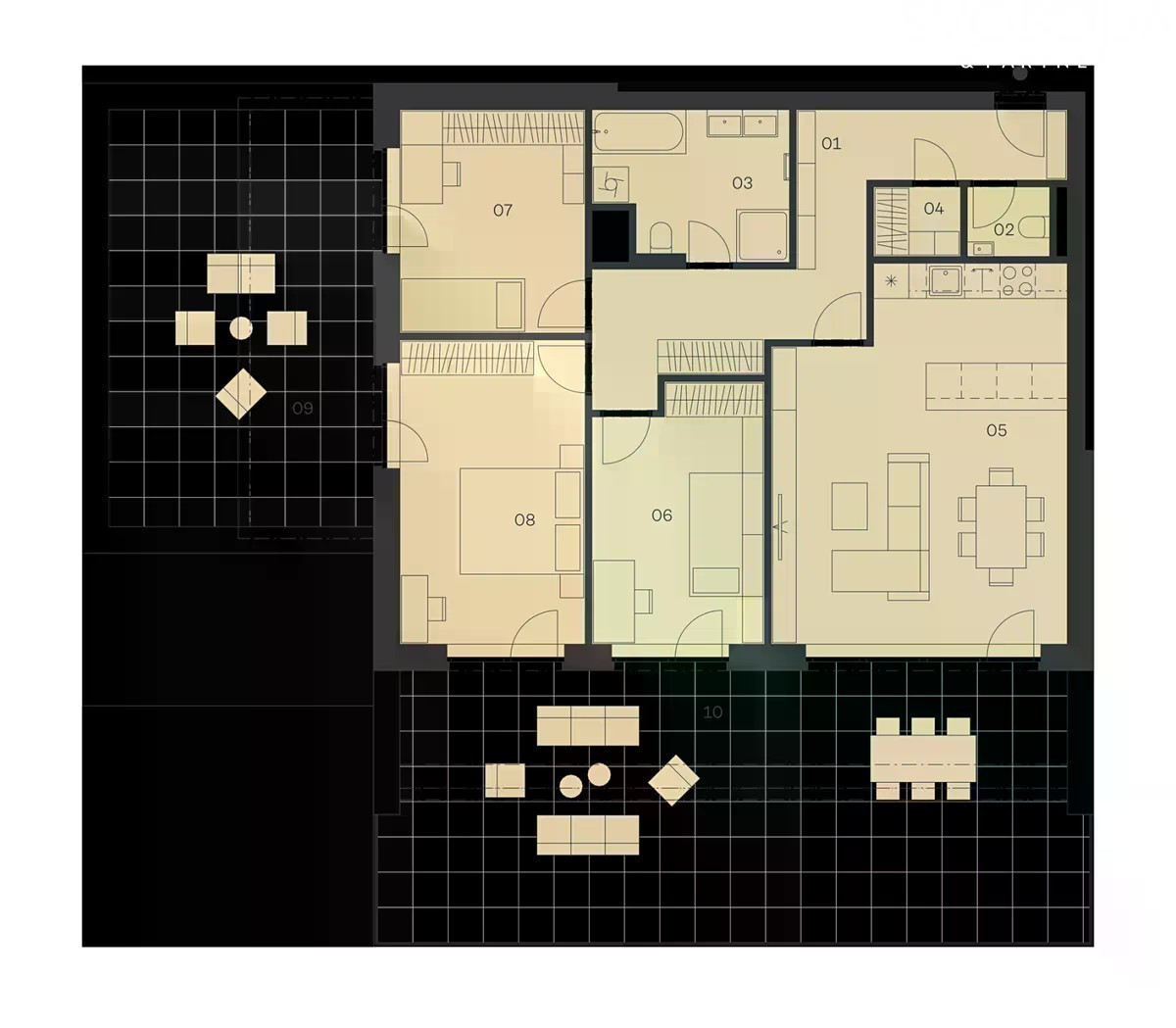 Nabízíme k prodeji prostorný byt 4+kk o celkové ploše 192,89 m² (užitná plocha 105,05 m² + 2 terasy 87,84 m²), který je součástí nově vznikajícího rezidenčního projektu v Hradci Králové, v městské části Plotiště nad Labem. Byt se nachází ve 4. nadzemním podlaží bytového domu s výtahem. Interiér tvoří chodba, obývací pokoj s kuchyňským koutem, tři ložnice, komora, koupelna a samostatná toaleta. K bytu náleží také dvě terasy o velkorysé celkové ploše 87,84 m², které nabízí příjemné místo pro odpočinek či posezení. K bytu náleží dvě kryté parkovací stání. Projekt zahrnuje dva moderní rezidenční domy s širokým výběrem bytů různých dispozic. Důraz je kladen na kvalitní provedení, moderní technologie, energetickou úspornost a komfortní bydlení. Stavba byla zahájena na jaře 2025 a plánované dokončení je na začátku roku 2027. Štítek energetické náročnosti: A. Lokalita nabízí výbornou dopravní dostupnost do centra Hradce Králové a skvělé napojení na Prahu. V blízkosti se nachází veškerá občanská vybavenost, okolí je příjemné a plné zeleně. Pro více informací nás neváhejte kontaktovat. Financování zajistíme.