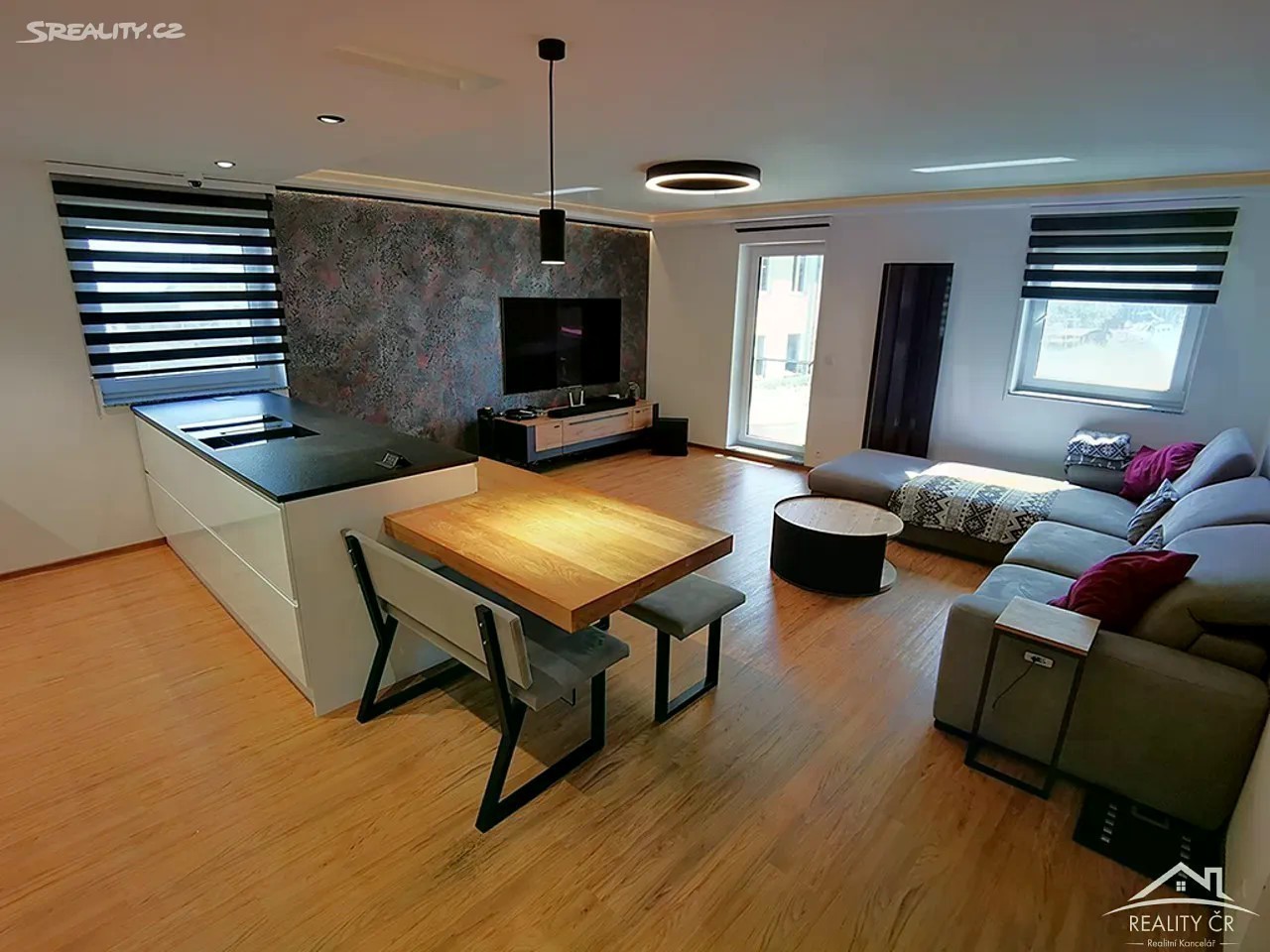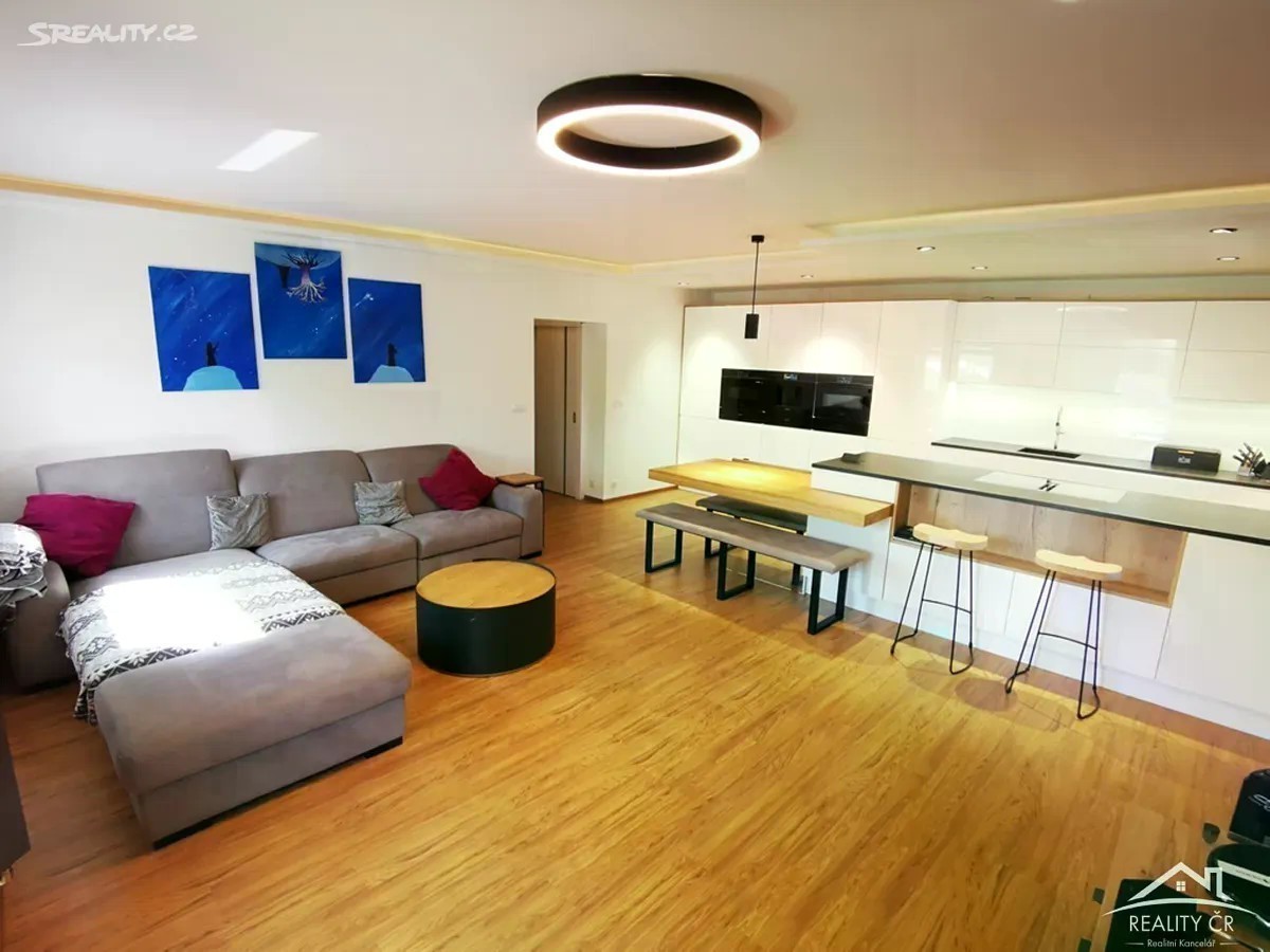 Prodej zánovního luxusního bytu o rozloze 94m2. Moderní bytová jednotka je svou atmosférou a nadstandardní kvalitou provedení s citlivým použitím materiálů sklo, kov, dřevo s důrazem na celkový pocit vzdušnosti a otevřeného prostoru velmi atypická a exklusivní. Ojedinělou koncepcí a charakterem výjimečnosti vyhoví i nejnáročnějším požadavkům současné doby a stylu. Vstupní hala, pracovna s terasou, ložnice, koupelna, toaleta, obývací pokoj s kuchyní 39m2 a terasou. Kuchyně vybavena nejvyšší řadou značkových spotřebičů Siemens, včetně parní trouby, prémiového značkového osvětlení od renomovaného rakouského výrobce, zabezpečovací systém, okna s ochranou proti rozbití, televizor 8K, aj. Parkovací místo v ceně. Financování s dalšími výhodami zajistíme. Více informací na telefonu.