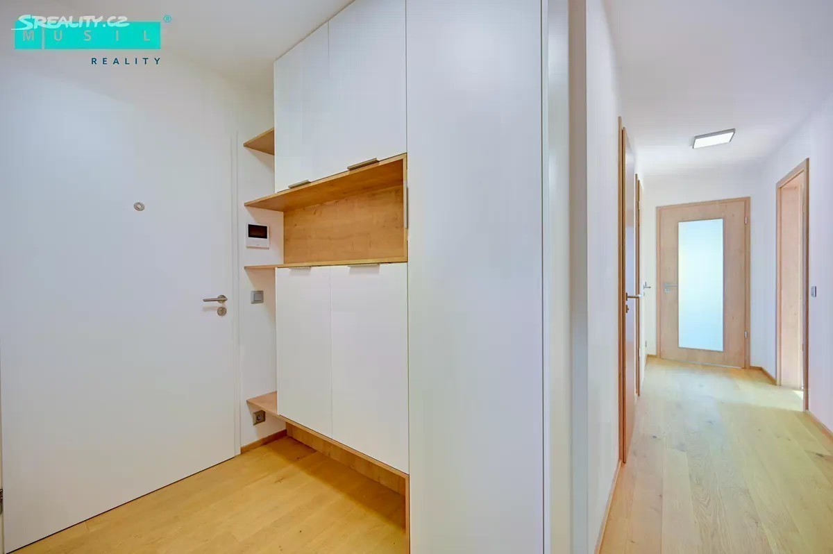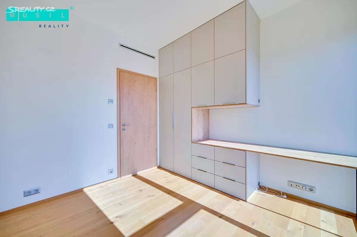 Pronájem krásné, zařízené novostavby bytu o dispozici 3+kk nacházející se v nově vzniklé luxusní rezidenci projektu Šantovka Living v Olomouci. Byt má výměru cca 71,1 m2 a nachází se ve 3. patře cihlového domu s výtahem. Jedná se o zcela nové bydlení, kdy interiér nemovitosti je do posledního detailu navržen interiérovým designovým studiem. Nemovitost se skládá z obývacího pokoje, kterému dominuje kuchyňská linka vyrobena na míru a je z něj vstup na prostornou terasu o výměře 11,5 m2, dále následuje dětský pokoj a ložnice, koupelna s vanou a umyvadlem, samostatné WC a vstupní chodba. Samostatná komora nabídne možnost zařízení technické místnosti pro umístění pračky a sušičky. Prostorné šatní skříně v ložnici, dětském pokoji a v chodbě, jsou vyrobené na míru a poskytnou dostatek úložných prostor. Venkovní rolety na dálkové ovládání jsou instalovány na všech oknech a můžete jimi byt úplně uzavřít a zatemnit celou nemovitost. Luxusní dřevěná podlaha působí velmi příjemným a teplým dojmem. Vytápění je zajištěnou podlahovým topením. V suterénu domu se nachází velký zděný sklep. Jedná se o pronájem dokončeného, zkolaudovaného bytu v jedné z nejluxusnějších lokalit města Olomouce. Po dokončení celého projektu bude areál uzavřen vrátnicí se závorou. Budu se tedy jednat o soukromý ostrov s přístupem pouze pro rezidenty. Nově vzniká také soukromá promenáda kolem řeky s lavičkami o prostorem pro relaxaci. Přímo vedle domu, ve kterém se byt nachází je soukromá zahrádka určená pro obyvatele tohoto domu. V domě pouze 18 bytů. PENB B, tedy velmi nízké náklady na bydlení. Dále je k dispozici parkovací stání v suterénu domu za příplatek 1.000 Kč/měs. Skvěla dostupnost do centra města. Veškera infrastruktura na dosah ruky. Pro více informací prosím kontaktujte makléře zakázky. Nájem: 25.900 Kč/ + 4.500 Kč energie, elektřina přepisem na nájemníka. Vybírána kauce ve výši dvou měsíčních nájmů, provize RK 25.900 + DPH.