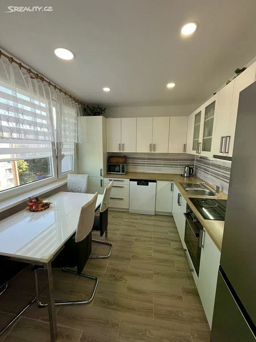 Nabízíme k prodeji bytovou jednotku o dispozici 3+1 a podlahového ploše 81 m2 v ulici Česká v Mostě. Prostorný byt je v osobním vlastnictví a je umístěn v 7. (předposledním) podlaží klidného panelového domu s výtahem. Byt je po kompletní rekonstrukci: vyzděné jádro s vanou, toaletou a dostatečným prostorem na pračku a sušičku, nová kuchyňská linka se spotřebiči, posuvné dveře do koupelny a vnitřní šatny, interiérové dveře s obložkami, nové bezpečnostní dveře od firmy HT systém, podlahy a pod. K bytu náleží sdílený balkon s vedlejším bytem v mezipatře a sklepní koje. Popř. vyměníme za obdobný byt v okrese Rakovník. Veškerá občanská vybavenost se nachází v přímém sousedství. Další informace u makléře.