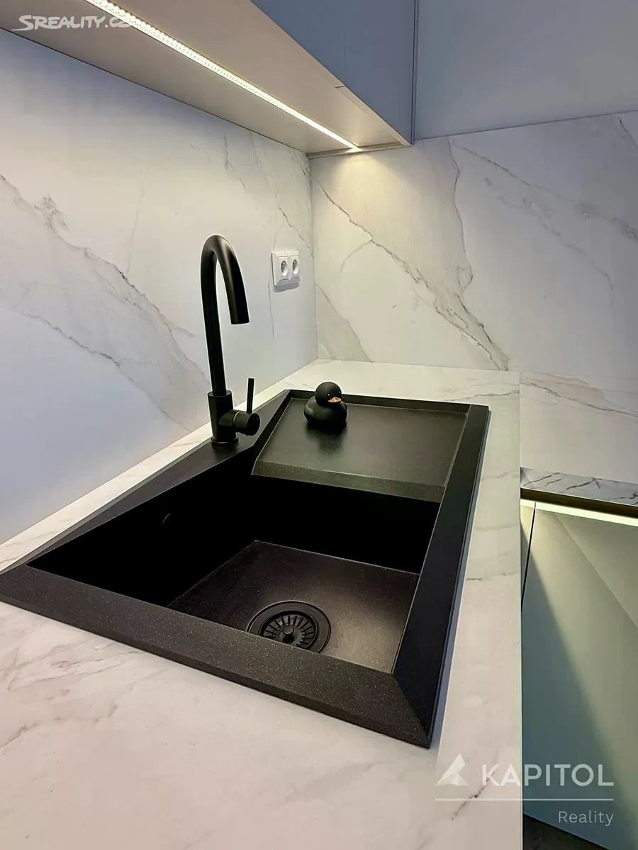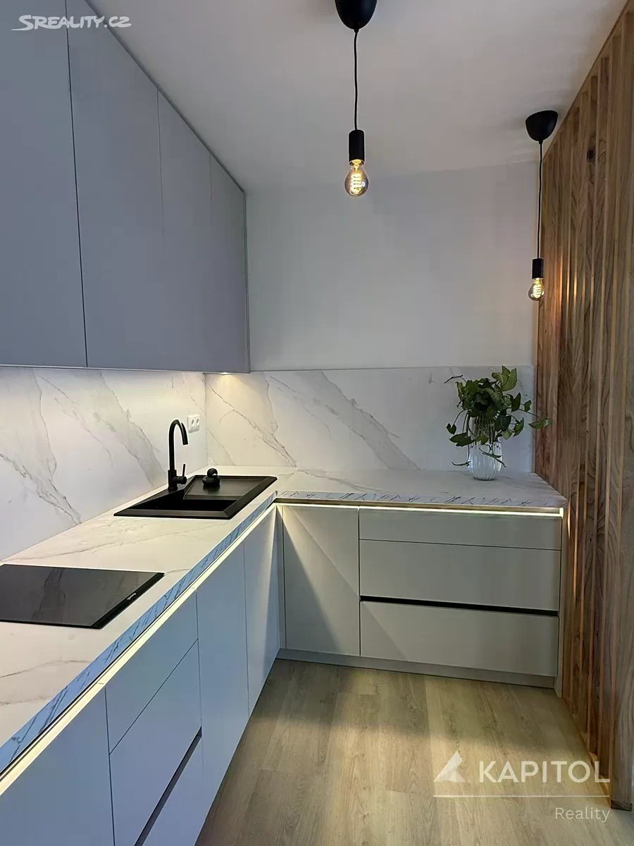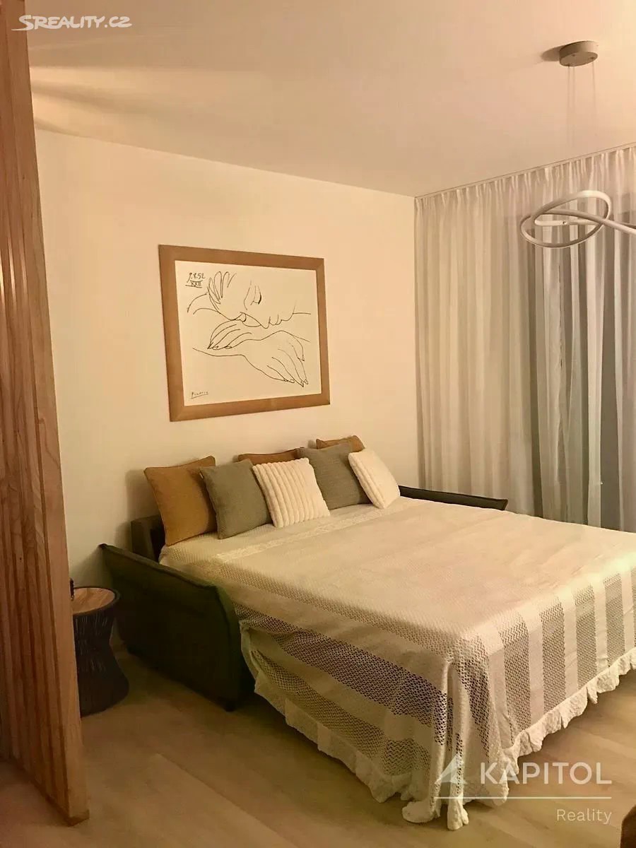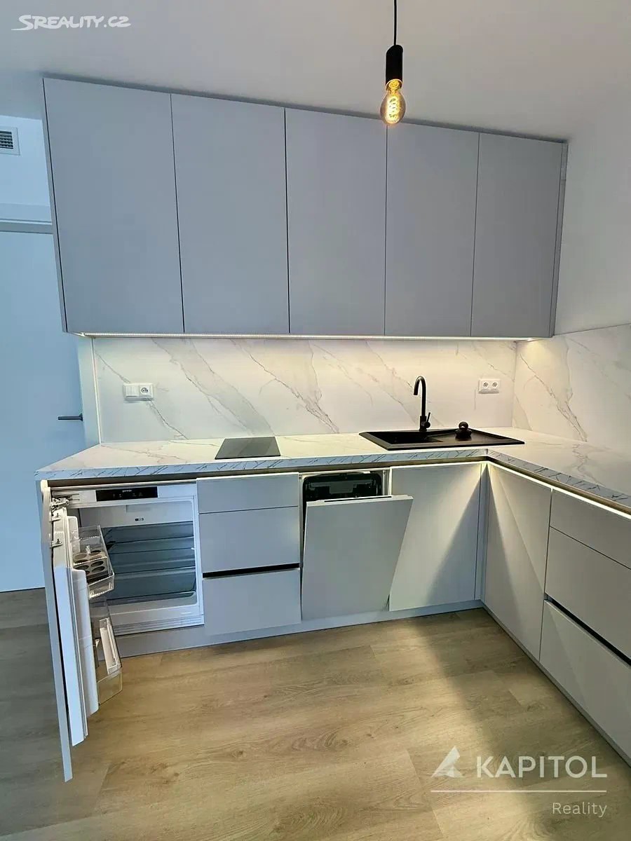 Ve 4. patře novostavby rezidence Diorit v Brně-Komíně čeká na nové nájemce útulný a prosluněný zařízený byt 1+kk, který nabízí moderní bydlení obklopené zelení. Budova stojí mezi vzrostlými stromy, pod domem protéká řeka Svratka a z prostorné lodžie se otevírá výhled do přírody. Dispozice bytu: - předsíň 4 m² s vestavěnou skříní a úložným prostorem - koupelna s toaletou 4 m², vybavená moderními obklady a sprchovým koutem - obytný prostor s kuchyní a jídelní částí 22,5 m² - s kuchyňskou linkou na míru, myčkou a lednicí, doplněný nábytkem a rozkládací sedací soupravou vhodnou i pro každodenní spaní - lodžie 6 m² s proskleným zábradlím, ideální pro ranní kávu nebo večerní odpočinek - sklep 2 m² - parkovací stání v garáži Byt je laděn v elegantním a čistém designu, vytvářející útulnou atmosféru, která působí harmonicky a nadčasově. Součástí bytu je moderní systém rekuperace, který zajišťuje stálý přísun čerstvého vzduchu a zároveň šetří energie. Byt řízen systémem inteligentní domácnosti zn. Loxone. Pohodlný život zajistí komplexní občanská vybavenost v okolí. Přímo před domem se nachází zastávka HMD, odkud se rychle dostanete do centra. V bezprostřední blízkosti domu se nachází cyklostezka a stezky pro pěší kolem řeky Svratky nebo v oboře Holedná. Nedaleko se rozprostírá Brněnská přehrada, ZOO, sportovní letiště a další. Lokalita tak nabízí ideální kombinaci městského bydlení a klidu přírody. Další výhody: parkovací místo přímo v domě přístup na čip výtah kolárna pravidelný úklid společných prostor a profesionální péče o okolní zeleň Energetická náročnost budovy ve třídě A. Rezidence Diorit přináší moderní bydlení s ekologickým vytápěním, rekuperací i chytrými technologiemi - vše s důrazem na komfort a nízké náklady. Byt je volný k okamžitému nastěhování.
