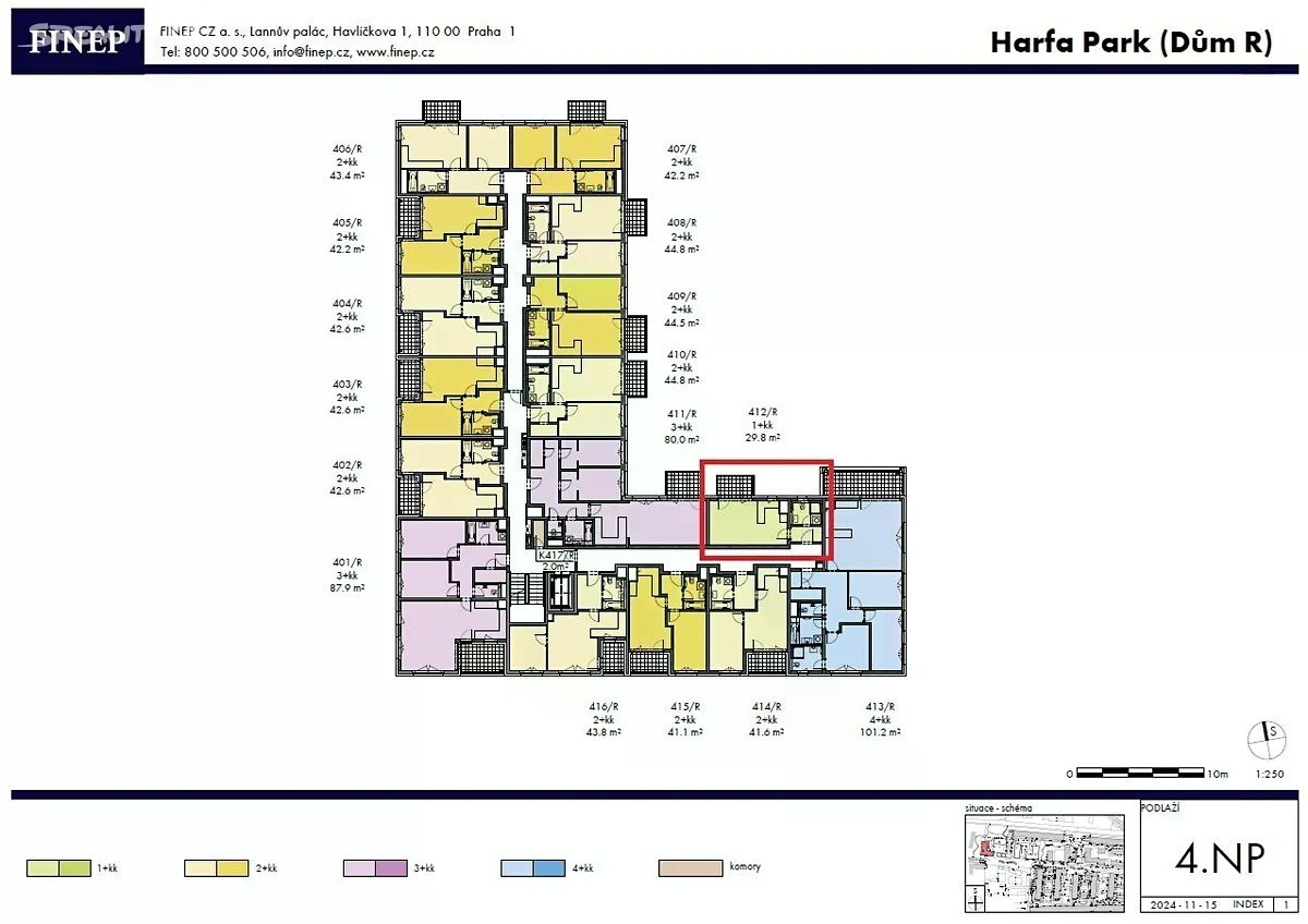 Nabízíme k prodeji nový byt 1+kk v osobním vlastnictví v projektu Harfa Park XI (dům R) úspěšného developera FINEP. Byt 1+kk o velikosti 29,8 m2 + balkon 4,6 m2 se nachází ve 4. nadzemním podlaží (z celkových sedmi) s orientací na sever. Dispozice bytu: obývací pokoj s kuchyňským koutem, koupelna s WC, chodba, balkon. Prodej probíhá formou postoupení Smlouvy o smlouvě budoucí s developerem FINEP. Nyní zaplatíte za postoupení rezervace 1 910 818 Kč, zbytek po kolaudaci. Celková cena bytu je 5 990 000 Kč. Garážové stání, komora jsou možné za příplatek. Skvělá občanská vybavenost - v blízkosti OC Galerie Harfa, supermarket Albert, Lidl, park, přírodní park Rokytka, dětská hřiště, Park Zahrádky, fitness louka Rokytka, cyklostezka, školy. Tramvajová zastávka Kabešova (linky tramvaje 8 a 25) v docházkové vzdálenosti. Vlaková stanice Praha - Libeň (za 6 minut na Masarykovo nádraží, za 7 minut na hlavním nádraží).