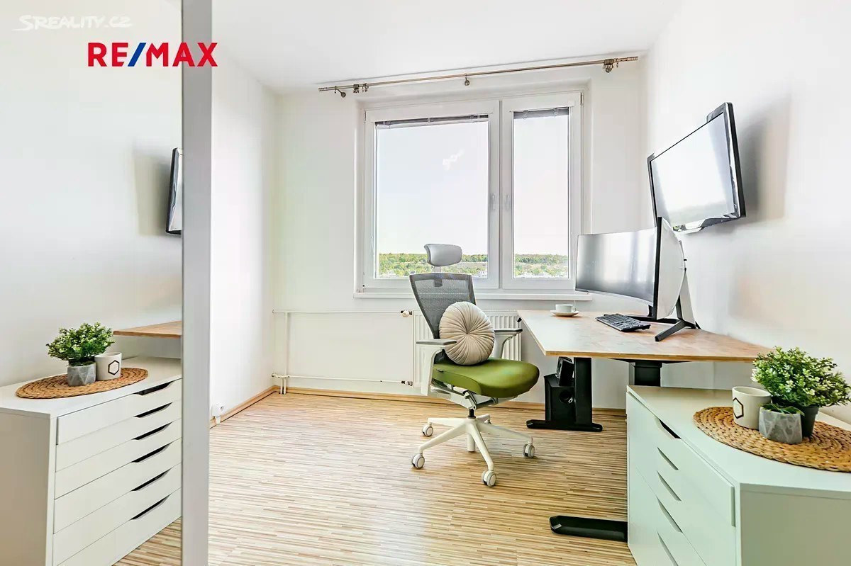 Nabízíme vám prostorný mezonetový byt, který je dispozičně upravený z původních 4+1 na 4+kk a nachází se v 8. a 9. podlaží panelového domu s výtahem v atraktivní lokalitě pražských Stodůlek. Jeho plocha je 103,19 m2 a náleží k němu lodžie o výměře 6,96 m2 a sklep o výměře 3,70 m2. Celková podlahová plocha tedy činí 113,85 m2. Plně zasklená lodžie s krásnými výhledy vám poskytne ideální místo pro posezení a odpočinek. V každém patře je komora, která vám poslouží jako dostatečný úložný prostor, celková výměra obou komor je 10,26 m2. Interiér je vybaven kuchyňskou linkou s ostrůvkem a se spotřebiči, jako je mikrovlnná trouba, myčka, indukční varná deska, elektrická trouba a digestoř. Koupelna je s vanou a toaleta samostatná. Bytové jádro je po rekonstrukci zděné. V obytných místnostech jsou plovoucí podlahy, zatímco v koupelně, na toaletě, spodní chodbě a na schodišti je položena keramická dlažba. Plastová okna mají výborné tepelné a izolační vlastnosti a k dispozici je samostatná klimatizační jednotka, kterou využijete jak v horkých letních dnech, tak i k případnému vytápění. Dům prošel revitalizací - nový výtah a zateplení fasády a střechy. Obyvatelé domu mohou využívat společnou kočárkárnu a dvě sušárny. V této lokalitě najdete veškerou občanskou vybavenost. V docházkové vzdálenosti je škola, školka, poliklinika Lípa, restaurace, úřady a nakoupit si zajdete do Lidlu, Globusu, Albertu, nebo Kauflandu. Nedaleko se také nachází obchodní centrum Nové Butovice, které poskytuje široké možnosti nákupu a služeb. Dopravní dostupnost je zde výborná a pohodlně se dopravíte do centra i okolí, na autobusovou zastávku je to pouhé 3 minuty chůze, na metro 5 minut. Parkování je možné před domem, případně můžete využít nový parkovací dům, kam dojdete za pár minut a kde je možno zajistit si pronájem parkovacího místa. V okolí je krásná příroda, která vás bude lákat k příjemným procházkám do Prokopského údolí, do parku Vidoule, nebo do centrálního parku Stodůlky. Pokud vás naše nabídka zaujala, neváhejte se ozvat a rádi vám poskytneme další informace.