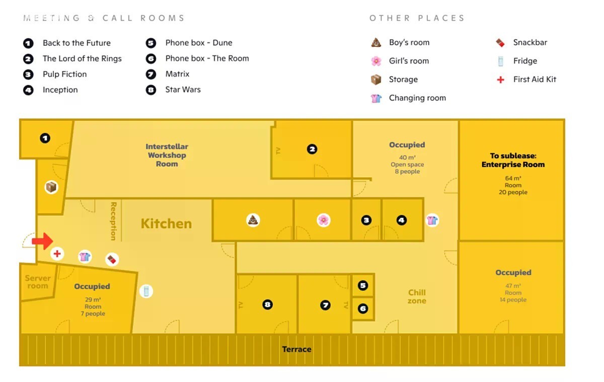 Enterprise Room - Plně vybavená kancelář pro 15-20 osob! Prostorná a plně zařízená Enterprise Room o velikosti 64 m² je ideální pro týmy o 15- 20 lidech. Celková plocha kanceláří tvoří cca 450m2. Nachází se v moderních kancelářích Appliftingu a v rámci podnájmu jsou k dispozici výškově nastavitelné stoly, ergonomické židle HermanMiller SAYL a přístup ke sdíleným prostorám - zasedačkám (pro 3-10 osob), telefonním budkám, relax zóně s projektorem a prostorné terase s výhledem na památník Vítkov. Nájemci mají 24/7 přístup pomocí karty, vysokorychlostní internet, každodenní úklid a plně vybavenou kuchyni s prémiovou kávou. K dispozici je také uzamykatelná kolárna s nářadím a sprchami. Ideální řešení pro týmy, které hledají flexibilní a reprezentativní pracovní prostředí. Jaké prostory jsou k dispozici Soukromá místnost pro 15-20 osob Zasedací místnosti a telefonní budky 5 zasedacích místností Kapacita 3-10 osob Cena 7200 Kč + DPH / měsíc / pracovní místo. V každé místnosti je možné pronajmout i méně míst, ale nájemné je potřeba uhradit za celou kapacitu kanceláře. V kanceláři se může střídat více lidí, v jeden okamžik ale nesmí být překročena její maximální kapacita, aby prostory (např. zasedačka) nebyly přetížené. Nájemní podmínky Minimální doba pronájmu: 6 měsíců Parking Parking lze sjednat v rámci budovy River Garden (prosím řešit přímo s Moovin), případně lze parkovat na modrých zónách v okolí Soukromí Prostor je pouze pro vás Přístup 24/7 O firmě, která kanceláře nabízí Applifting je české softwarová společnost založená v roce 2014, která se specializuje na vývoj digitálních produktů na klíč, AI poradenství a tvorbu softwarových řešení na míru pro startupy i velké korporace. Tým čítající přes 160 vývojářů má za sebou více než 300 realizovaných projektů po celém světě, zejména v oblastech fintechu, zdravotnictví a vzdělávání. Společnost je známá svou otevřenou „teal“ kulturou, která staví na transparentnosti mezd, samosprávě a etickém přístupu k výběru projektů. S centrálou v Praze a pobočkou v Londýně Applifting nadále roste i na mezinárodní úrovni a klade důraz především na inovace, flexibilitu a smysluplný přístup k vývoji.
