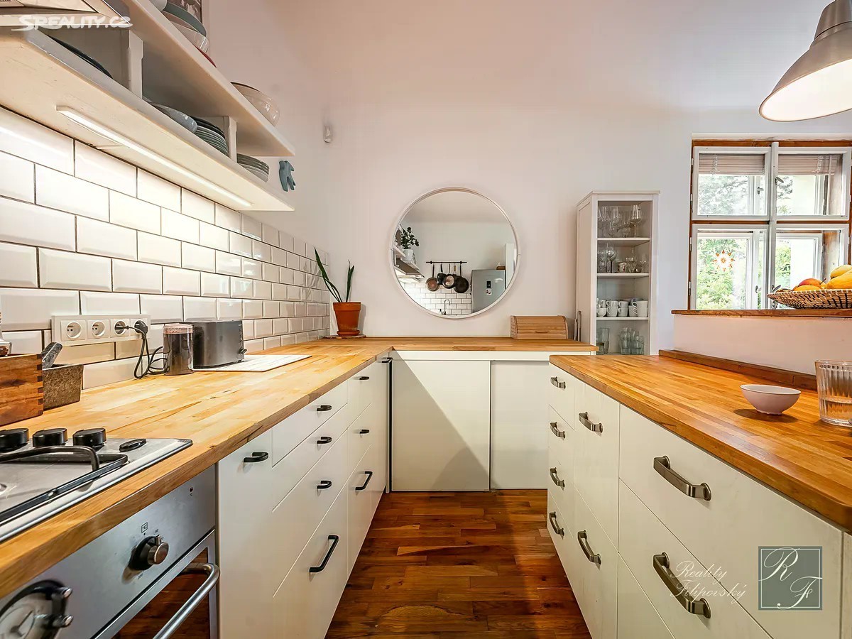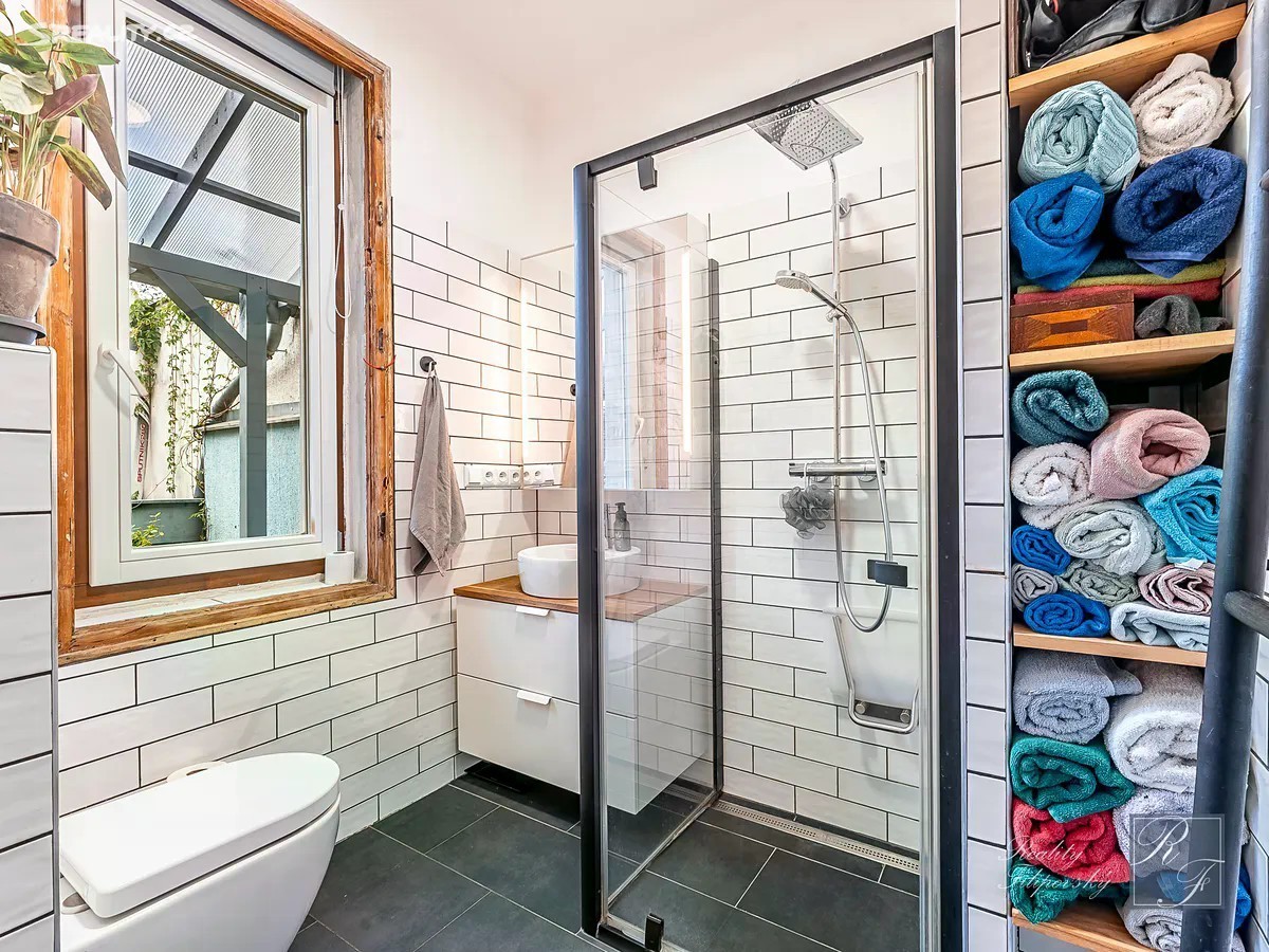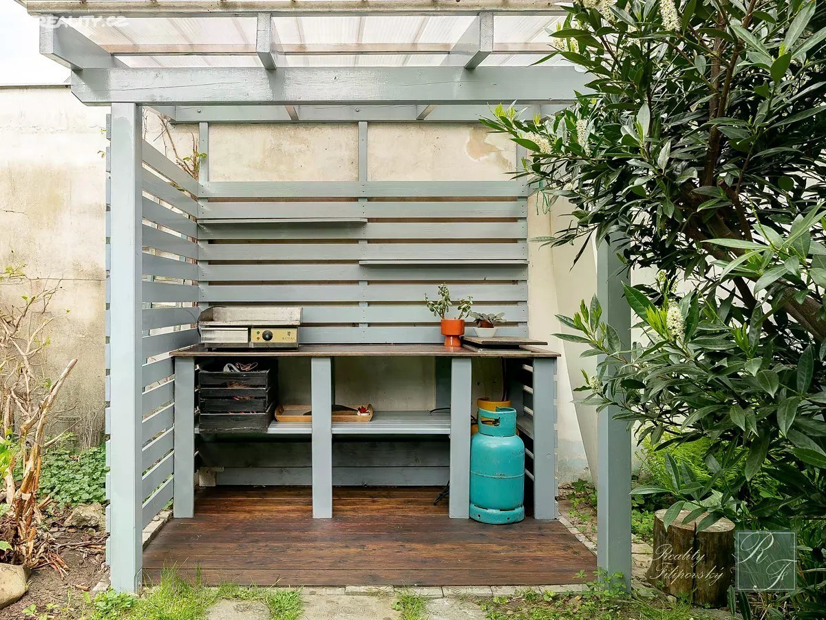 Dovoluji si Vám nabídnout prostorný řadový rodinný dům 4+kk v klidné ulici v srdci Kobylis se vzrostlou zahradou, terasou a výjimečnou atmosférou. Jedná se o mimořádné bydlení se světlým interiérem, vysokými stropy, sklepem, půdou, velkou šatnou, podlahovým topením v přízemí, nízkými provozními náklady a s dalším rozvojovým potenciálem. Dům prošel kompletní rekonstrukcí před 19 lety a od té doby je pravidelně udržován. Má zcela novou zateplenou fasádu, čerstvě zrekonstruovaná jsou okna, parkety v obývacím pokoji, kuchyň i koupelna. Vytápění zajišťuje plynový kotel. Přitápět lze i krbovými kamny. Komín byl před 2 lety vyvložkován nerezovou vložkou. Při rekonstrukcích byl kladen důraz na zachování původních architektonických prvků a přírodních materiálů, včetně špaletových oken se zafrézovaným těsněním a izolačním dvojsklem v exteriérové části, či dveří s dřevěnými rámy. Velmi se povedlo osazení velkých dřevěných oken v podkroví. To vše, společně se spoustou dalších detailů, dodává celému interiéru velmi pozitivní osobitý charakter. V přízemí se nachází chodba s přístupem do suterénu se sklepem, spíž a především vzdušný a prosvětlený obývací prostor, velmi přirozeně propojený s terasou i zahradou. Tato část je doslova klenotem celého domu. Dále tu najdeme koupelnu se sprchovým koutem a toaletou. K dispozici je i další samostatné WC v mezaninu. V patře jsou tři ložnice, z nichž každá nabízí dostatek místa pro manželskou postel, šatní skříň a další nábytek. K dispozici je také velká samostatná šatna, která je připravena na možnou přeměnu v další koupelnu. Na zahradě je zastřešená terasa, zahradní domek a venkovní kuchyň. Nabízí se i možnost rozšíření směrem do zahrady (např. zimní zahrada). Zcela komfortní parkování je přímo před domem. Dům se nachází v klidné rezidenční části Prahy 8 - Kobylisy. Lokalita je ideální pro rodinný život - tichá ulice, kde si hrají děti, les a tenisové kurty hned nad domem, park s koupalištěm a kluzištěm přes ulici, velké beachvolejbalové centrum nedaleko. Panuje zde takřka vesnický klid, ale všechny výhody městského života zůstávají. Skvělá dostupnost MHD - za 3 minuty dojdete na zastávku tramvaje, 7 minut pěšky na metro Kobylisy a 10 minut na metro Ládví. V okolí je i několik autobusových zastávek. V bezprostředním okolí naleznete veškerou občanskou vybavenost - obchody, poštu, lékárny, restaurace, útulné kavárny, mateřské i základní školy, dětská hřiště, polikliniku i další služby. Průkaz energetické náročnosti připravujeme, proto je dočasně uvedena třída G Budu se těšit na setkání s Vámi