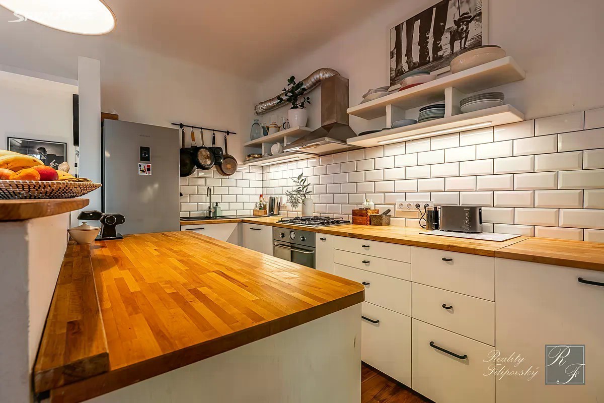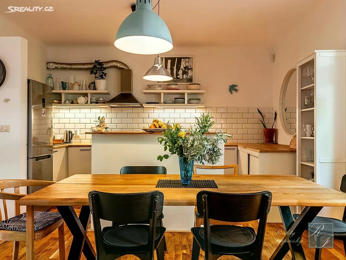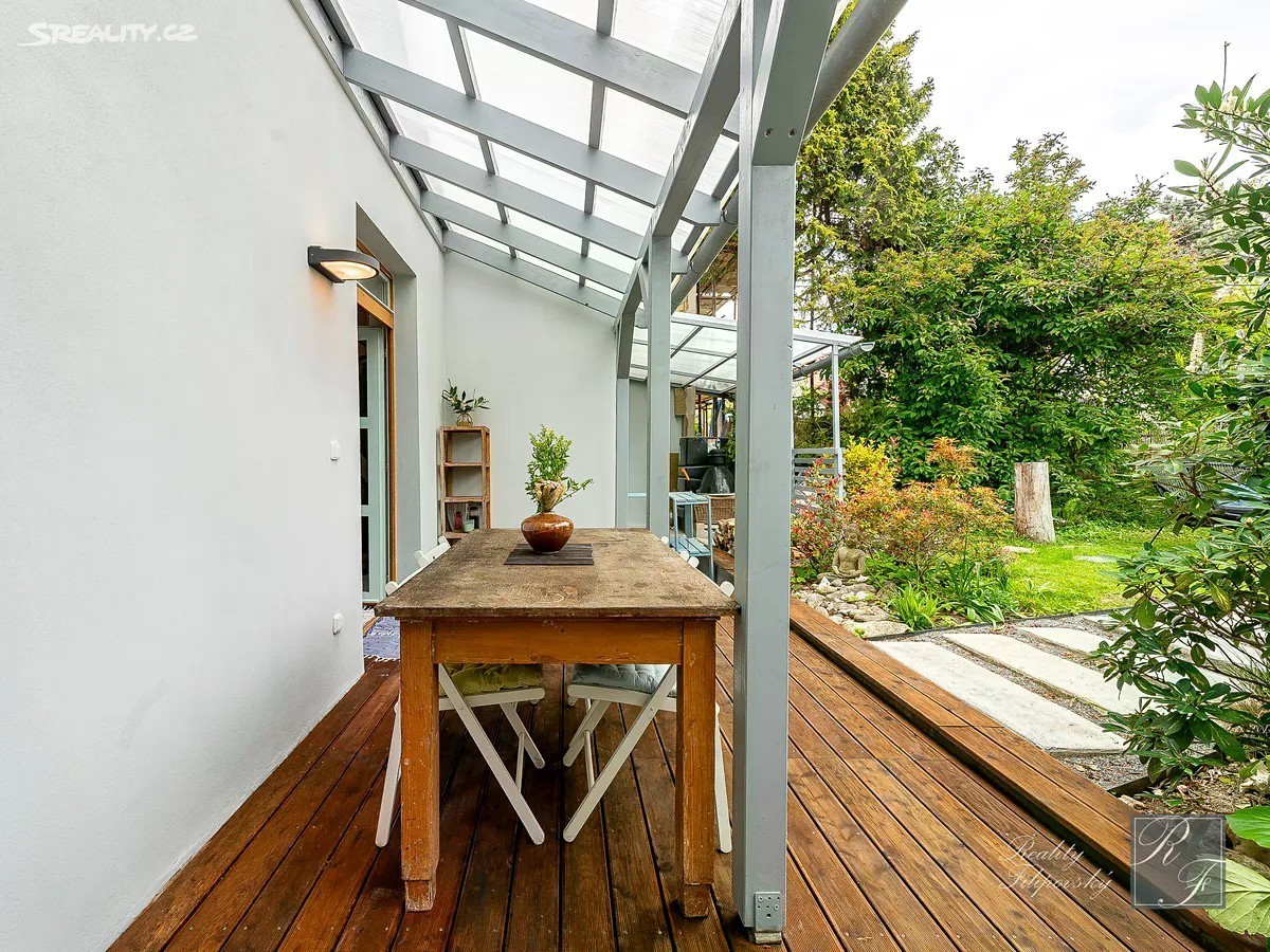 Dovoluji si Vám nabídnout prostorný řadový rodinný dům 4+kk v klidné ulici v srdci Kobylis se vzrostlou zahradou, terasou a výjimečnou atmosférou. Jedná se o mimořádné bydlení se světlým interiérem, vysokými stropy, sklepem, půdou, velkou šatnou, podlahovým topením v přízemí, nízkými provozními náklady a s dalším rozvojovým potenciálem. Dům prošel kompletní rekonstrukcí před 19 lety a od té doby je pravidelně udržován. Má zcela novou zateplenou fasádu, čerstvě zrekonstruovaná jsou okna, parkety v obývacím pokoji, kuchyň i koupelna. Vytápění zajišťuje plynový kotel. Přitápět lze i krbovými kamny. Komín byl před 2 lety vyvložkován nerezovou vložkou. Při rekonstrukcích byl kladen důraz na zachování původních architektonických prvků a přírodních materiálů, včetně špaletových oken se zafrézovaným těsněním a izolačním dvojsklem v exteriérové části, či dveří s dřevěnými rámy. Velmi se povedlo osazení velkých dřevěných oken v podkroví. To vše, společně se spoustou dalších detailů, dodává celému interiéru velmi pozitivní osobitý charakter. V přízemí se nachází chodba s přístupem do suterénu se sklepem, spíž a především vzdušný a prosvětlený obývací prostor, velmi přirozeně propojený s terasou i zahradou. Tato část je doslova klenotem celého domu. Dále tu najdeme koupelnu se sprchovým koutem a toaletou. K dispozici je i další samostatné WC v mezaninu. V patře jsou tři ložnice, z nichž každá nabízí dostatek místa pro manželskou postel, šatní skříň a další nábytek. K dispozici je také velká samostatná šatna, která je připravena na možnou přeměnu v další koupelnu. Na zahradě je zastřešená terasa, zahradní domek a venkovní kuchyň. Nabízí se i možnost rozšíření směrem do zahrady (např. zimní zahrada). Zcela komfortní parkování je přímo před domem. Dům se nachází v klidné rezidenční části Prahy 8 - Kobylisy. Lokalita je ideální pro rodinný život - tichá ulice, kde si hrají děti, les a tenisové kurty hned nad domem, park s koupalištěm a kluzištěm přes ulici, velké beachvolejbalové centrum nedaleko. Panuje zde takřka vesnický klid, ale všechny výhody městského života zůstávají. Skvělá dostupnost MHD - za 3 minuty dojdete na zastávku tramvaje, 7 minut pěšky na metro Kobylisy a 10 minut na metro Ládví. V okolí je i několik autobusových zastávek. V bezprostředním okolí naleznete veškerou občanskou vybavenost - obchody, poštu, lékárny, restaurace, útulné kavárny, mateřské i základní školy, dětská hřiště, polikliniku i další služby. Průkaz energetické náročnosti připravujeme, proto je dočasně uvedena třída G Budu se těšit na setkání s Vámi