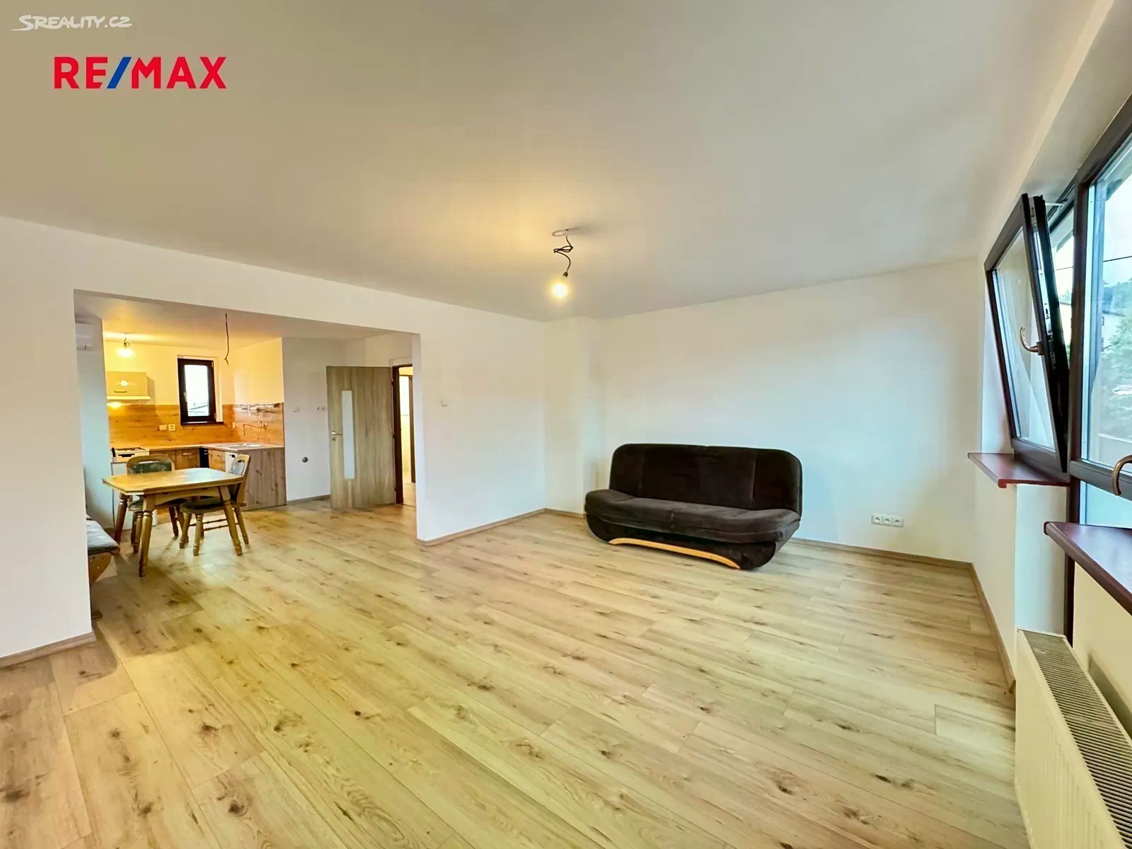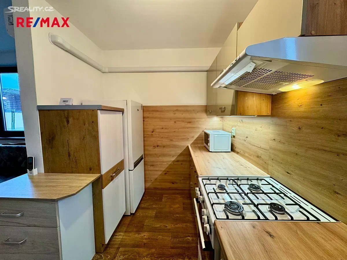 Nabízíme k pronájmu prostorný byt 3+kk o velikosti 101 m², který se nachází v prvním patře rodinného domu rozděleného na dvě bytové jednotky v klidné ulici Jabloňová v Hořovicích. Byt prošel kompletní rekonstrukcí a je připraven k nastěhování. Po vstupu do bytu se ocitnete v předsíni, odkud vedou schody do hlavní obytné části. Z chodby je přístup do všech místností. Dominantou bytu je světlý a vzdušný obývací pokoj s výstupem na balkón, který plynule navazuje na jídelnu s moderně vybaveným kuchyňským koutem, ve kterém nechybí lednice, myčka, trouba, plynový sporák ani mikrovlnná trouba. Byt disponuje dvěma ložnicemi, větší ložnice nabízí dostatek prostoru a je kompletně zařízená, přičemž z ní je rovněž vstup na balkón, druhá, menší ložnice, je také plně vybavená a má přístup na prostornou terasu. Koupelna je navržena bezbariérově a je vybavena velkým sprchovým koutem a toaletou. Součástí pronájmu je také možnost využívat zahradu, na které se nachází zahradní domek vhodný k uskladnění věcí. Byt se nachází v tiché a velmi klidné ulici, která nabízí příjemné rodinné bydlení. V docházkové vzdálenosti je veškerá občanská vybavenost - obchody, restaurace, školy, školky i zdravotní péče. Díky své poloze má byt zároveň výbornou dostupnost do centra Hořovic a rychlé napojení na dálnici D5 směr Praha a Plzeň. Nájemné: 20 000,- Kč Poplatky: 4 000,- Kč Vratná kauce: 40 000,- Kč Provize RK: 20 000,- Kč + DPH
