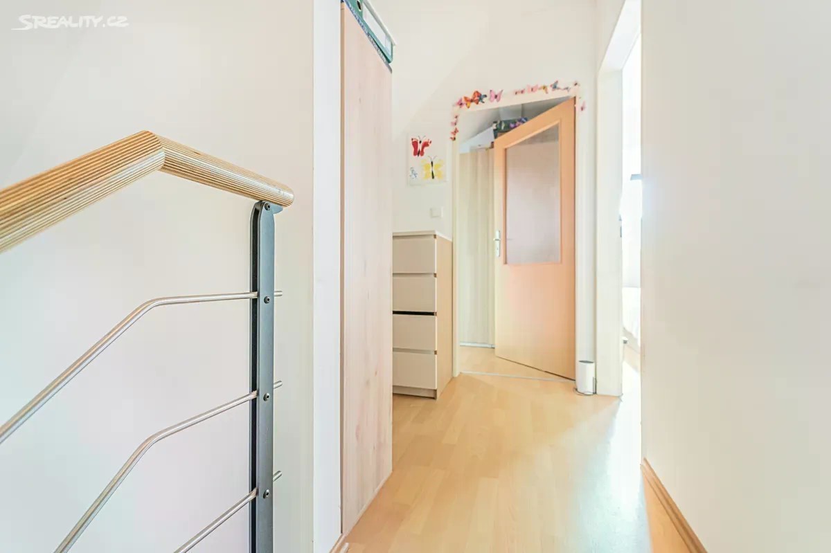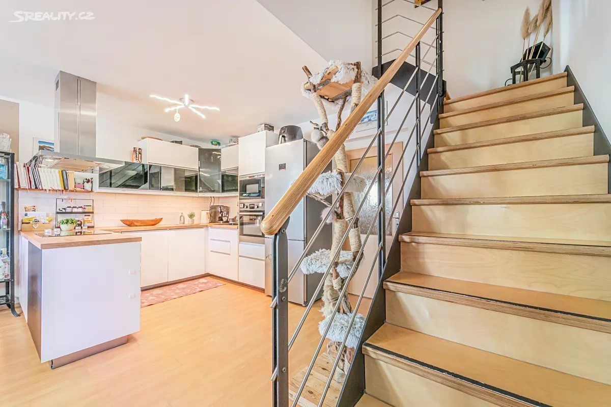 Zájemcům o hezké rodinné bydlení či zajímavou investici nabízíme pěkný mezonetový byt s balkonem v Jinočanech na západním okraji Prahy. Byt se nachází ve 3. a 4. podlaží bytového domu z roku 2014. Praktická dispozice zahrnuje vstupní předsíň, ze které je přístup na samostatné WC, do koupelny a do obývacího pokoje s kuchyňským koutem. Odtud je také vstup na balkon. Po schodišti se dostanete do patra, kde jsou k dispozici další dvě ložnice. K maximálnímu pohodlí přispívá klimatizační jednotka umístěná v jednom z horních pokojů, která v horkých letních dnech zajistí komfortní pocit, a není tak třeba bát se přílišného tepla. Kromě balkonu se nový majitel může těšit na sklepní kóji v suterénu budovy a zejména na dvě parkovací stání. Hledání místa pro vaše auta se obejde bez jakýchkoliv obtíží. Byt je celkově ve výborném stavu. Prodávající se o něj průběžně a pečlivě starají, a nový majitel tak může bydlet bez dalších investic. Bytový dům je ve výborné kondici a bez dluhů. Lokalita přináší plnou občanskou vybavenost. V Jinočanech najdete mateřskou školku i devítiletou základní školu, několik restaurací, kaváren, obchodů, lékárnu i spoustu zábavy pro aktivně žijící rodiny. Koneckonců, přímo kolem domu máte hřiště na fotbal, basketbal i pro nejmenší děti. Autobusem se do deseti minut dostanete na nejbližší metro a odtud kamkoliv po Praze potřebujete. V případě zájmu o více informací a termín prohlídky nás neváhejte kontaktovat. Těšíme se na vás.
