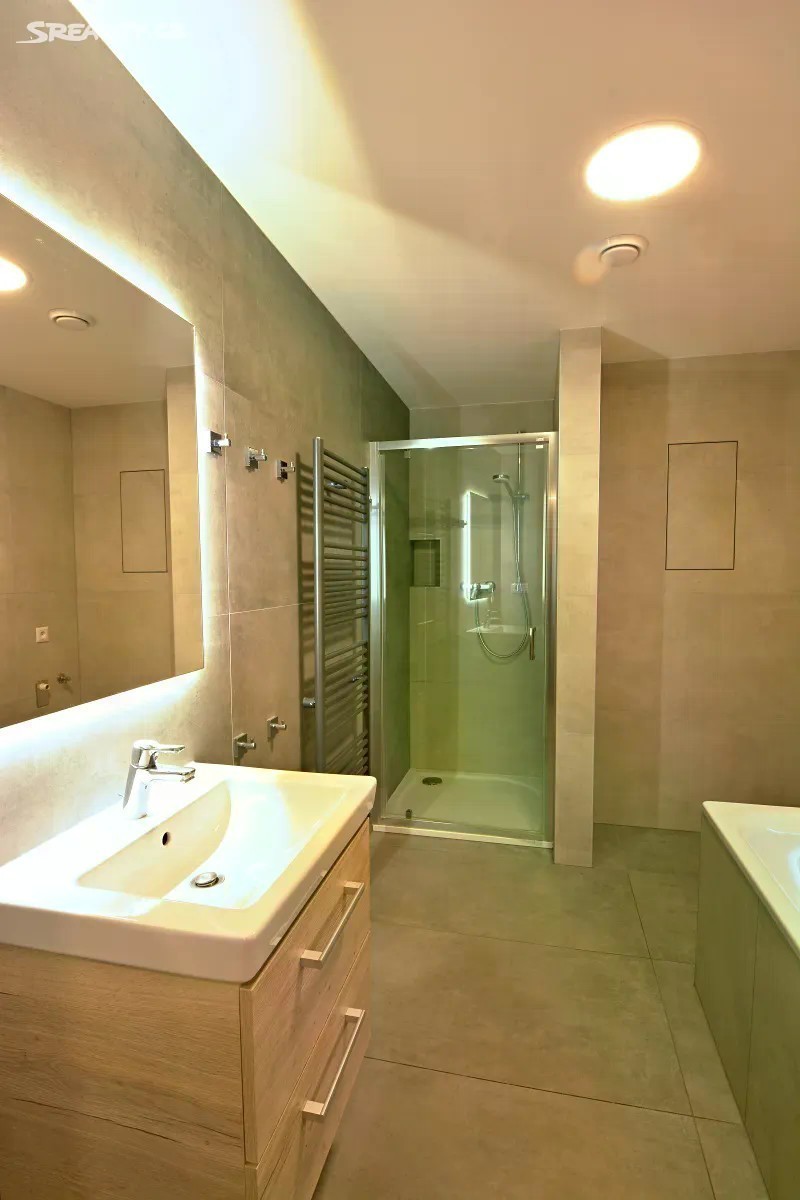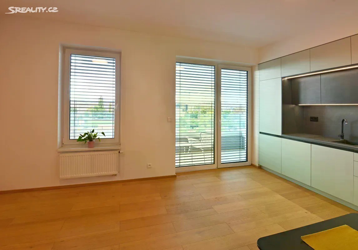 Pronájem nového ateliéru 3+kk v novostavbě domu Rezidence Koperník včetně podzemního parkovacího stání. Ateliér se nachází v 6. NP. Celková plocha ateliéru je 73,4 m2 a terasa s krásným výhledem na hlavní brněnské dominanty a až na Pálavu a výměrou 17 m2. Ateliér sestává z prostorné předsíně, ze které je vstup do všech pokojů. Obývací pokoj s kk má výměru 23,1 m2, Pokoje mají výměry 14,4 a 11,5 m2. Ze všech pokojů jsou výstupy na terasu. Z předsíně je dále vstup na samostatné WC a do koupelny, ve které je kromě sprchového koutu i vana, a místo na připojení pračky a sušičky. Dům poskytuje komfortní bydlení - en. třída A, v oknech jsou trojskla, všude jsou předokenní hliníkové žaluzie, samostatná rekuperační jednotka pouze pro ateliér zajišťující přísun čistého vzduchu bez nutnosti větrání. Vysoký standard výbavy - dřevěné podlahy, sanita Villeroy Boch. Součástí nájmu je i samostatné vyhrazené parkovací místo v uzavřené podzemní garáži přímo pod domem s přímým nástupem do výtahu. V domě jsou dva výtahy, velká kolárna a dětské soukromé hřiště za domem, přístupné pouze vlastníkům jednotek. V dosahu MHD s plnou občanskou vybaveností. Přímo v domě je kadeřnictví, kosmetika, vinotéka. - rekuperační jednotka - krásný výhled - velká terasa přístupná ze všech místností - garážové stání přímo v domě v ceně nájmu Zálohy na služby pro 2 osoby jsou 4100,- Kč/ měsíc. Ateliér je volný k okamžitému nastěhování. Klíče v RK.