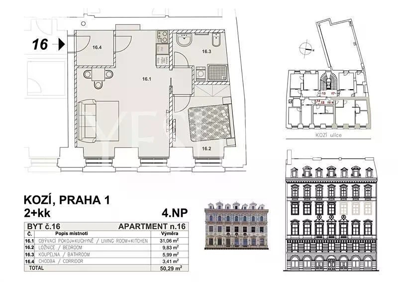 Luxusní, nově zrekonstruovaný, příjemně tichý, nezařízený kancelářský prostor s dispozicí 2+kk, 51,14 m2, 2. patro s novým moderním výtahem nově zrekonstruovaného novorenesančního domu v pěším dosahu prestižní Pařížské ulice, Staroměstského náměstí a nábřeží Vltavy, Kozí, Praha 1 - Staré Město. Prostor nabízí vstupní halu, dvě místnosti s plně vybaveným kuchyňským koutem (digestoř, sklokeramická varná deska, elektrická pečící trouba, myčka, lednice, pračka), koupelnu se sprchovým koutem a toaletou. Kvalitní parketové podlahy v kombinaci s dlažbou. Centrální plynové vytápění a ohřev vody, bezpečností dveře, intercom. Internet a TV od CETIN a Internet Praha Josefov. Skvělá adresa pro Váš byznys na prestižním, příjemném a klidném místě s veškerou občanskou vybaveností u metra Staroměstská, linie A či metra Náměstí Republiky, linie B. Parking v ul. Bílkova za příplatek. Poplatky 3 500 Kč/1 osoba, 5 600 Kč/2 osoby (zúčtovatelné 1x ročně, dálkové teplo a teplá voda z domovní kotelny, odpadky, úklid spol. prostor, elektřina výtah + spol. prostory) + elektřina se převádí na nájemce. Vratná kauce 2 měsíční nájmy. Možnost přihlášení sídla společnosti. Kolaudováno jako byt. Volný od 1.11.2025.