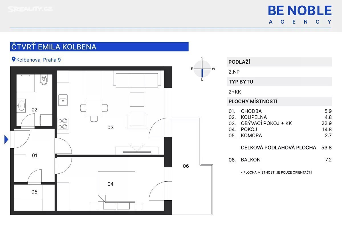 Dobrý den, nabízím k pronájmu zcela nový moderní a mimořádně úsporný byt 2+kk s prostorným balkonem, který se nachází v novostavbě od renomovaného developera Skanska, jen pár kroků od stanice metra Kolbenova (trasa B), v oblíbené lokalitě Praha 9 - Vysočany. Byt má velmi praktickou dispozici a díky orientaci na západ a velkým oknům je světlý a vzdušný. Každý detail byl navržen s důrazem na komfort, praktičnost a moderní styl bydlení. Byt je kompletně nově zařízen a plně vybaven nábytkem. Dispozice bytu: - obývací pokoj s plně vybavenou kuchyňskou linkou (indukční deska, vestavná trouba, myčka, lednice), - samostatná ložnice, - koupelna se sprchovým koutem a WC, - vstupní chodba, - komora využitelná jako šatna či úložný prostor. V bytě jsou dřevěné podlahy, rekuperace, trojskla, venkovní žaluzie a systém chytré domácnosti s dálkovým ovládáním topení, světel a žaluzií. Dům je energeticky velmi úsporný (PENB třída A). Využívá fotovoltaické panely, fototermický systém pro ohřev vody a akumulaci dešťové vody pro zavlažování - náklady na bydlení jsou proto velmi nízké. K dispozici jsou také společné prostory - kolárna, místnost pro mytí kol, kočárků i domácích mazlíčků. Lokalita nabízí kompletní občanskou vybavenost: obchody, kavárny, restaurace, sportoviště i parky v pěší vzdálenosti. V přízemí domu jsou provozovny služeb a za domem upravený vnitroblok se zelení. Byt je zcela nový, stejně jako vybavení a nábytek. Možnost okamžitého nastěhování - budete prvním nájemcem. Nájemné: 28.000 Kč/měsíc Zálohy na služby (voda, vytápění) : 2.800 Kč/měsíc Elektřina: dle skutečné spotřeby (vyúčtování zpětně měsíčně) Možnost pronájmu parkovacího stání: 1.500 Kč/měsíc Pro více informací nebo sjednání prohlídky mě prosím neváhejte kontaktovat. S pozdravem Ing. Elena Gostěva Be Noble Agency