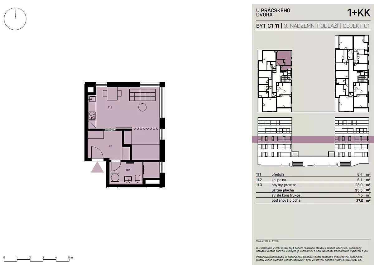 Nabízím k prodeji nový byt 2+кк o velikosti 39 m², který se nachází ve 3. NP nového Developerského projektu v oblíbené lokalitě Zahradního města, v klidné části Prahy 4 - Chodov, s výbornou dopravní dostupností a kompletní infrastrukturou. K bytu naleží sklepni kóji. Bytový dům je vybaven vyšším standardem, instalována ventilace s rekuperací tepla, která zajišťuje stálý přísun čerstvého vzduchu v bytě a významně šetří náklady na vytápění v zimním období. Byty jsou prosvětleny velkými okny, která jsou zasklena tepelně izolačním trojsklem. Ke stínění oken budou instalovány moderní venkovní rolety, tzv. zip screeny. Vnitřní dveře dosahují nadstandardní výšky 210 cm, na podlahách v obytných místnostech je na výběr mezi vinylem a plovoucí podlahou, v koupelnách si ve většině bytů můžete vybrat mezi vanou nebo prostorným sprchovým koutem, vždy s atraktivní velkoformátovou dlažbou a obklady. Pro zlepšení komfortu bydlení lze za příplatek doplnit napojení na klimatizaci, která bude určitě vítána ve stále delších vlnách veder během léta. Autobusem se během krátké doby dostanete na případně na tramvajové linky vedené v ulici Švehlova nebo linku metra A Skalka, případně na linku metra C Kačerov nebo Opatov. V docházkové vzdálenosti, případně jednu zastávku autobusem můžete využít množství obchodů a dalších služeb v obchodním centru VIVO Hostivař nebo v obchodním centru Cíl. Kolaudace domu bude v roce 2026.