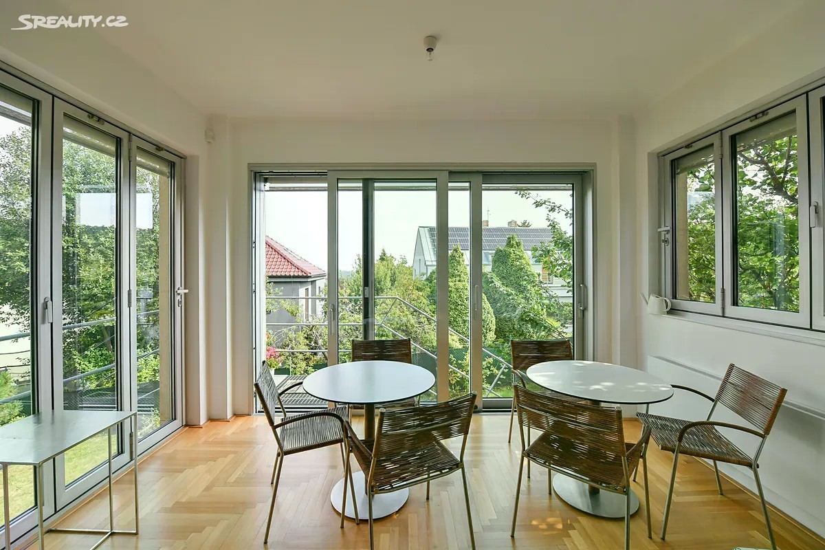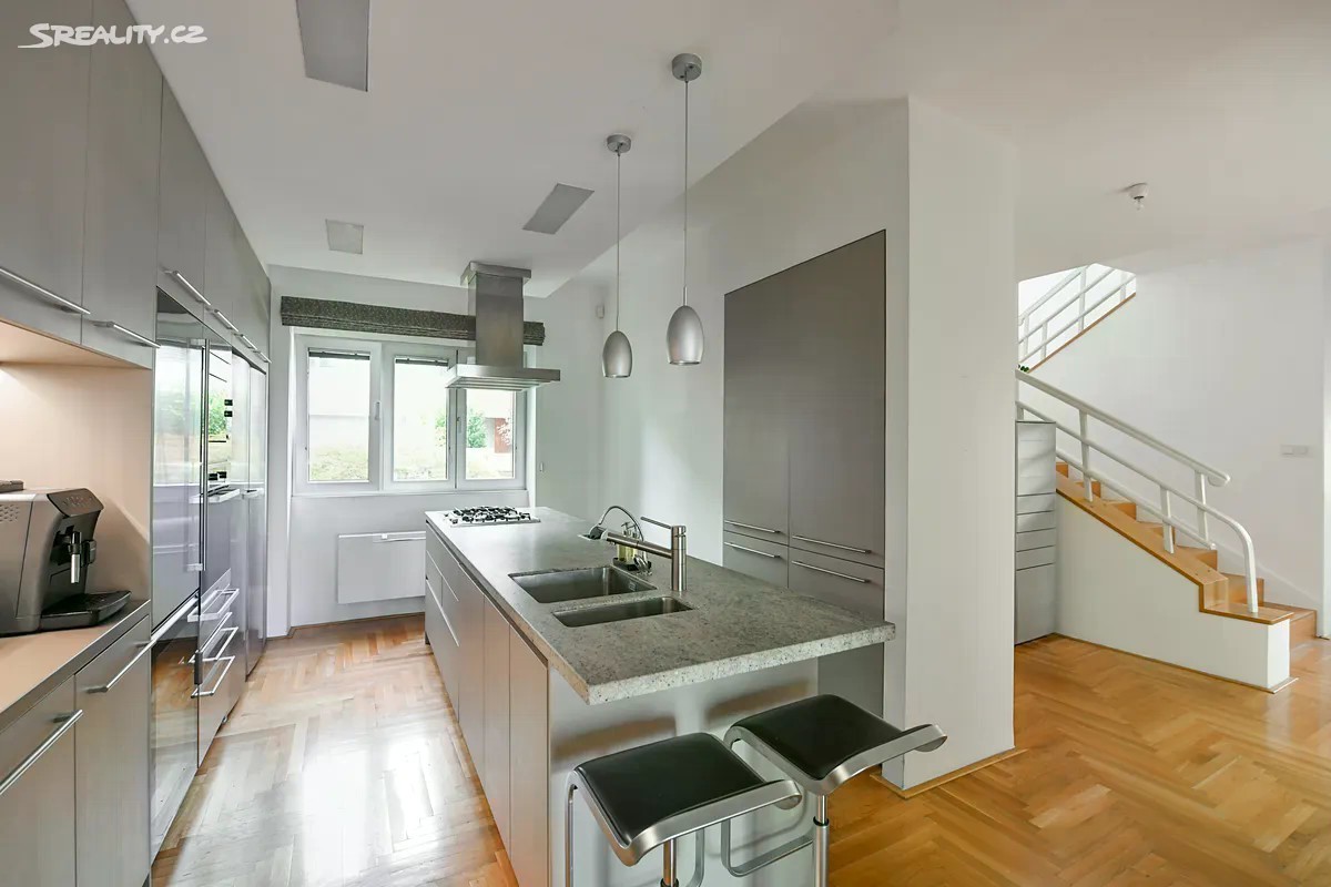 Ve výhradním zastoupení nabízíme k prodeji výjimečnou prvorepublikovou vilu 7+kk z roku 1938, situovanou v jedné z nejoblíbenějších rezidenčních částí Prahy 6 - ve Vokovicích, v bezprostřední blízkosti přírodního parku Divoká i Tichá Šárka. Tato solitérní vila, původně postavená pro manažera kladenské Poldiny huti, prošla v letech 2013-2014 kompletní, citlivou rekonstrukcí pod vedením renomovaného studia architekta Roháče a dnes nabízí moderní komfort při zachování původní atmosféry a historických prvků. Podrobnější popis domu 1. podzemní podlaží (1PP) - 83,11 m² V tomto podlaží se nachází zázemí domu i plnohodnotné obytné prostory: prádelna, sprchový kout s toaletou, sklad, chodba se šatnou, pokoj s francouzskými dveřmi a přímým vstupem na zahradu. Dále je zde prostorná místnost, nyní sloužící jako další sklad s garážovými vraty do zahrady, kde snadnou výměnou vrat za okno či francouzské dveře může vzniknout další krásný pokoj s přímým vstupem na zahradu. Přístup z nově přistavěné garáže (pro 2 vozy, 34 m²) vede rovněž do tohoto podlaží, což zajišťuje komfortní propojení parkování s domem i zahradou. 1. nadzemní podlaží (1NP) - hlavní společenské patro - 88,32 m² Ze vstupního zádveří navazuje na několik schodů, které vedou do hlavní obytné části domu. Tu tvoří prostorný obývací pokoj s krbem, propojený nábytkovou stěnou s jídelnou a prosklenou verandou se vstupem na zahradu po venkovních schodech. Na jídelnu navazuje kuchyně vybavená kvalitními spotřebiči Miele. Patro doplňuje reprezentativní hala se schodištěm a samostatná koupelna. 2. nadzemní podlaží (2NP) - soukromá zóna - 66,09 m² Horní patro je řešeno jako klidová část domu. Jsou zde tři ložnice, z nichž jedna má přímý vstup na terasu o velikosti 12,42 m² s krásným výhledem. Dále se zde nachází prostorná koupelna a šatna. 3. nadzemní podlaží (3NP) - podkroví - cca 40 m² Půda je dokončená a připravena k plnohodnotnému užívání - může sloužit jako další ložnice, pracovna či ateliér. Technické a designové standardy - Hliníková okna Schüco s bezpečnostními prvky, stínicí žaluzie a magnetické spínače - Optické vlákno - vysokorychlostní internet - Bezpečnostní systém (EZS, kouřová čidla) - Podlahy - repliky původních dřevěných „kohoutích stop“, původní terazzo, repasované původní prvky - Vytápění plynovým kotlem (2014), podlahové topení v koupelnách, radiátory s nadstandardním designem - Interiérové dveře bezfalcové Lokalita Vila se nachází v klidné rezidenční čtvrti Prahy 6 - Vokovicích, v těsné blízkosti přírodního parku Divoká i Tichá Šárka, což nabízí ideální kombinaci bydlení v zeleni a snadné dostupnosti města. Velkou výhodou je i poloha vůči mezinárodním školám - v blízkosti se nachází ISP Nebušice, Riverside School či Park Lane International School, což činí tuto lokalitu velmi oblíbenou mezi rodinami s dětmi a expat rodinami. Dopravní dostupnost je vynikající - v pěší vzdálenosti se nachází stanice metra Veleslavín (trasa A), tramvajové i autobusové zastávky. Letiště Václava Havla je dosažitelné během několika minut, stejně jako centrum Prahy.