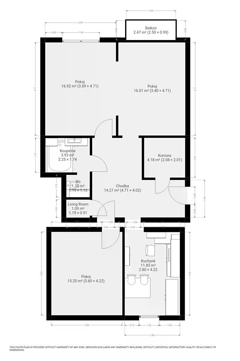 Pronájem bytu 3+1 87 m² Merhautova, Brno - Brno-sever