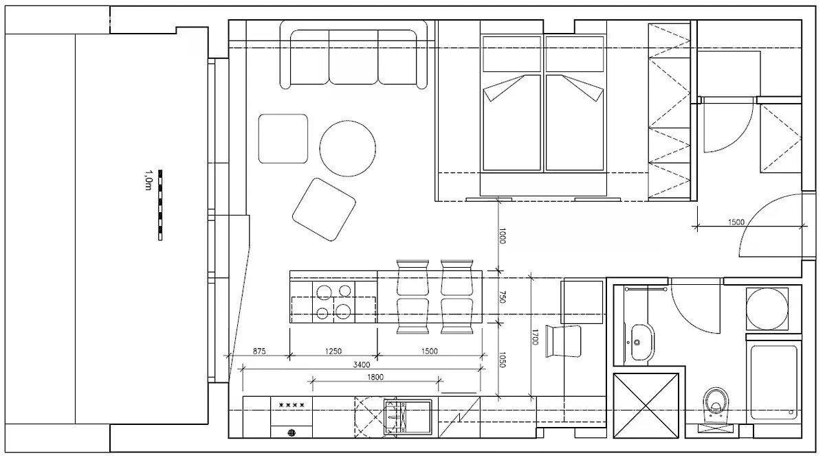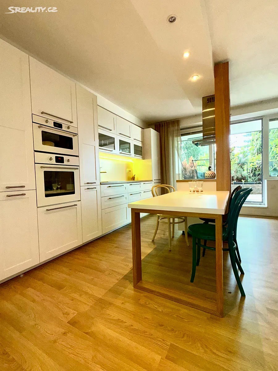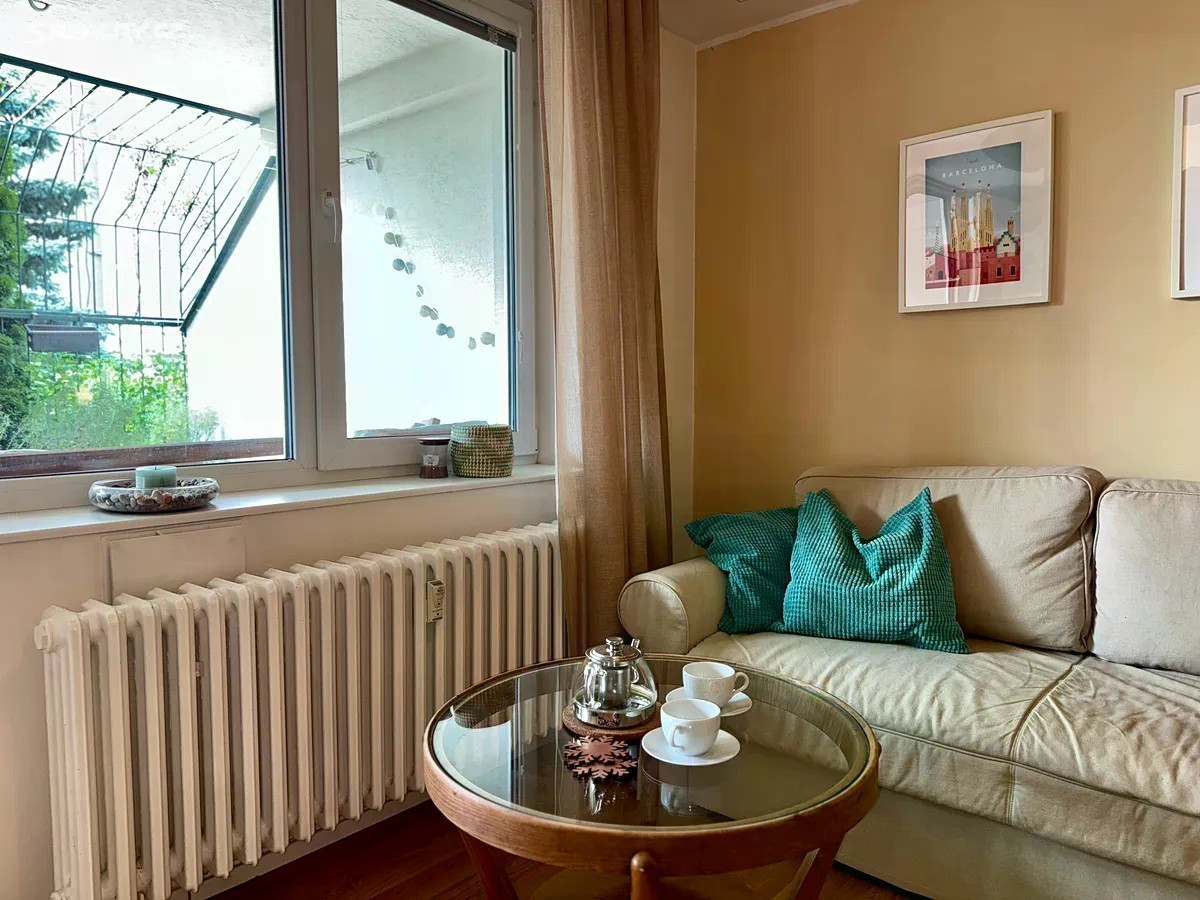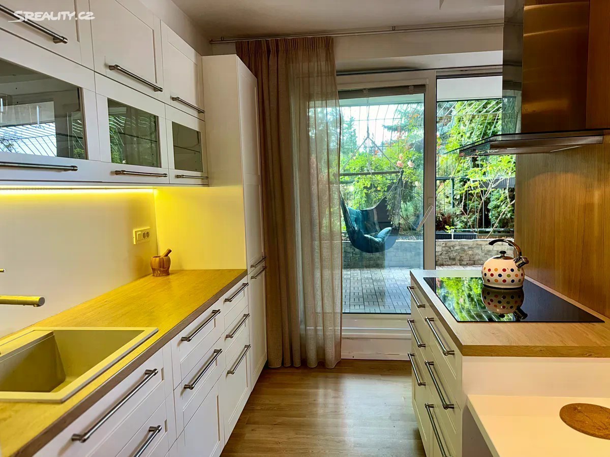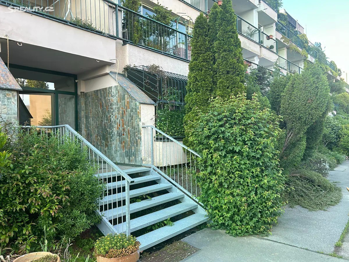 Působivý a přívětivý byt s plochou interiéru 50 m2, k tomu terasa 18 m2 a sklep 4 m2, v osobním vlastnictví, po precizní kompletní rekonstrukci, je koncipován na principu velkého otevřeného obytného prostoru, kde na sebe spojitým způsobem plynule a harmonicky navazují jednotlivé funkční zóny, tvořené kuchyní, stolováním, obývacím posezením i místem pro spánek v podobě plnohodnotného dvoulůžka; dokonce nechybí ani pracovní kout. Z praktického hlediska je důležité zmínit dostatek úložných prostor. Dispozičně jsou jako samostatné místnosti odděleny pouze komora a koupelna s umyvadlem, toaletou, sprchovým koutem a nikou s vestavěným nábytkem i pračkou. Celý interiér je důkladně promyšlený, kompletně nábytkově vybavený a v této formě bude novému vlastníkovi předán. Jedinečný charakter bytu umocňuje částečně krytá prostorná terasa, která je orientovaná na jih a navazuje na obytný prostor bytu, z něhož je přístupná přes posuvné dveře. Výhled je do bohaté zeleně obklopující terasu. Jedná se o zvlášť vhodnou příležitost investice do bydlení pro jedince či pár, který upřednostňuje užívat si jeden větší a vzdušný obytný prostor před jeho tradičním rozdělením na několik samostatných, avšak menších, místností a zároveň netouží po starostech s rekonstrukcí a vybavováním. Byt je volný, připravený k užívání bez velkého stěhování. Byt je situován ve zvýšeném přízemí udržovaného terasovitého domu skeletové konstrukce, kolaudovaného roku 1989. SVJ funguje spolehlivě a není zadlužené. Měsíční poplatky činí přibližně 4000,-Kč plus elektřina. Lokalita je právem oblíbená, má poklidnou atmosféru a dobrou dopravní dostupnost (metro, tramvaj, autobus).