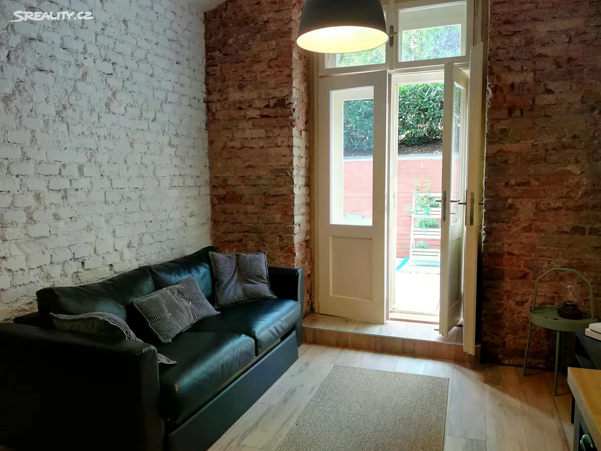 Apartmán 2+kk s terasou do zahrady se nachází v přízemí nově zrekonstruovaného domu v Mánesově ulici, v sousedství Riegrových sadů a náměstí Jiřího z Poděbrad. Originálně řešený prostor sestává z předsíně, obývacího pokoje s plně vybavenou kuchyní a jídelním koutem, ložnicí s úložným prostorem, koupelny se sprchovým koutem, umyvadlem a toaletou. Byt je zařízen moderním designovým nábytkem - veškeré vybavení je v ceně nemovitosti. V bytě je podlahové topení. K bytu náležící soukromá terasa (23m2) je přístupná dveřmi z obývacího pokoje i z ložnice. Prostor je velmi tichý - okna směřují na terasu a do zahradně upraveného vnitřního dvora. Terasa skýtá možnost posezení a relaxace v zeleni, v sousedství vzrostlých stromů. Apartmán nabízí klidné, příjemné místo pobytu v centru města, stejně jako možnost velmi lukrativního pronájmu. Dům je po celkové rekonstrukci. Stojí ve vyhledávané lokalitě centra Prahy s plnou občanskou vybaveností a jedinečnými podmínkami pro bohatý kulturní a společenský život: historické památky, muzea, divadla, galerie, široké spektrum služeb a restaurací a obchodů, řada sportovišť. Elegantní, malebná Mánesova ulice s alejí vzrostlých stromů je unikátní pražskou oázou klidu v rušném centru města a nabízí nepřeberné možnosti posezení ve stylových kavárnách, vinárnách a také pěších vycházek do zelených parků v okolí. V sousedství domu jsou rozlehlé Riegrovy sady a sady Svatopluka Čecha, pár minut chůze od domu se nachází náměstí Jiřího z Poděbrad se stanicí metra i tramvaje, v pěším dosahu je Národní muzeum a Václavské náměstí. Volné ihned. Nemovitost je možno financovat hypotečním úvěrem. Při koupi této nemovitosti kupující neplatí provizi. Právní servis zajištěn.