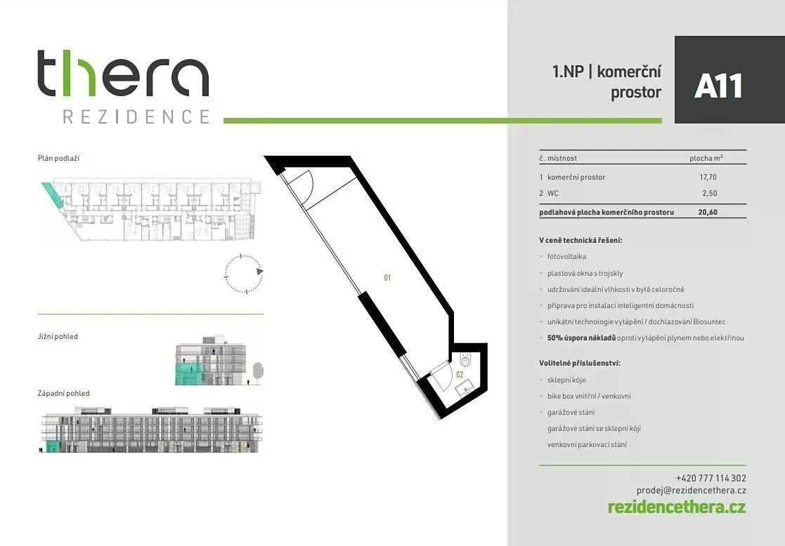 Nabízíme k prodeji poslední nový komerční prostor o podlahové ploše 20,60 m² v dokončeném bytovém projektu Rezidence Thera, situovaném v atraktivní lokalitě Hradce Králové - Kukleny. Tento prostor je ideální volbou pro vaše podnikání díky vynikající viditelnosti z hlavní ulice - Pražské třídy. Proč právě tento komerční prostor? 1. Skvělá lokalita: Prostor je umístěn v dynamicky se rozvíjející části Hradce Králové - Kukleny, což zajišťuje vysoký potenciál růstu vašeho podnikání. 2. Vynikající viditelnost: Díky své poloze přímo u hlavní ulice - Pražské třídy, nabízí prostor výjimečnou viditelnost pro kolemjdoucí a projíždějící, což může výrazně zvýšit návštěvnost vaší provozovny. 3. Moderní design: Velká prosklená plocha nejenom přináší přirozené světlo, ale také umožňuje efektivní prezentaci vaší značky nebo produktů, čímž přitahuje pozornost potenciálních zákazníků. 4. Snadná dostupnost: Prostor se nachází v přízemí s přímým vstupem z chodníku, což usnadňuje přístup pro vaše zákazníky i dodavatele. Zastávka autobusu je přímo u bytového domu. 5. Energetická úspora: Energetická třída bytového domu A, vytápění prostoru infrapanely, řízené větrání s rekuperací, FVE na střeše domu vlastněná SVJ pro energetickou efektivitu. Komerční prostor také disponuje přípravou na venkovní žaluzie. 6. Příslušenství na dokoupení: Garážové stání, venkovní parkovací stání. Financování: Zdarma vám pomůžeme zajistit financování koupě nemovitosti prostřednictvím našeho partnera. Investice do tohoto komerčního prostoru znamená nejen zajímavou podnikatelskou příležitost, ale také strategickou investici do budoucnosti. Nezmeškejte tuto jedinečnou příležitost a kontaktujte nás pro více informací nebo prohlídku. Tým Reality Kolenović