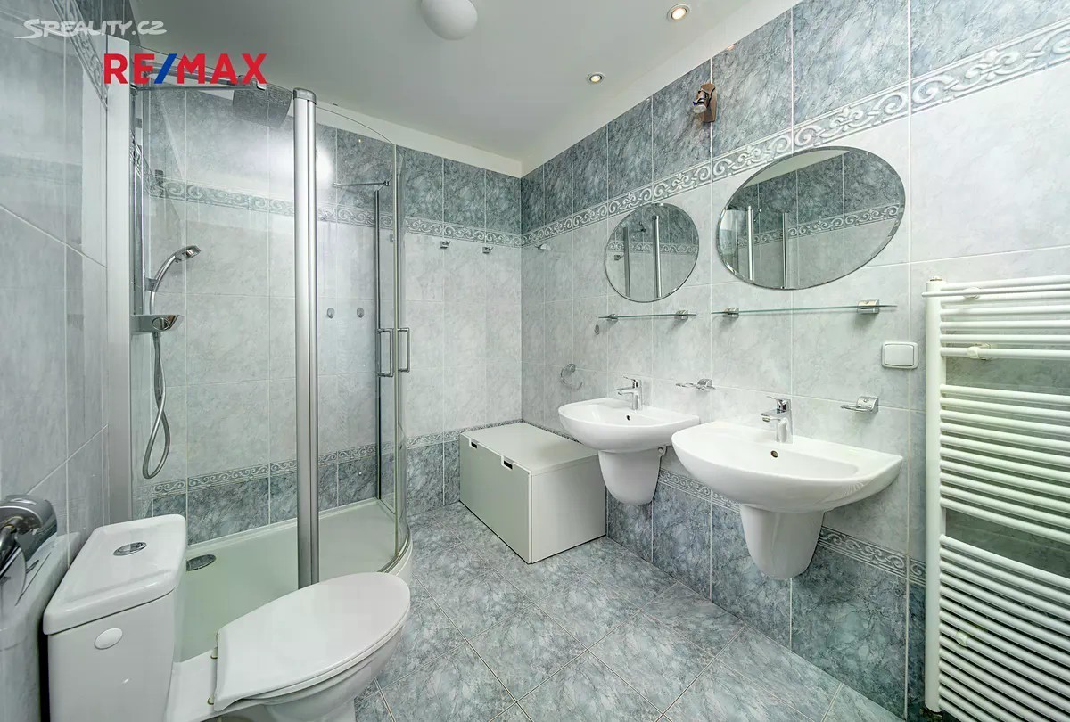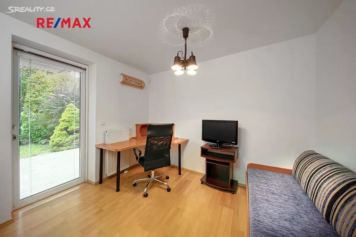 Exkluzivně Vám nabízíme pěkný dvoupatrový řadový rodinný dům na klidném a zajímavém místě poblíž Kunratického a Krčského lesa. Dům o dispozici 4 + 1 má dvě koupelny, prostornou garáž a řadu úložných prostor. Kuchyň je vybavena velkou kuchyňskou linkou s vestavěnými spotřebiči (el. troubou, mikrovlnnou troubou, myčkou lednicí). Dům si můžete podrobně prohlédnout nejen na přiložených pláncích, ale i ve virtuální prohlídce. Odkaz na virtuální prohlídku naleznete mezi fotografiemi (ikona "3D" nebo "Spustit videoprohlídku" nebo "360°" apod.). Dům je v energetické třídě „C“ (= úsporný). Vytápění zajišťuje plynový kotel. Dům má instalován dostatečný příkon pro budoucí instalaci tepelného čerpadla. Dvoukomínové těleso umožňuje přidat krbová kamna nebo jeden z komínových průduchů použít pro elegantní instalaci klimatizace. K domu náleží udržovaná zahrada s několika vzrostlými stromy a keři, na kterou je vstup buď z balkónu točitým schodištěm nebo přes krytou dlážděnou terasu přímo z domu. Toto zázemí poskytuje klid pro relaxaci a posezení s přáteli a rodinou. Parkování v ulici je bezplatné. K parkování lze využít i prostor před přímo před domem nebo před garáží. Dům je ve výborném technickém stavu a je připraven k okamžitému užívání. V okolí najdete veškerou potřebnou občanskou vybavenost. Nejbližší stanicí metra je „Kačerov“, ale asi 5 minut chůzí od domu se u Thomayerovy nemocnice staví nová stanice metra (na trase D). Výhodou je i dobré dopravní napojení lokality Zeleného údolí na Městský okruh i dálnice. V případě zájmu pomůžeme s obstaráním hypotéky. Budeme se těšit, že Vás přivítáme na prohlídce tohoto zajímavého domu.