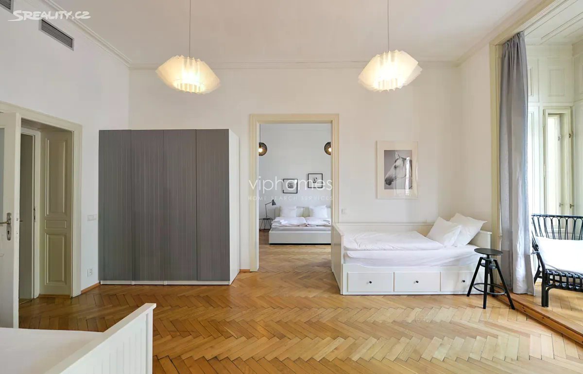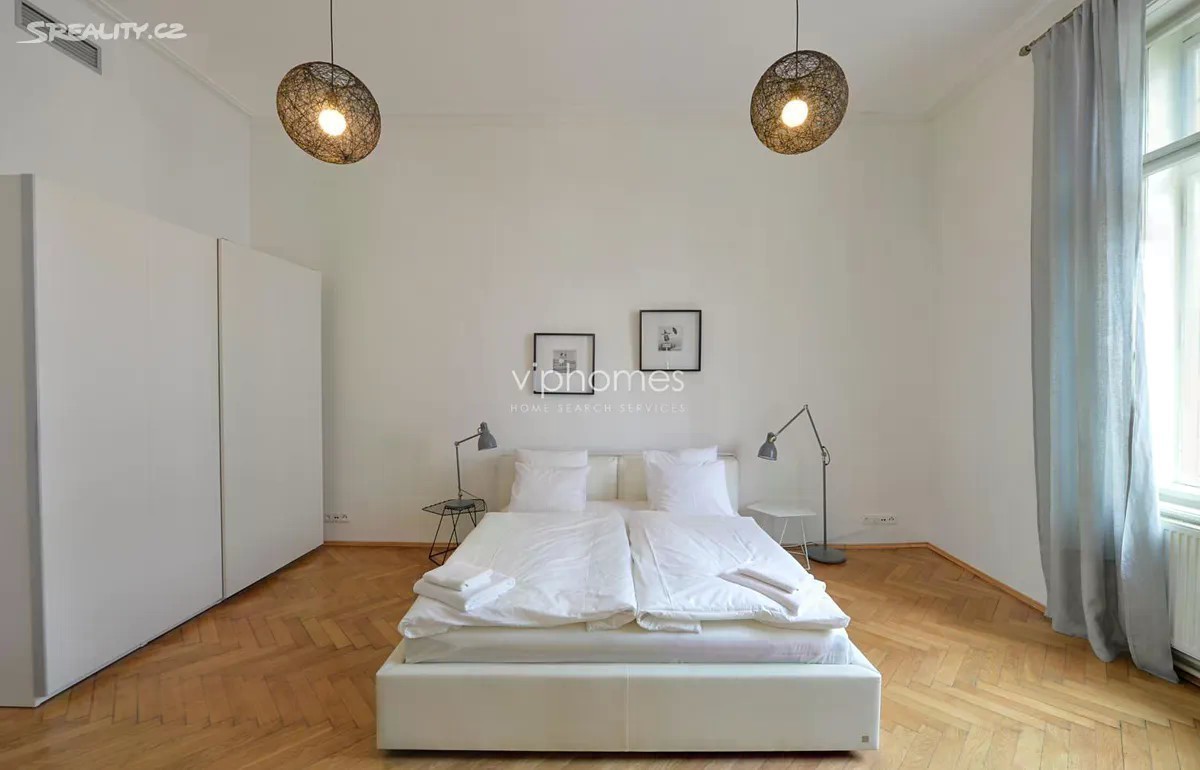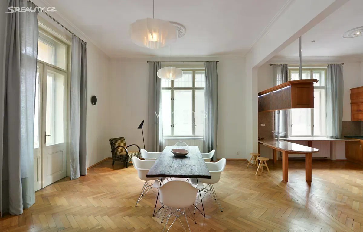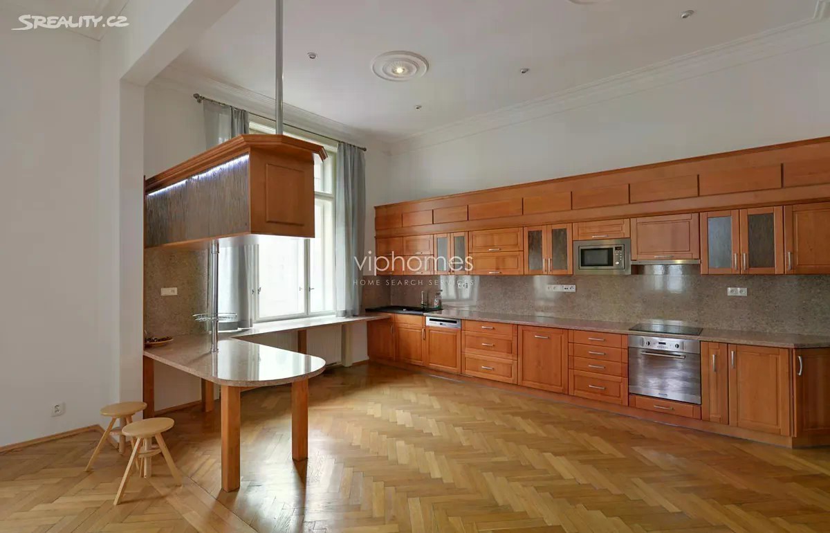 Velkoryse řešený byt 5+kk s vysokou úrovní vnitřního komfortu situovaný ve 3. patře secesního domu v exkluzivní Pařížské ulici. V nejbližším okolí je spousta v těch nejlepších restaurací, kaváren, barů a butiků světoznámých designérů. Rezidenční budova je po celkové rekonstrukci s důrazem na zachování tradiční, historické architektury. Interiér bytu tvoří prostorná vstupní hala, velký obývací pokoj, kuchyň s přístupem na balkon, jídelní prostor, čtyři ložnice - jedna s balkonem a vybavenou šatnou, koupelna se saunou, druhá koupelna se sprchovým koutem a toaletou. V bytě je moderní kuchyňské a koupelnové vybavení. Rekonstrukce bytu i budovy s použitím kvalitních materiálů. Vysoké stropy, štuky, na podlahách parkety a dlažba, vestavěné úložné prostory, automatický regulátor topení, digitální SAT, telefonní linka, Intercom. Návazné služby spojené s pronájmem: možnost zajištění pravidelného úklidu. Měsíční nájemné 120 000 Kč Poplatky za společné domovní služby 5.000 Kč / měsíc. Poplatky za spotřebu energií se hradí zvlášť. Po dohodě možnost střednědobého pronájmu (od 6 měsíců). Podlahová plocha 196 m² Balkón 4 m² Celková plocha 200 m²
