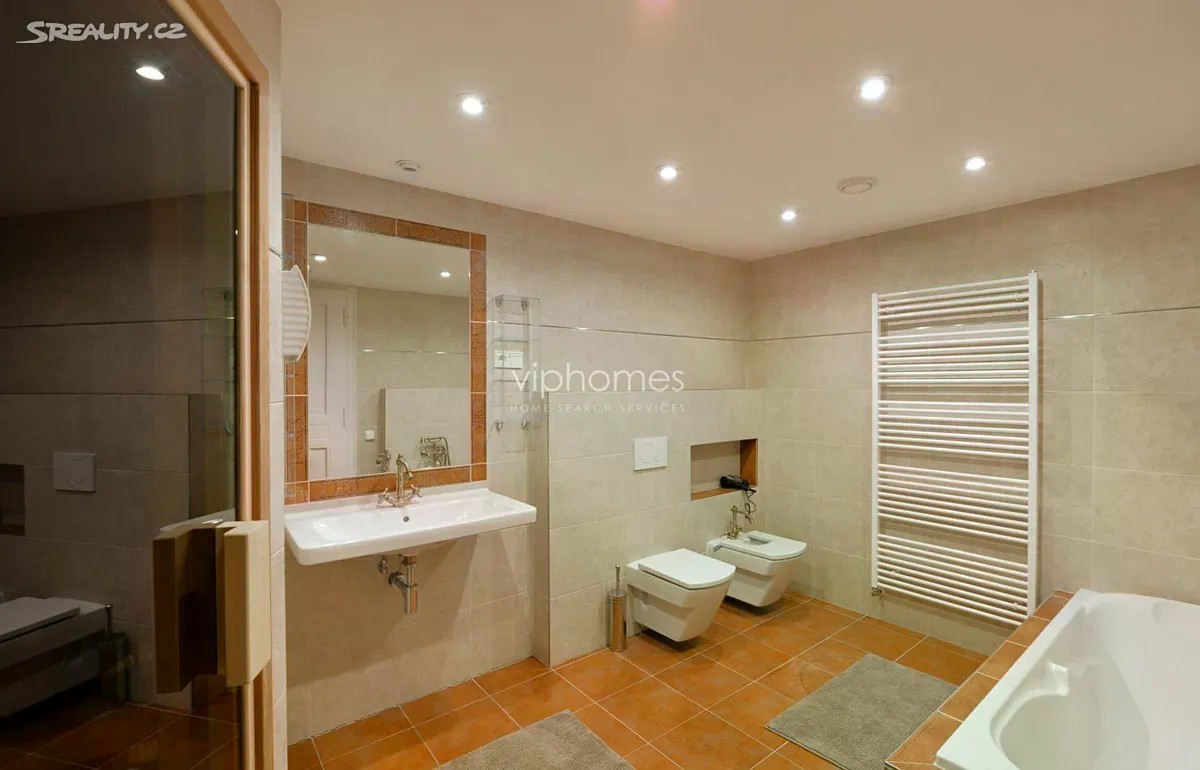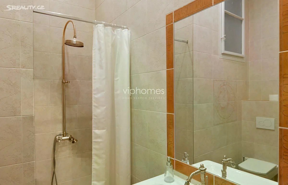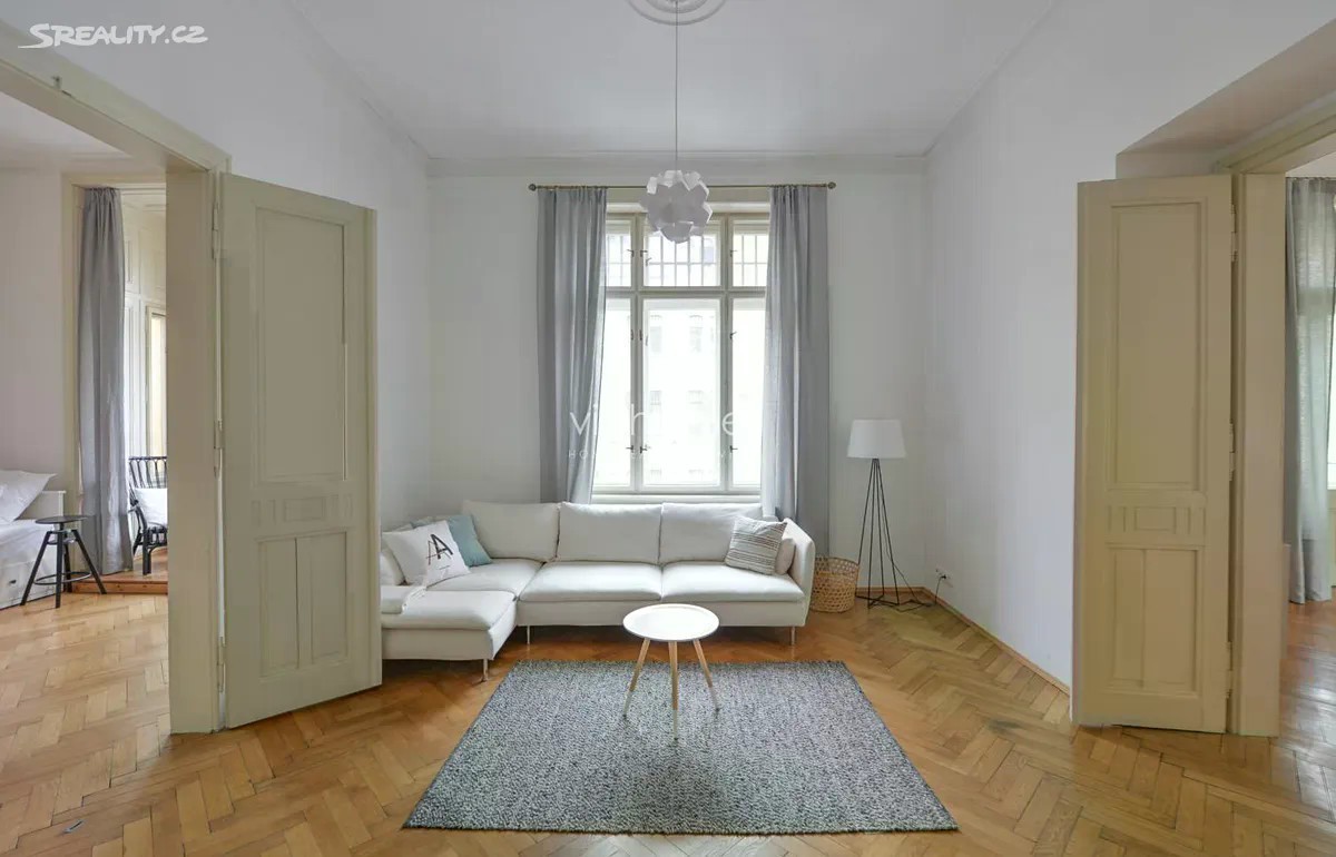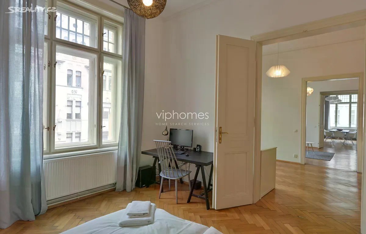 Velkoryse řešený byt 5+kk s vysokou úrovní vnitřního komfortu situovaný ve 3. patře secesního domu v exkluzivní Pařížské ulici. V nejbližším okolí je spousta v těch nejlepších restaurací, kaváren, barů a butiků světoznámých designérů. Rezidenční budova je po celkové rekonstrukci s důrazem na zachování tradiční, historické architektury. Interiér bytu tvoří prostorná vstupní hala, velký obývací pokoj, kuchyň s přístupem na balkon, jídelní prostor, čtyři ložnice - jedna s balkonem a vybavenou šatnou, koupelna se saunou, druhá koupelna se sprchovým koutem a toaletou. V bytě je moderní kuchyňské a koupelnové vybavení. Rekonstrukce bytu i budovy s použitím kvalitních materiálů. Vysoké stropy, štuky, na podlahách parkety a dlažba, vestavěné úložné prostory, automatický regulátor topení, digitální SAT, telefonní linka, Intercom. Návazné služby spojené s pronájmem: možnost zajištění pravidelného úklidu. Měsíční nájemné 120 000 Kč Poplatky za společné domovní služby 5.000 Kč / měsíc. Poplatky za spotřebu energií se hradí zvlášť. Po dohodě možnost střednědobého pronájmu (od 6 měsíců). Podlahová plocha 196 m² Balkón 4 m² Celková plocha 200 m²