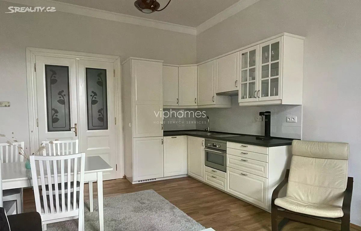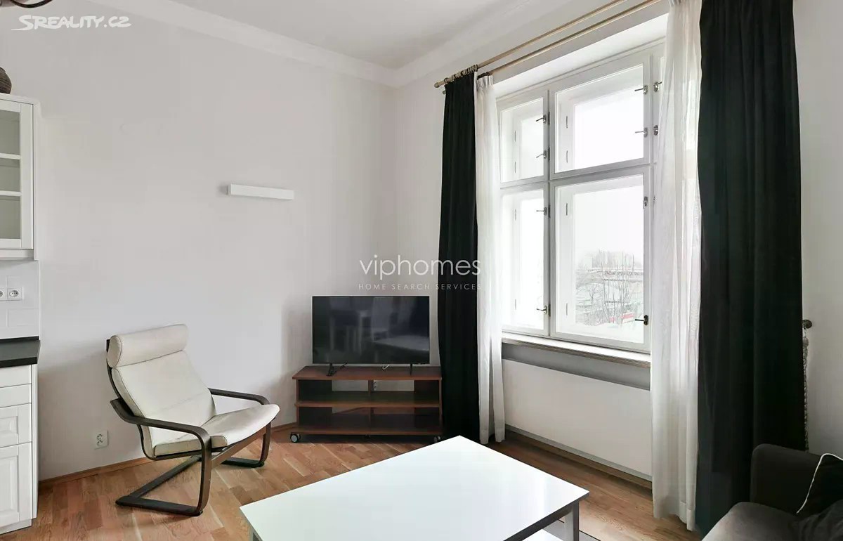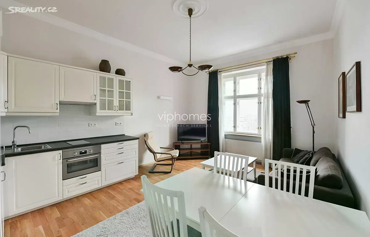 Kompletně zařízený komfortní byt 2kk ve 3. patře (4.NP) plně rekonstruované secesní budovy s okouzlujícím výhledem na panorama Pražského hradu. Příjemné bydlení v pěší dostupnosti od Vltavského nábřeží s kulturními památkami jako Žofín, Národní divadlo a Tančící dům v docházkové vzdálenosti. Dvě minuty chůze k nejbližšímu metru na Karlově náměstí, četné tramvajové spojení do všech částí Prahy. Vnitřní dispozici bytu tvoří světlý otevřený prostor obývacího pokoje propojený s kuchyňským koutem, (výhled na řeku), ložnice situovaná do klidného vnitrobloku, koupelna se sprchovým koutem, toaletou a bidetem, šatna a vstupní hala. Kuchyně je kompletně vybavena všemi potřebnými vestavnými spotřebiči. Vysoké stropy, zachované původní prvky, parkety, dlažba, bezpečnostní dveře, pračka, sušička, TV, videotelefon, bezpečnostní zařízení. Satelitní anténa s programy dle přání klienta. Byt je zařízen nábytkem, lze pronajmout i nezařízený. K dispozici ihned. Nájem: 38 000 CZK / 1 514 EUR měsíc. Měsíční zálohy na služby a vodu: 4 000 CZK / měsíc. Elektřina a plyn se převádí na nájemce.