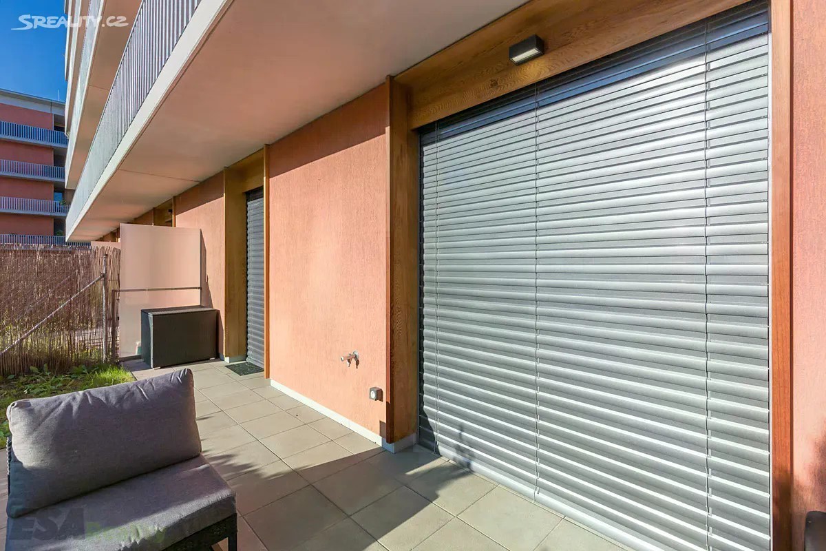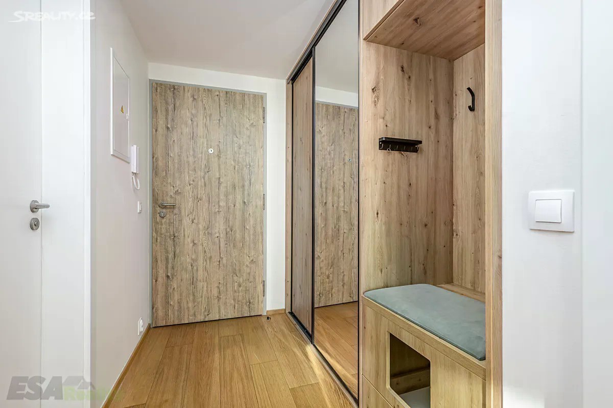 Nabízíme k prodeji moderní byt 2+kk o ploše 53,8 m² s terasou 31,3 m² v prestižním rezidenčním projektu BeláriePark II v ulici Vrátnická, Praha 4 - Modřany. Součástí ceny je sklep 2,1 m² a parkovací stání v podzemních garážích. Rezidenční komplex pěti bytových domů byl dokončen v roce 2021 a patří mezi nejzdařilejší novostavby v Praze. Autory projektu jsou uznávaní architekti prof. Ing. arch. Ladislav Lábus, Ing. arch. Marek Chalupa a Ing. arch. Štěpán Chalupa. Projekt je navržen s vnitřním atriem prosvětleným denním světlem a se společnými prostory řešenými formou pavlačí. Byt nabízí klidné a komfortní bydlení v zeleni u Vltavy s výbornou dostupností do centra. Standard bytu: moderní novostavba s důrazem na funkčnost a světlo, velkoformátová okna s přímým vstupem na terasu, předokenní rolety, kvalitní podlahy a obklady, bezpečnostní vstupní dveře. Vybavení, které je součástí bytu: kuchyňská linka na míru s vestavnými spotřebiči (varná deska, trouba, digestoř, myčka, mikrovlnná trouba), lednice, jídelní stůl se židlemi, sedací souprava, obývací stěna, TV, konferenční stolek, ložnice s manželskou postelí, nočními stolky, velkou vestavěnou skříní a komodou s TV, chodba s vestavěnou šatní skříní, lavicí a zrcadlem, venkovní posezení na terase. Dispozice: obývací pokoj s kuchyňským koutem 27,1 m² a vstupem na terasu, ložnice 12,2 m² také se vstupem na terasu, komora/technická místnost 1,7 m², koupelna s vanou a toaletou, chodba s vestavěnou skříní. V okolí je kompletní občanská vybavenost: školy a školky (včetně ZŠ Tomáše Garrigua Masaryka), gymnázium, Husova knihovna, poliklinika, Medicínské centrum Praha (5 minut chůze), supermarkety Billa a Albert. Pro sport a volný čas je k dispozici cyklo-bruslařská stezka podél Vltavy, Freestyle Park, skatepark, golfové hřiště, minigolf, park Belárie, tenisové centrum Tempo, Viniční domek s Domem dětí a mládeže či přírodní rezervace Modřanská rokle a údolí Berounky. Dopravní dostupnost: tramvajová zastávka Belárie je 2 minuty chůze, do centra města se dostanete za cca 15 minut. Automobilová doprava je napojena na městský okruh i rychlostní komunikace. Možnost financování hypotečním úvěrem.