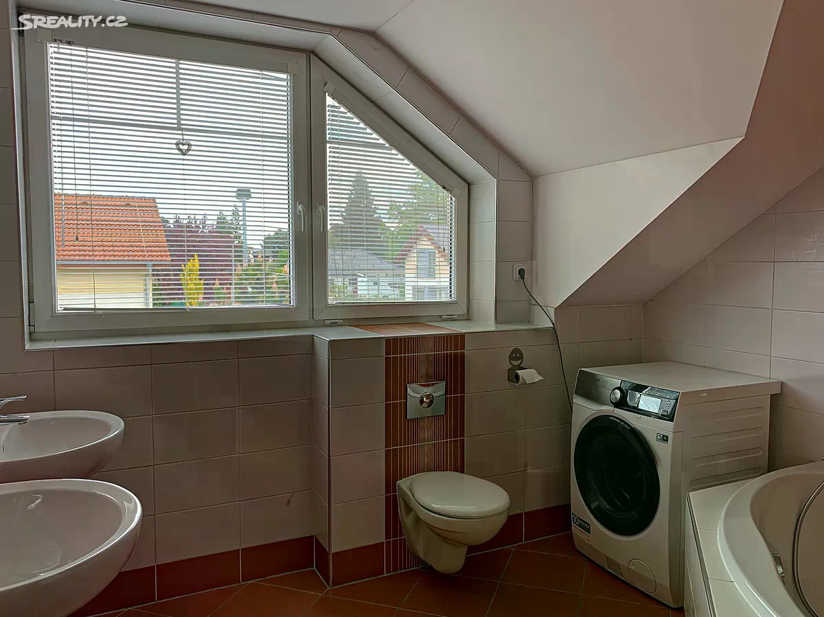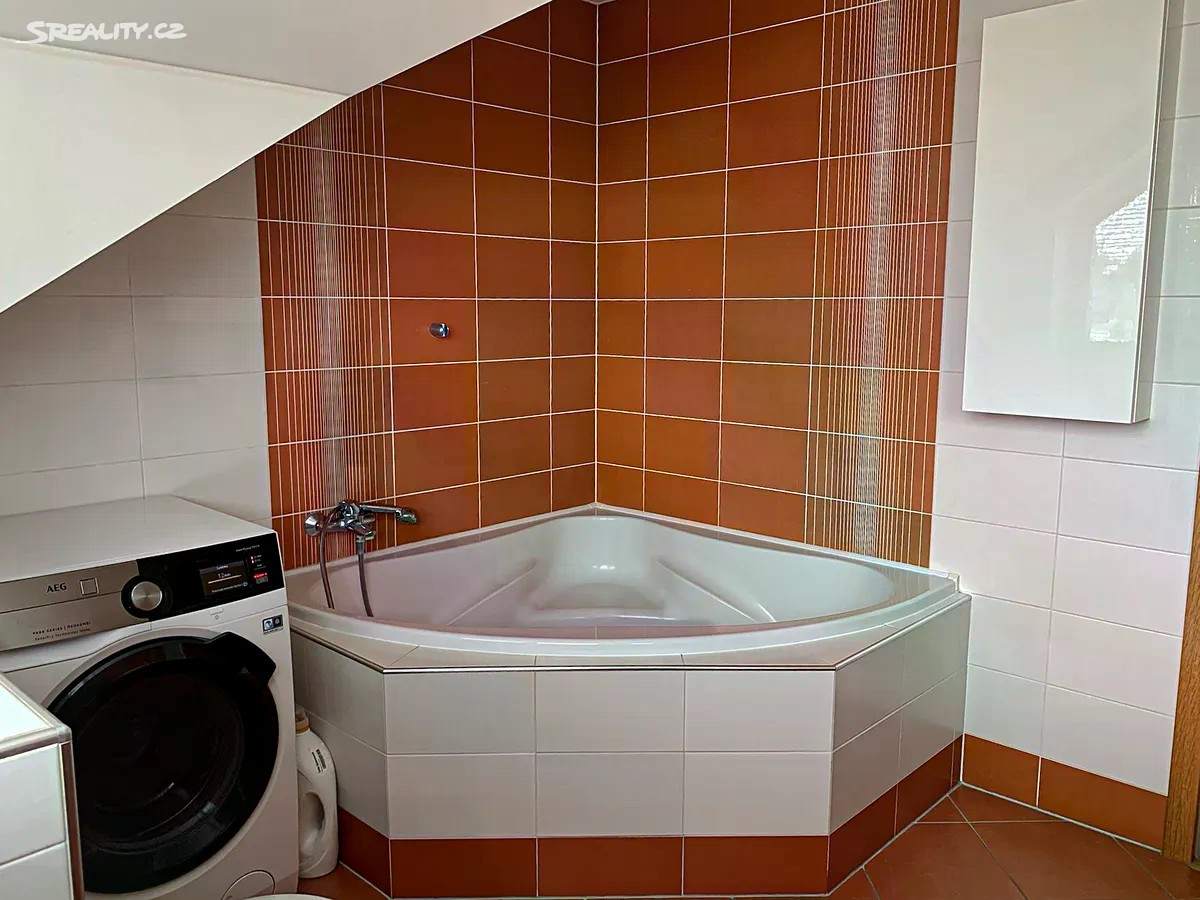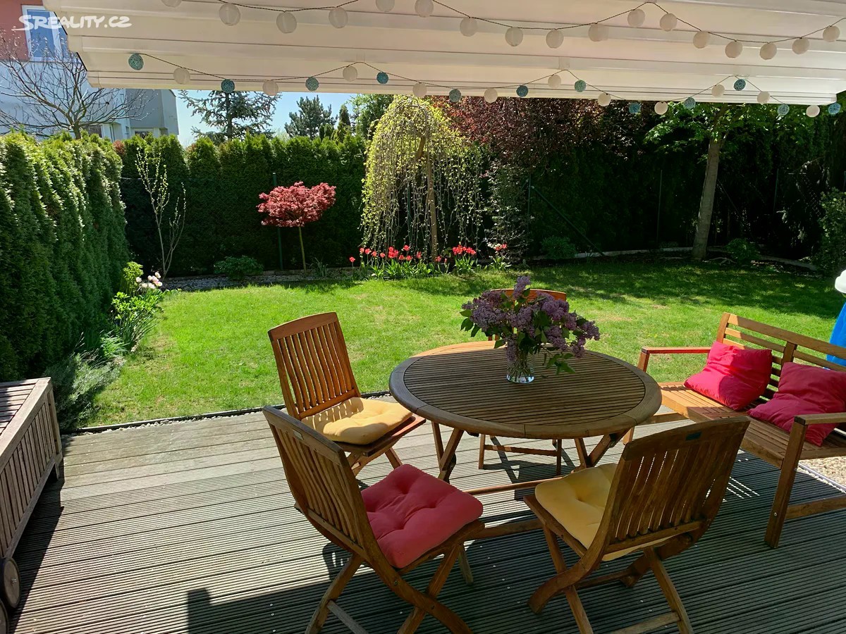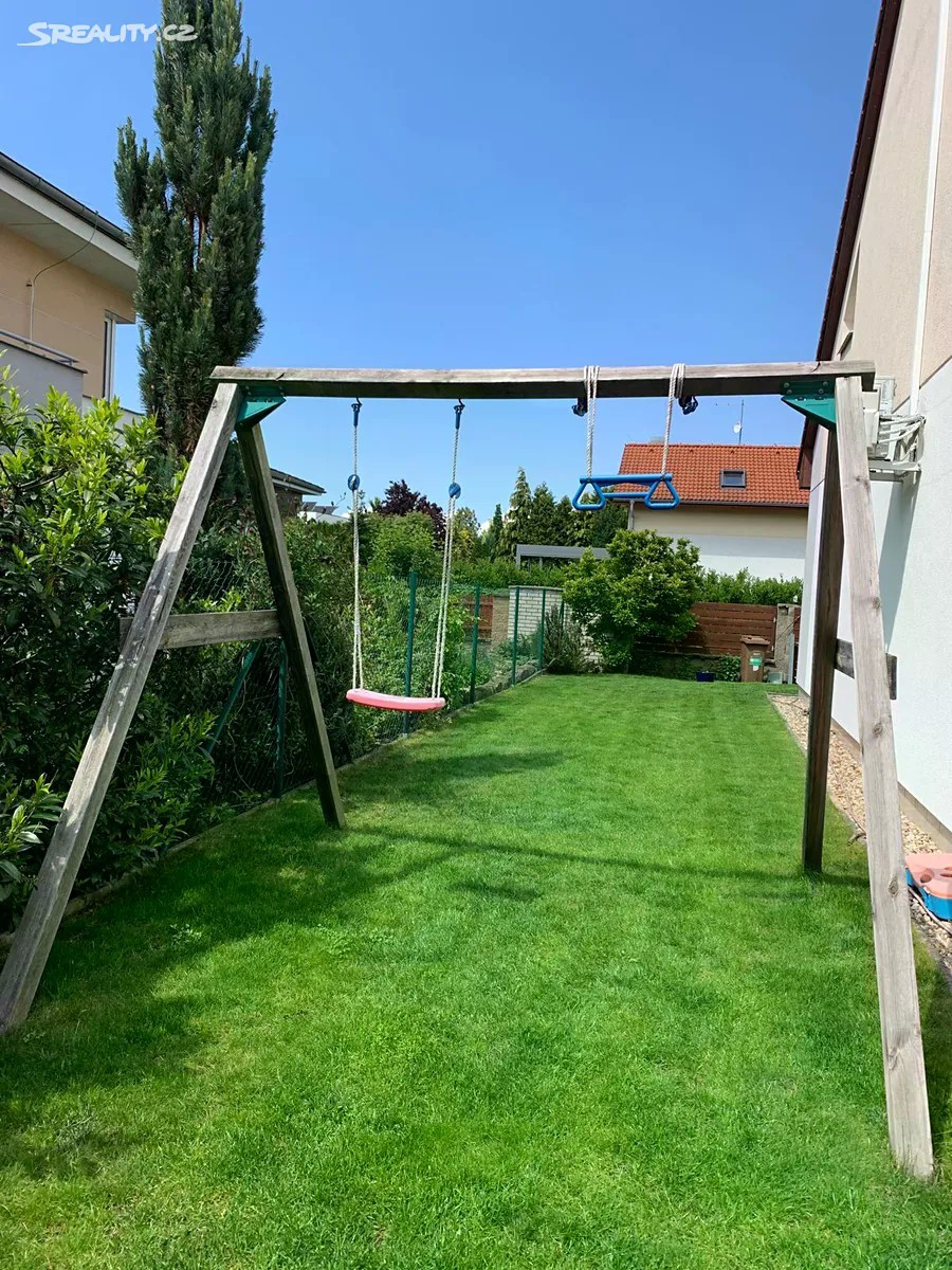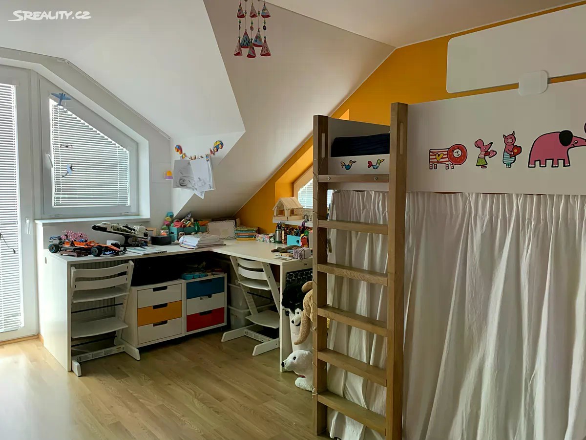 Nabízíme ke koupi moderní rodinný dům o dispozici 4+kk s garáží, zahradou a velkým úložným prostorem v půdní části, který se nachází v klidné a oblíbené lokalitě Prahy 21 - Újezd nad Lesy. Krajní řadovka z roku 2009 nabízí celkovou vnitřní plochu 134,5 m², k tomu přibližně 27 m² půdy a stojí na pozemku o velikosti 328 m². Dům je velmi dobře dispozičně řešen a díky orientaci na jih působí světlým a vzdušným dojmem. V přízemí se nachází prostorný obývací pokoj s jídelní a kuchyňskou částí, vybavenou kvalitní linkou značky Sykora a spotřebiči Bosch a De Dietrich. Z obytného prostoru vedou francouzská okna na cca 15 m² velkou dřevěnou terasu s elektricky ovládanou markýzou a dále na upravenou zahradu. V přízemí je také koupelna se sprchovým koutem, toaletou a výklenkem pro plynový kotel a zásobník na teplou vodu. Z předsíně vedou schody do patra, pod nimi se nachází praktická komora. Pro bezpečnost jsou na horní části schodiště instalována bezpečnostní vrátka. V patře jsou tři pokoje, prostorná koupelna a samostatná šatna/komora. Dva z pokojů jsou orientovány na jih a mají přístup na společný balkon, třetí pokoj je orientován na sever a je vybaven vestavěnou skříní. V koupelně s podlahovým vytápěním je rohová vana, dvě umyvadla a místo pro pračku. Z chodby je výsuvnými schůdky přístupná půda, která slouží jako velkorysý úložný prostor. Součástí domu je garáž s elektricky ovládanými vraty, kam se kromě auta pohodlně vejde i zahradní nářadí, kola nebo sekačka. Před garáží je zpevněná plocha pro parkování dalšího vozu. Vjezdová brána na pozemek je posuvná a elektricky ovládaná, na brance je nainstalovaný elektronický vrátný. Dům je vybaven klimatizací Samsung - jedna jednotka je v obývacím pokoji, druhá v dětském pokoji; venkovní jednotka má dostatečnou kapacitu pro případné rozšíření o další vnitřní jednotku. V domě je také připravený komín, který umožňuje instalaci krbových kamen v obývacím pokoji. Bezpečnost zajišťuje zabezpečovací systém Jablotron s pohybovými čidly a možností napojení na pult centrální ochrany. Zahrada je udržovaná a osázená vzrostlými stromy a keři, které poskytují soukromí a příjemný stín v letních měsících. Vedle domu je dětská houpačka, u terasy je připravené místo pro nadzemní bazén, Lokalita nabízí ideální kombinaci klidu a výborné občanské vybavenosti. V docházkové vzdálenosti se nachází tři supermarkety, menší obchody, restaurace, kavárny, pošta, škola, školky i sportoviště. Poblíž je také krásný Klánovický les, ideální pro procházky a volnočasové aktivity. Dopravní dostupnost je výborná - autem se mimo špičku dostanete do centra Prahy za cca 30 minut, v blízkosti je zastávka autobusů směřujících na metro Černý Most a Depo Hostivař. Vlaková stanice Klánovice, odkud se dostanete na Masarykovo nádraží za přibližně 20 minut, je vzdálená asi 2 km a dostupná MHD. Dům je ve výborném stavu, bez nutnosti dalších investic a je možné jej financovat hypotečním úvěrem. Vybraný nábytek v domě je možné po dohodě ponechat či odkoupit.