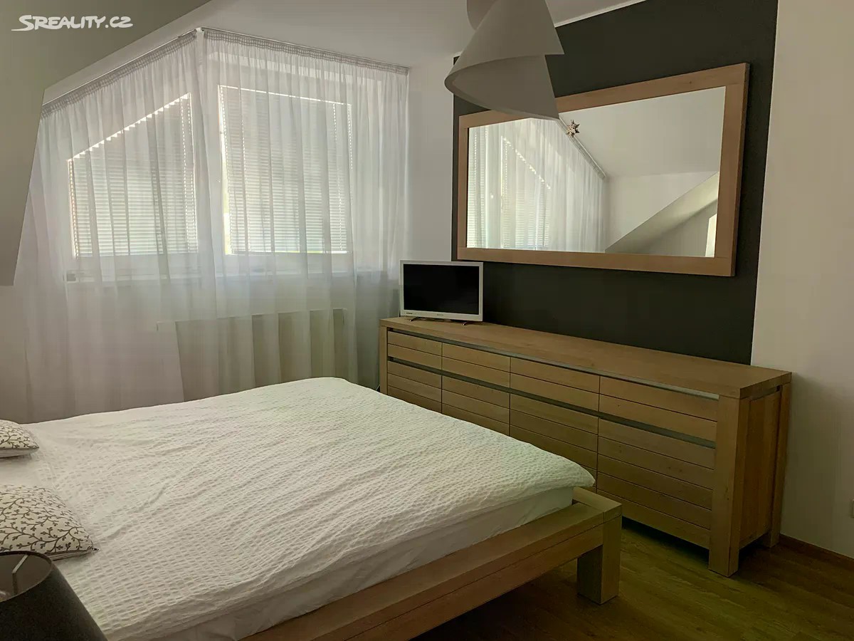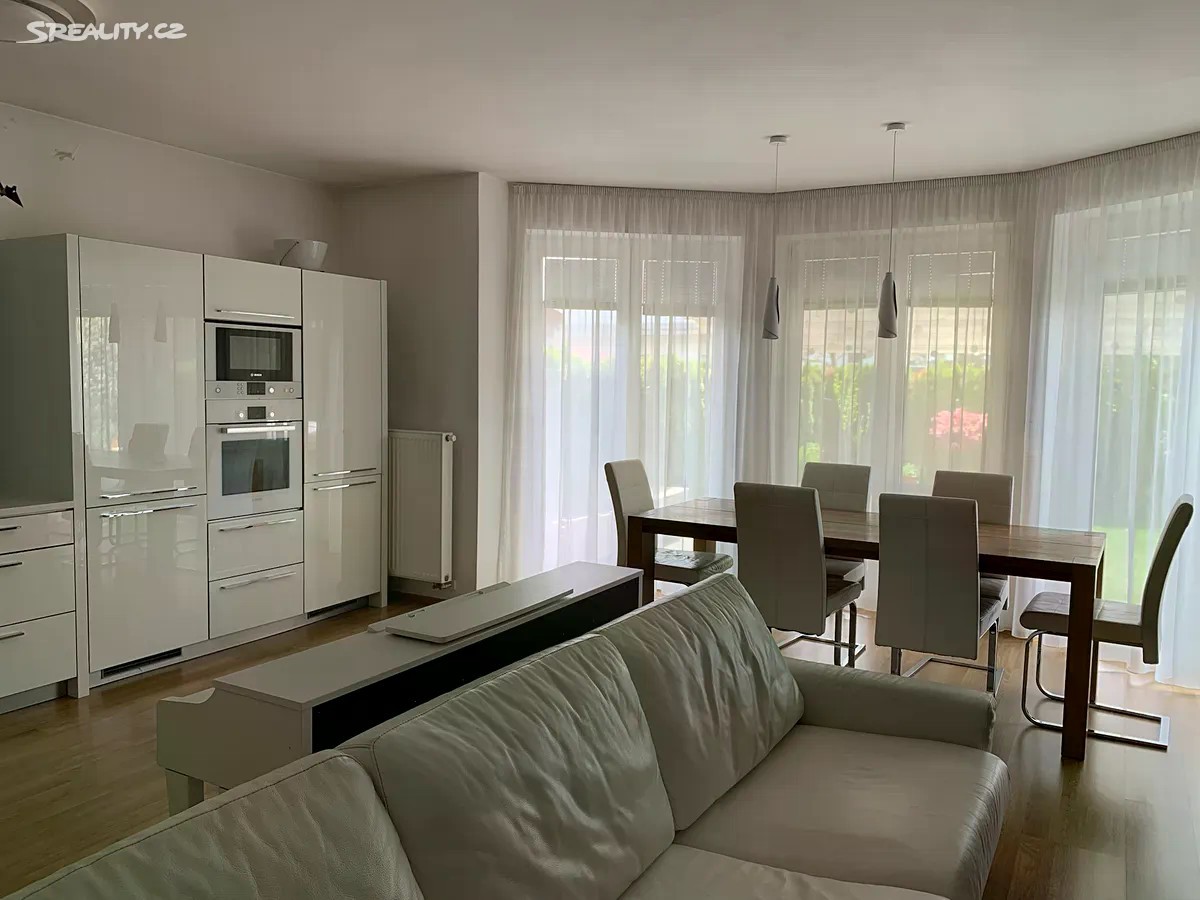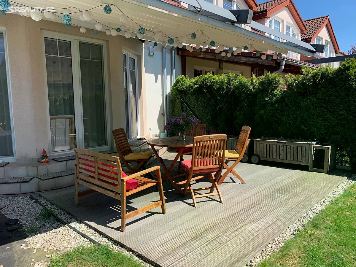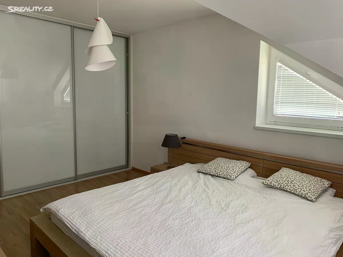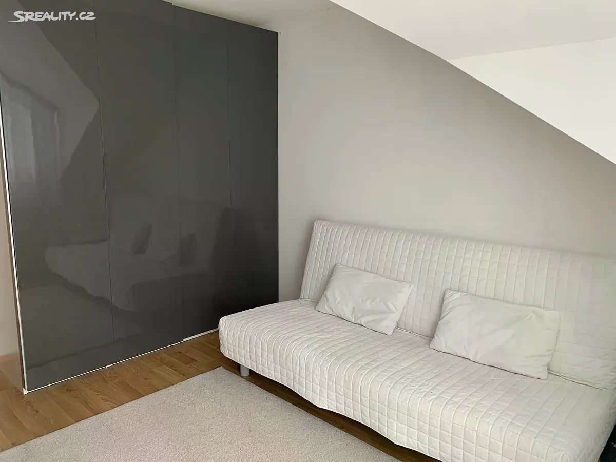 Nabízíme ke koupi moderní rodinný dům o dispozici 4+kk s garáží, zahradou a velkým úložným prostorem v půdní části, který se nachází v klidné a oblíbené lokalitě Prahy 21 - Újezd nad Lesy. Krajní řadovka z roku 2009 nabízí celkovou vnitřní plochu 134,5 m², k tomu přibližně 27 m² půdy a stojí na pozemku o velikosti 328 m². Dům je velmi dobře dispozičně řešen a díky orientaci na jih působí světlým a vzdušným dojmem. V přízemí se nachází prostorný obývací pokoj s jídelní a kuchyňskou částí, vybavenou kvalitní linkou značky Sykora a spotřebiči Bosch a De Dietrich. Z obytného prostoru vedou francouzská okna na cca 15 m² velkou dřevěnou terasu s elektricky ovládanou markýzou a dále na upravenou zahradu. V přízemí je také koupelna se sprchovým koutem, toaletou a výklenkem pro plynový kotel a zásobník na teplou vodu. Z předsíně vedou schody do patra, pod nimi se nachází praktická komora. Pro bezpečnost jsou na horní části schodiště instalována bezpečnostní vrátka. V patře jsou tři pokoje, prostorná koupelna a samostatná šatna/komora. Dva z pokojů jsou orientovány na jih a mají přístup na společný balkon, třetí pokoj je orientován na sever a je vybaven vestavěnou skříní. V koupelně s podlahovým vytápěním je rohová vana, dvě umyvadla a místo pro pračku. Z chodby je výsuvnými schůdky přístupná půda, která slouží jako velkorysý úložný prostor. Součástí domu je garáž s elektricky ovládanými vraty, kam se kromě auta pohodlně vejde i zahradní nářadí, kola nebo sekačka. Před garáží je zpevněná plocha pro parkování dalšího vozu. Vjezdová brána na pozemek je posuvná a elektricky ovládaná, na brance je nainstalovaný elektronický vrátný. Dům je vybaven klimatizací Samsung - jedna jednotka je v obývacím pokoji, druhá v dětském pokoji; venkovní jednotka má dostatečnou kapacitu pro případné rozšíření o další vnitřní jednotku. V domě je také připravený komín, který umožňuje instalaci krbových kamen v obývacím pokoji. Bezpečnost zajišťuje zabezpečovací systém Jablotron s pohybovými čidly a možností napojení na pult centrální ochrany. Zahrada je udržovaná a osázená vzrostlými stromy a keři, které poskytují soukromí a příjemný stín v letních měsících. Vedle domu je dětská houpačka, u terasy je připravené místo pro nadzemní bazén, Lokalita nabízí ideální kombinaci klidu a výborné občanské vybavenosti. V docházkové vzdálenosti se nachází tři supermarkety, menší obchody, restaurace, kavárny, pošta, škola, školky i sportoviště. Poblíž je také krásný Klánovický les, ideální pro procházky a volnočasové aktivity. Dopravní dostupnost je výborná - autem se mimo špičku dostanete do centra Prahy za cca 30 minut, v blízkosti je zastávka autobusů směřujících na metro Černý Most a Depo Hostivař. Vlaková stanice Klánovice, odkud se dostanete na Masarykovo nádraží za přibližně 20 minut, je vzdálená asi 2 km a dostupná MHD. Dům je ve výborném stavu, bez nutnosti dalších investic a je možné jej financovat hypotečním úvěrem. Vybraný nábytek v domě je možné po dohodě ponechat či odkoupit.