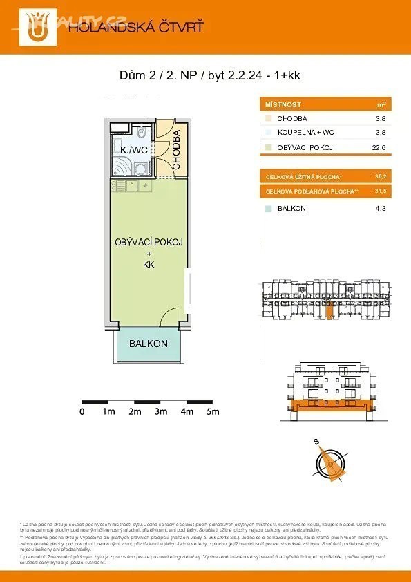 K pronájmu Vám exkluzivně nabízíme byt v oblíbené novostavbě - Holandská čtvrť v Olomouci. Holandská čtvrť dům K je nově zkolaudovaný developerský projekt na ulici Aloise Rašína, katastrální území Neředín/Řepčín. Částečně zařízený byt o dispozici 1+kk má výměru 31,5 m2 a balkon 4,3 m2. Přes chodbu vstupujete do pokoje s kuchyňskou linkou, vybavenou dřezem, lednicí, varnou deskou a troubou na pečení. V koupelně se nachází sprchový kout, umyvadlo, zrcadlo, skřínka, prostor pro pračku + sušičku, otopný žebřík a toaleta. K bytu náleží komora umístěná ve stejném patře. Byt je nový, připravený pro nového nájemníka. Doporučujeme prohlídku s makléřem.