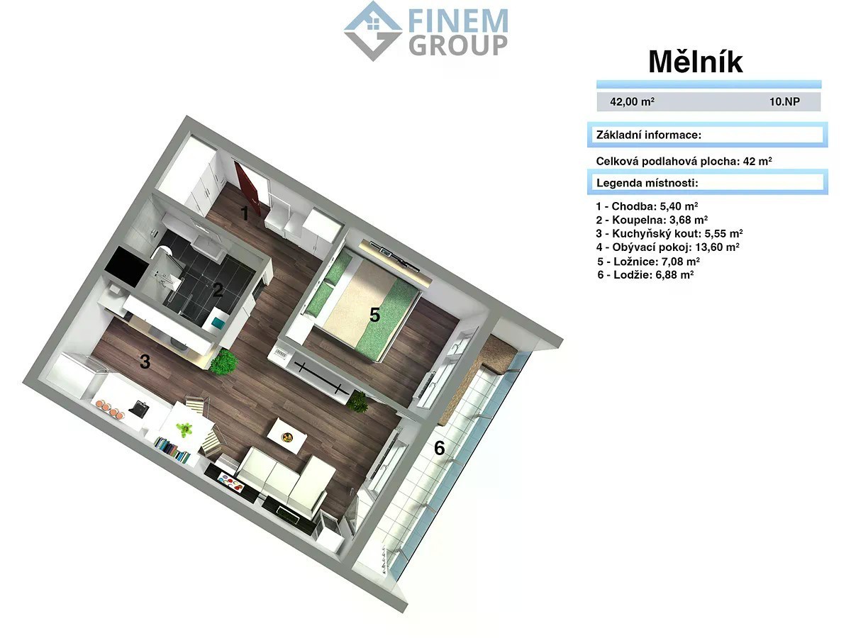 Nabízíme k prodeji moderně zrenovovanou bytovou jednotku o dispozici 2+kk v osobním vlastnictví o celkové podlahové ploše 42 m², v ulici Sportovní, Mělník 10NP/10NP. Díky moderní a promyšlené rekonstrukci byla bytová jednotka dispozičně řešena s maximálním využitím každého m². Praktické uspořádání prostoru zajišťuje pohodlné a komfortní bydlení, které působí vzdušně a současně nabízí dostatek úložných i obytných ploch. Dispozice velmi hezky navržena a poskytuje ideální kombinaci funkčnosti a estetiky. K bytu náleží prostorná lodžie o velikosti 7 m², orientovaná na západní stranu, nabízející příjemný prostor k posezení či relaxaci s odpoledním sluncem, dále sklepní kóje ideální pro uložení sezónních věcí, sportovního vybavení či dalších předmětů. Byt prošel rozsáhlou rekonstrukcí - nové rozvody vody, elektřiny i topení, provedeny byly nové vnitřní omítky a stropy, dále je zde nová koupelna i kuchyňská linka. Dům, ve kterém se byt nachází, byl postaven v roce 1972. V roce 2011 proběhlo kompletní zateplení fasády a výměna střechy. V současné době se připravuje revitalizace výtahů a řeší se také nové venkovní připojení na kanalizaci, což dále zvýší kvalitu bydlení do budoucna. Nemovitost se nachází v klidné a vyhledávané části města s kompletní občanskou vybaveností v dosahu - obchody, školy, školky, zdravotnická zařízení i sportoviště. Díky blízké zastávce MHD je zajištěna snadná dostupnost do centra města i směrem na Prahu. Lokalita je ideální jak pro vlastní bydlení, tak i jako zajímavá investiční příležitost. Pro více informací a možnostech financování či pro sjednání prohlídky nás neváhejte kontaktovat. Zajistíme veškerý právní servis, včetně výhodného financování. Poznámka: Provize RK není zahrnuta v ceně nemovitosti.