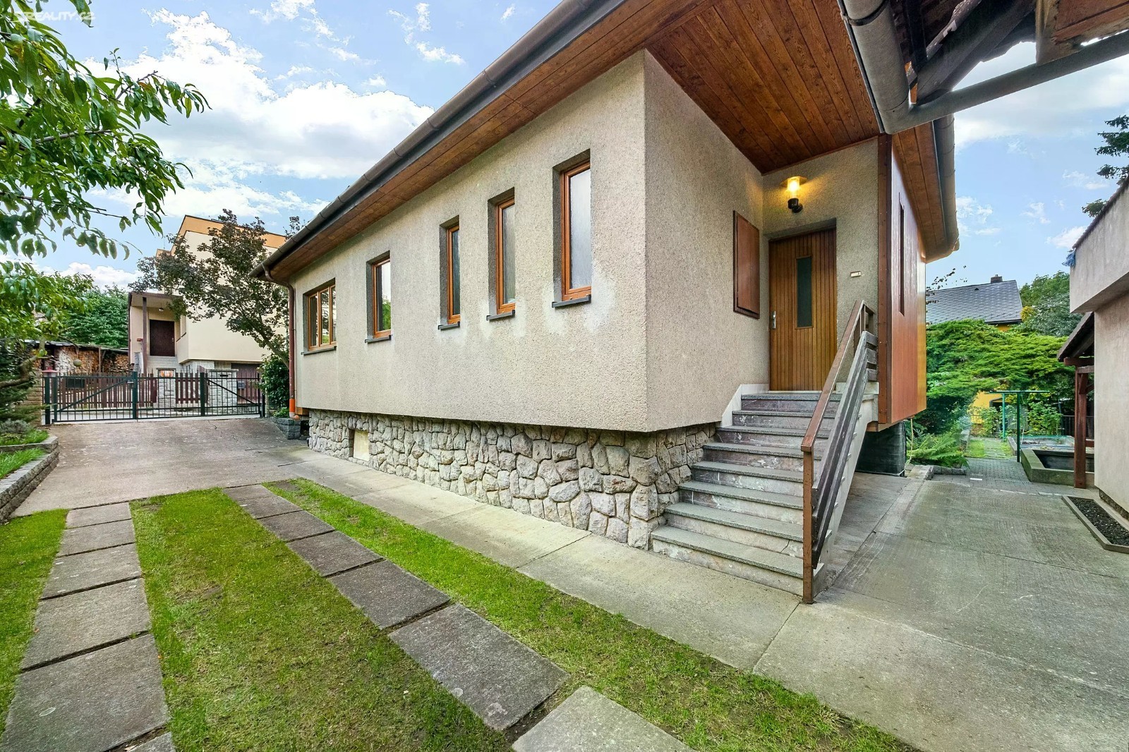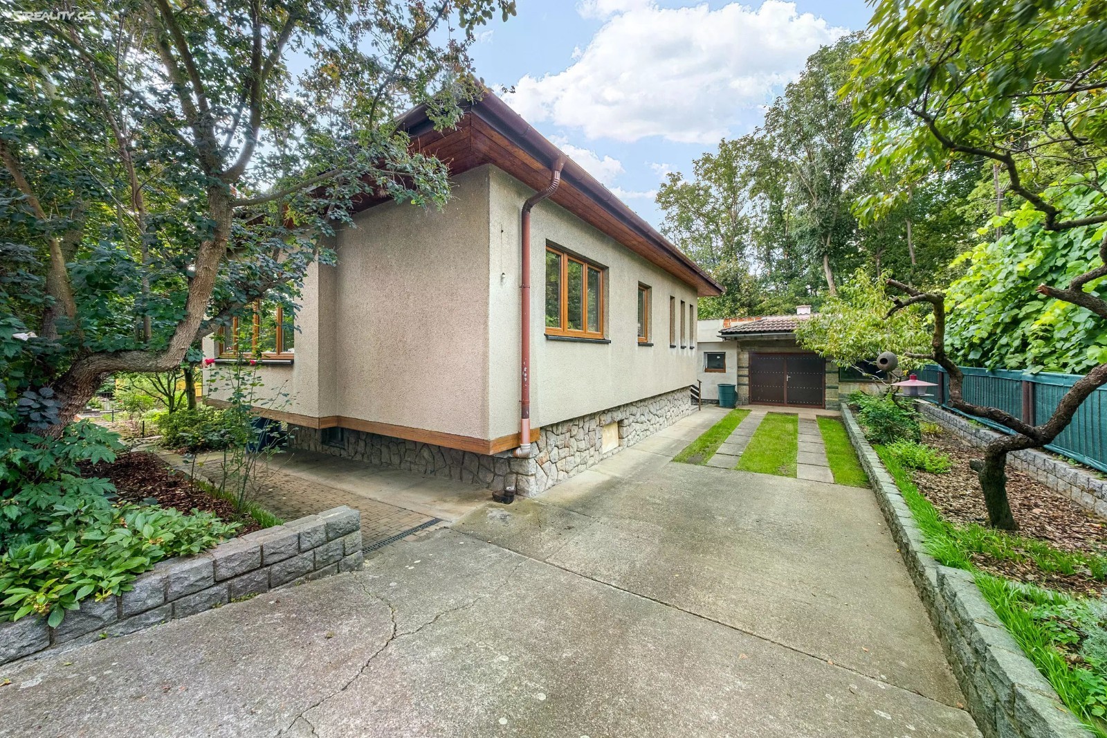 Nabízíme k prodeji rodinný dům s pozemkem 740m², v klidné, slepé ulici. Nebeského, P5 - Zbraslav s minimálním provozem. Rodinný dům obklopený zelení, o dispozici 3+1, (pokoje 28m²+11m²+11m²) kuchyně, koupelna + samostatné WC, vstupní hala, dohromady cca 70m², celé 1.NP je výška stropů 280cm. Dům je podsklepen téměř v celé ploše, s dvěma většími místnostmi 18m² + 13m² a dvě menší cca 4m² + 4,5m², v celém 1.PP je výška stropů 255cm. V 2.PP se nachází malý sklípek + sklípek s vrtanou studnou, cca 10m hlubokou. Na zahradě nedokončená stavba garáže a nebytových prostor (původně plánovaná dílna) o celkové podlahové ploše 58m² s velkým potenciálem využití, garáž až pro tři auta, dílna, fitness, sauna. ateliér apod. Okna v obytné části po výměně, instalace tepelného čerpadla Panasonic 2022. Rozlehlý pozemek a umístění domu s přístavbou na pozemku dává možnost dalšího využití, přestavby domu. Zahradu s okrasnými a ovocnými dřevinami i dům od lesního pozemku odděluje vysoký zděný plot s brankou a přístupem na lesní pozemek. Doporučujeme prohlídku.